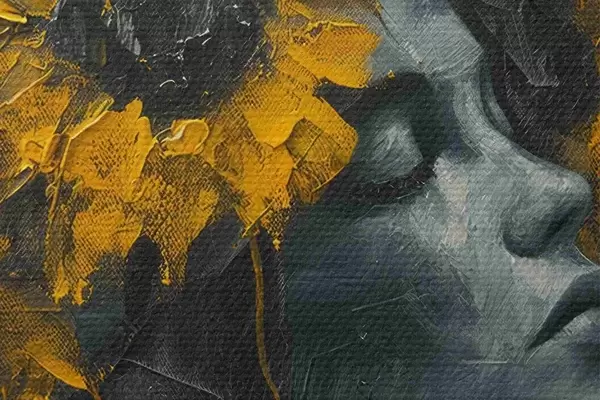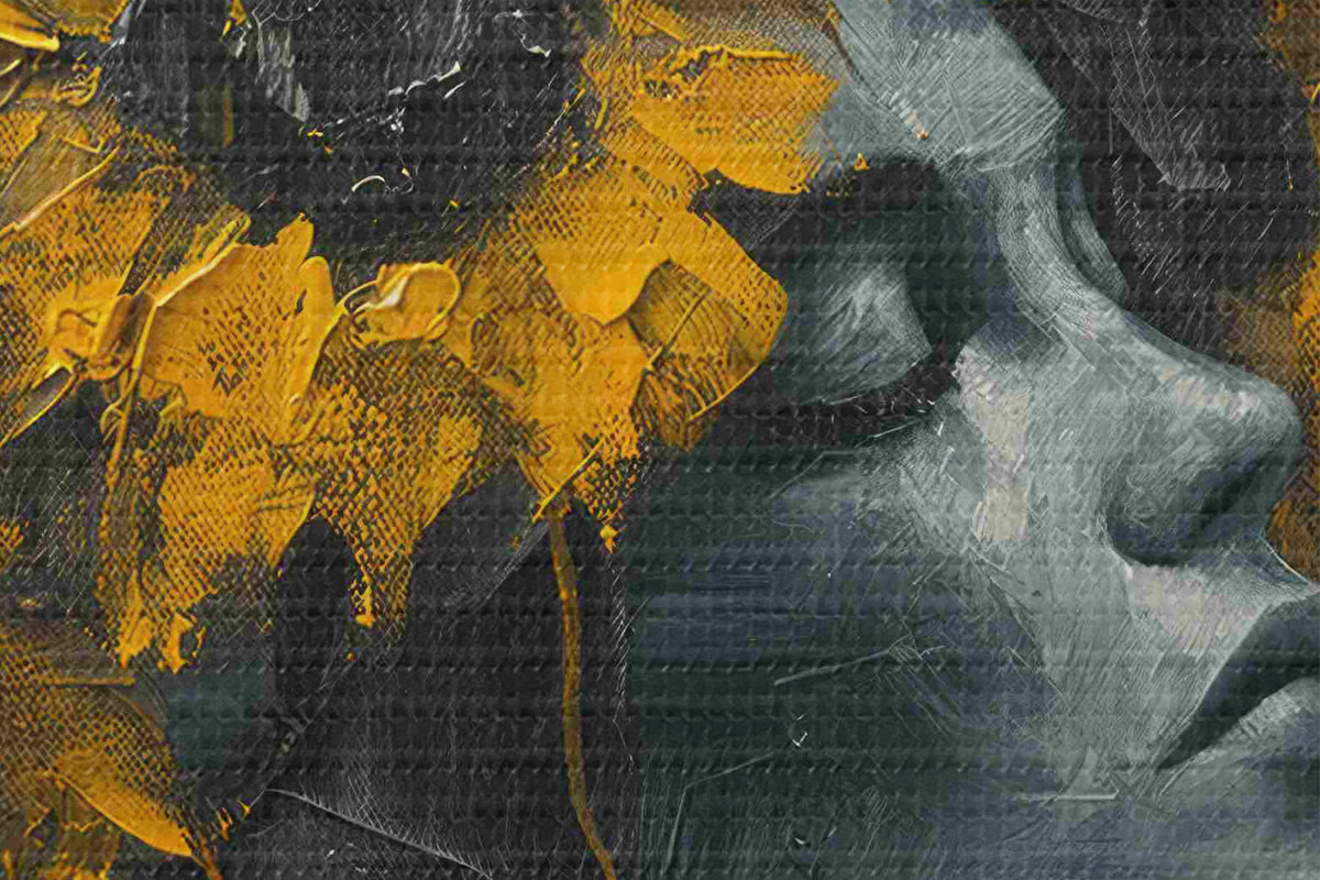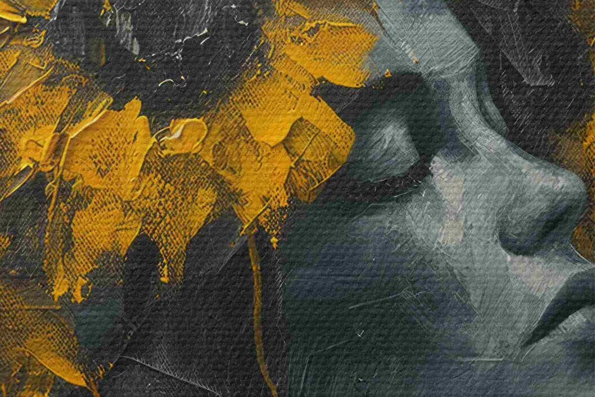 Image Visage de femme en nuances de gris avec tournesols Nr r40500