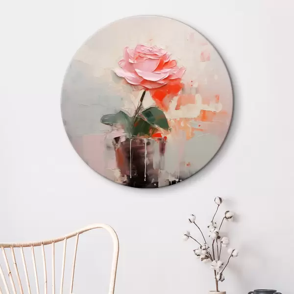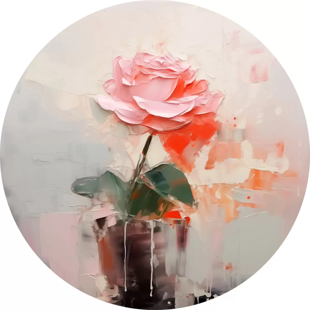 Tableaux ronds Rose abstraite dans un vase, gris, rose, rouge r40515