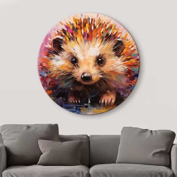 Tableaux ronds Portrait d'un hérisson aux couleurs vives : jaune, violet, bleu, orange, marron r40532