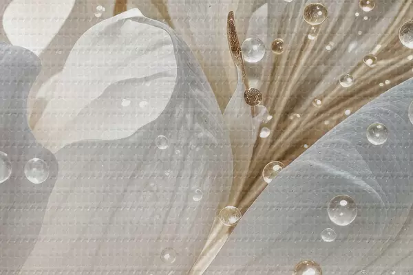 Image Gros plan d'une fleur de pivoine blanche avec des gouttes d'eau sur les pétales, sur fond flou Nr r40539