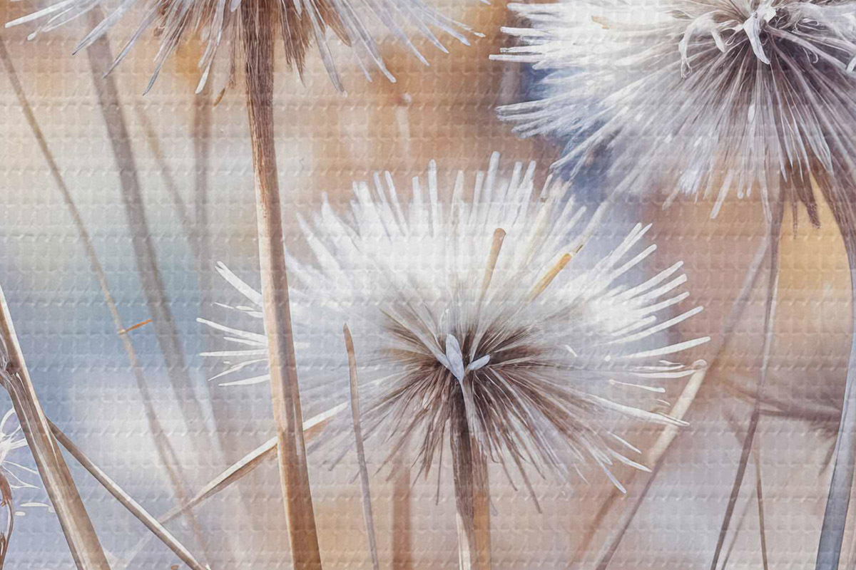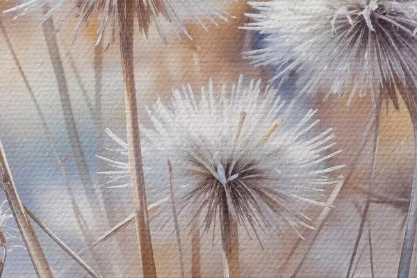 Image Fleurs de pissenlit blanches et touffues sur un fond d'aquarelle flou avec un éclairage chaud Nr r40541