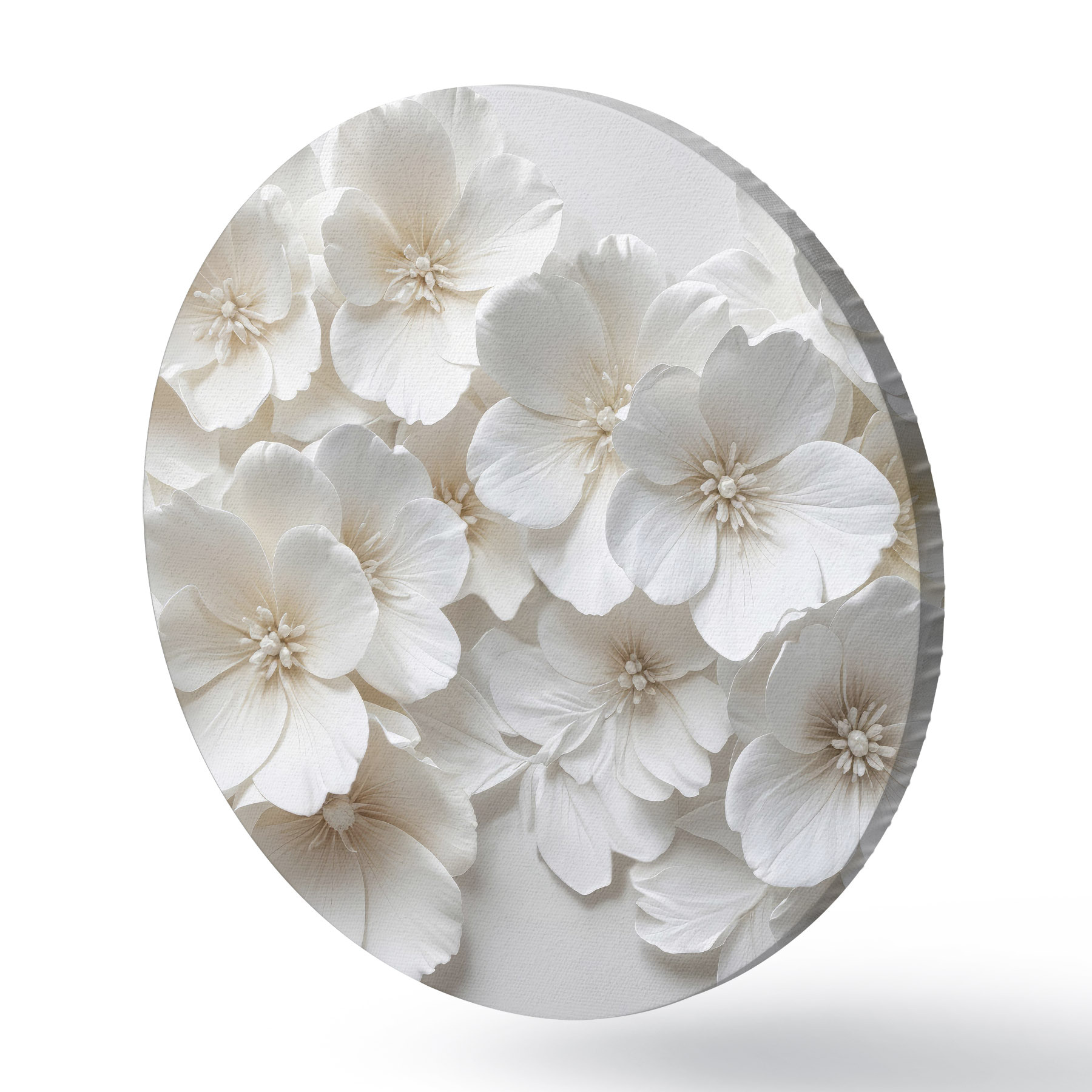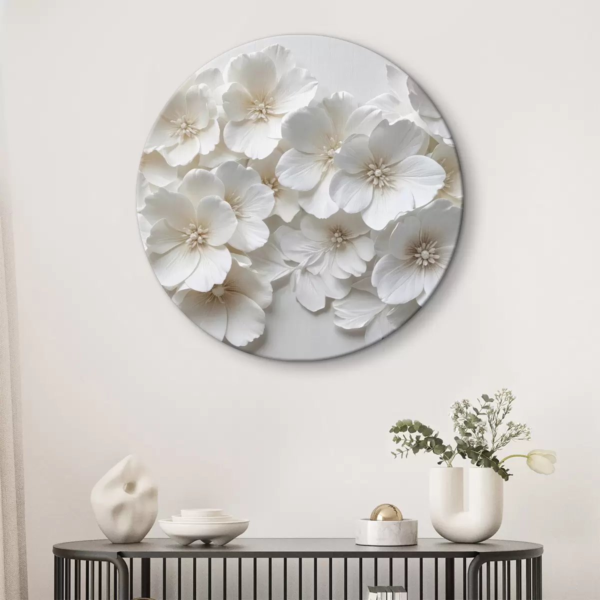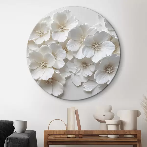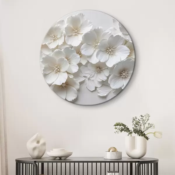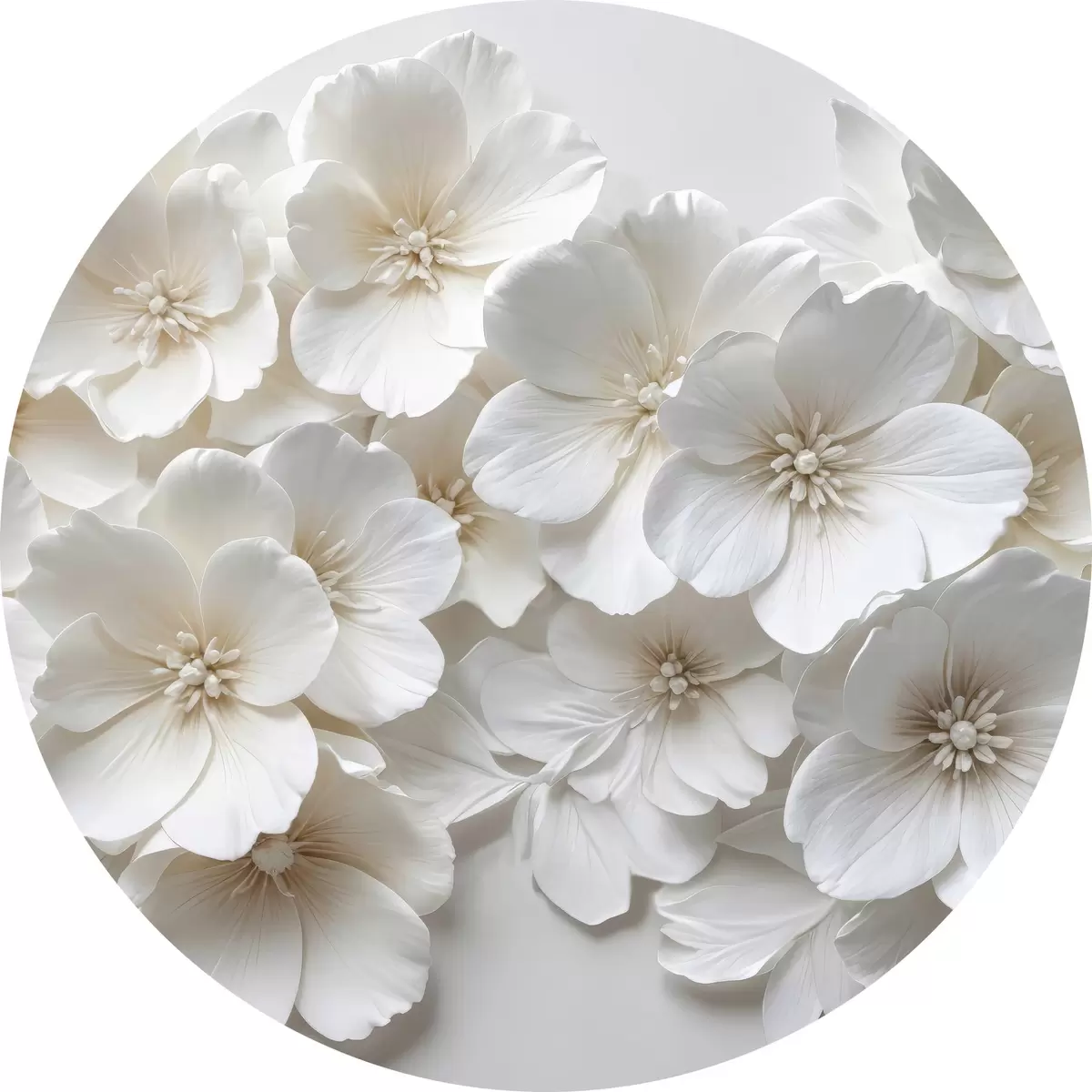 Tableaux ronds Fleurs blanches aux pétales délicats disposées selon un magnifique motif floral sur un fond clair r40548