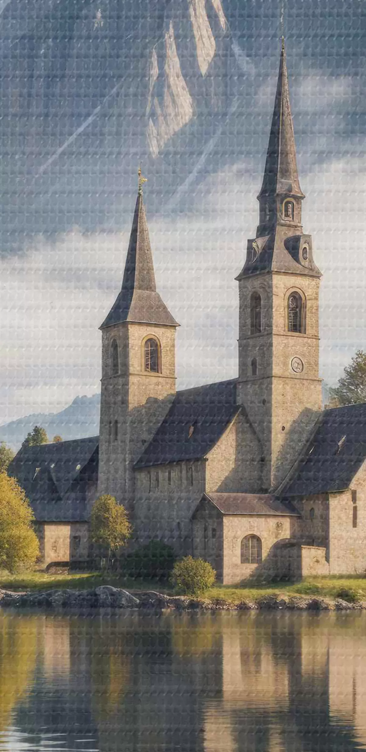 Image Un village alpin pittoresque situé au bord d'un lac tranquille et surplombé de montagnes enneigées Nr r40554