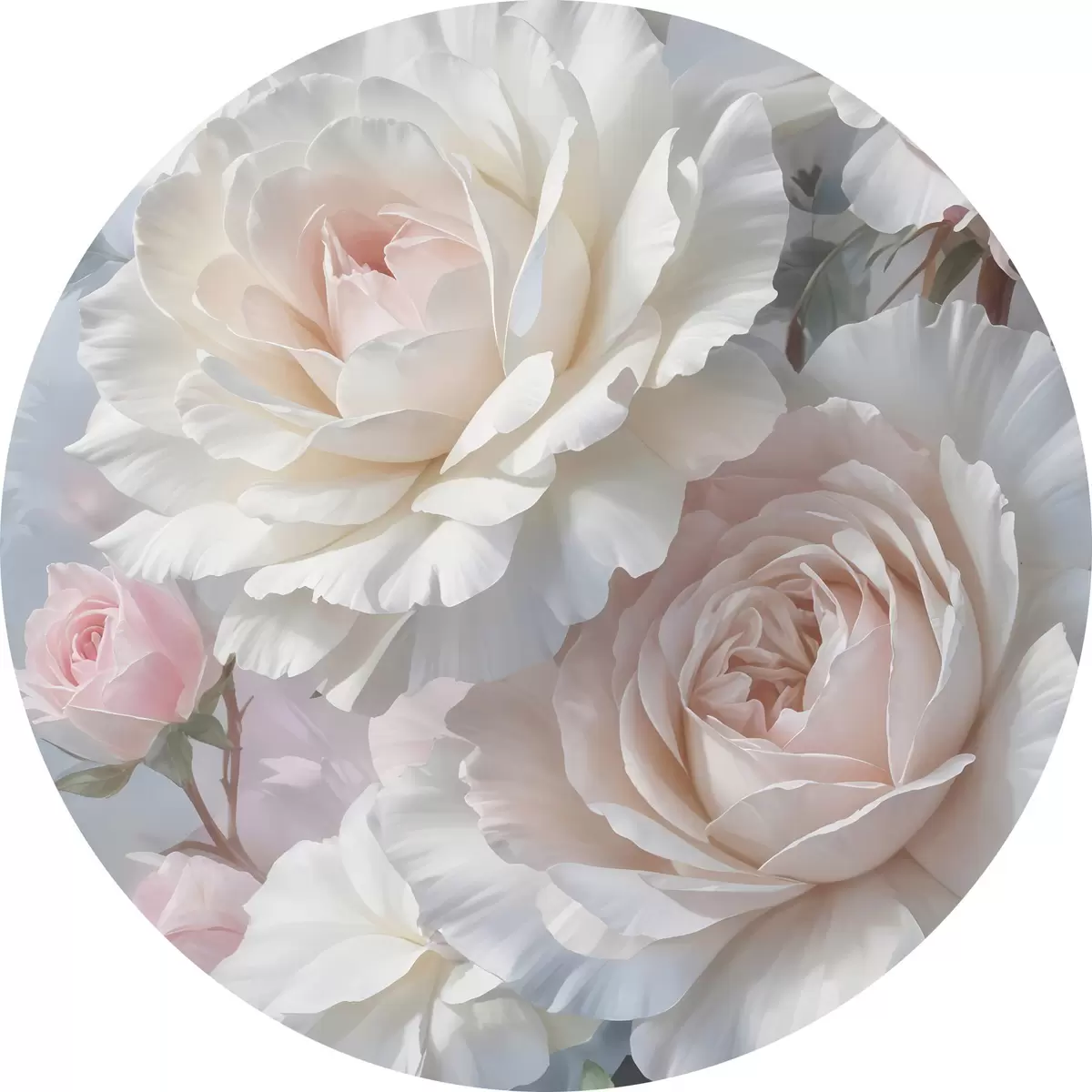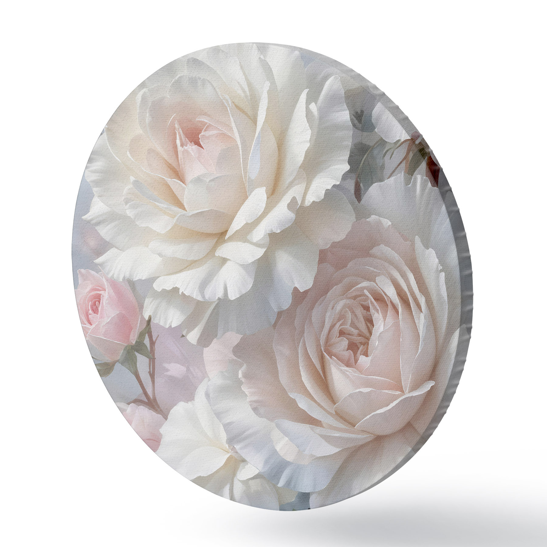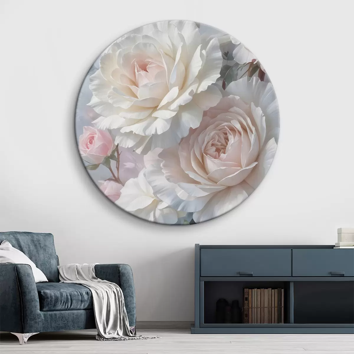 Tableaux ronds Douces et délicates roses blanches et roses sur fond flou r40562