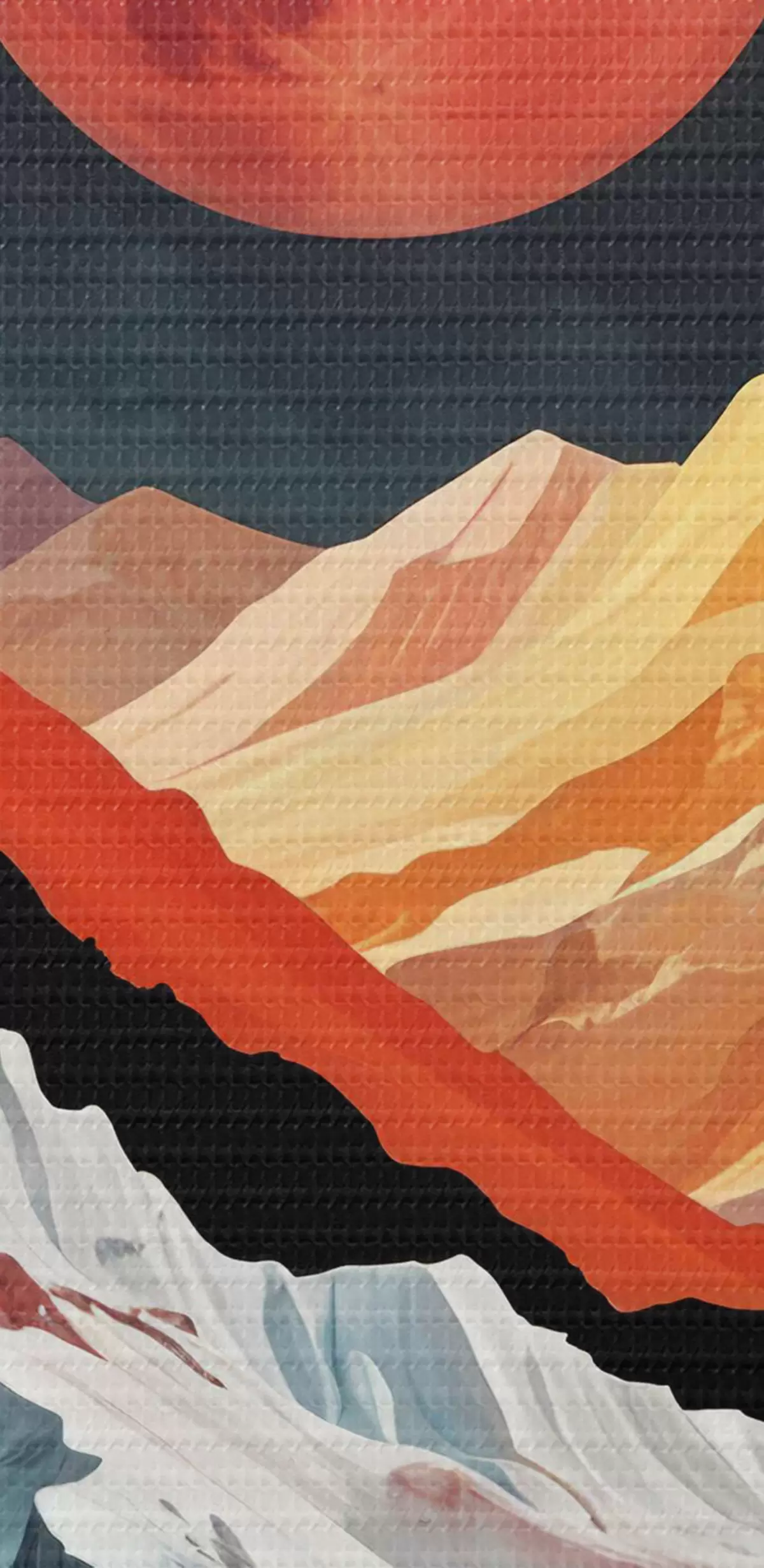 Image Paysage surréaliste avec de hautes montagnes déchiquetées sous une grande lune rougeoyante dans un ciel sombre et nuageux Nr r40589