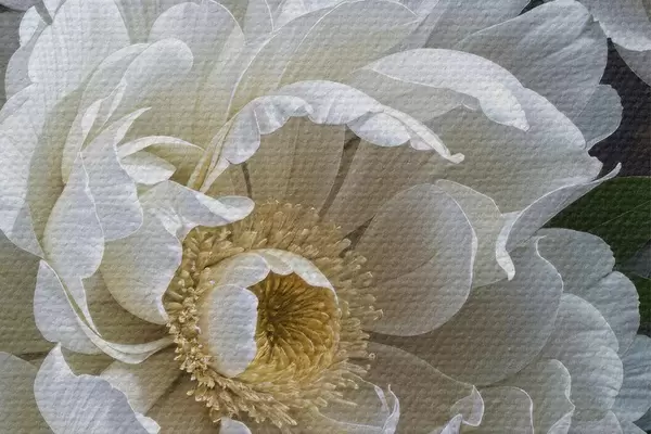 Image Fleurs de pivoines blanches à centre jaune s'épanouissant dans le jardin sur fond sombre Nr r40600