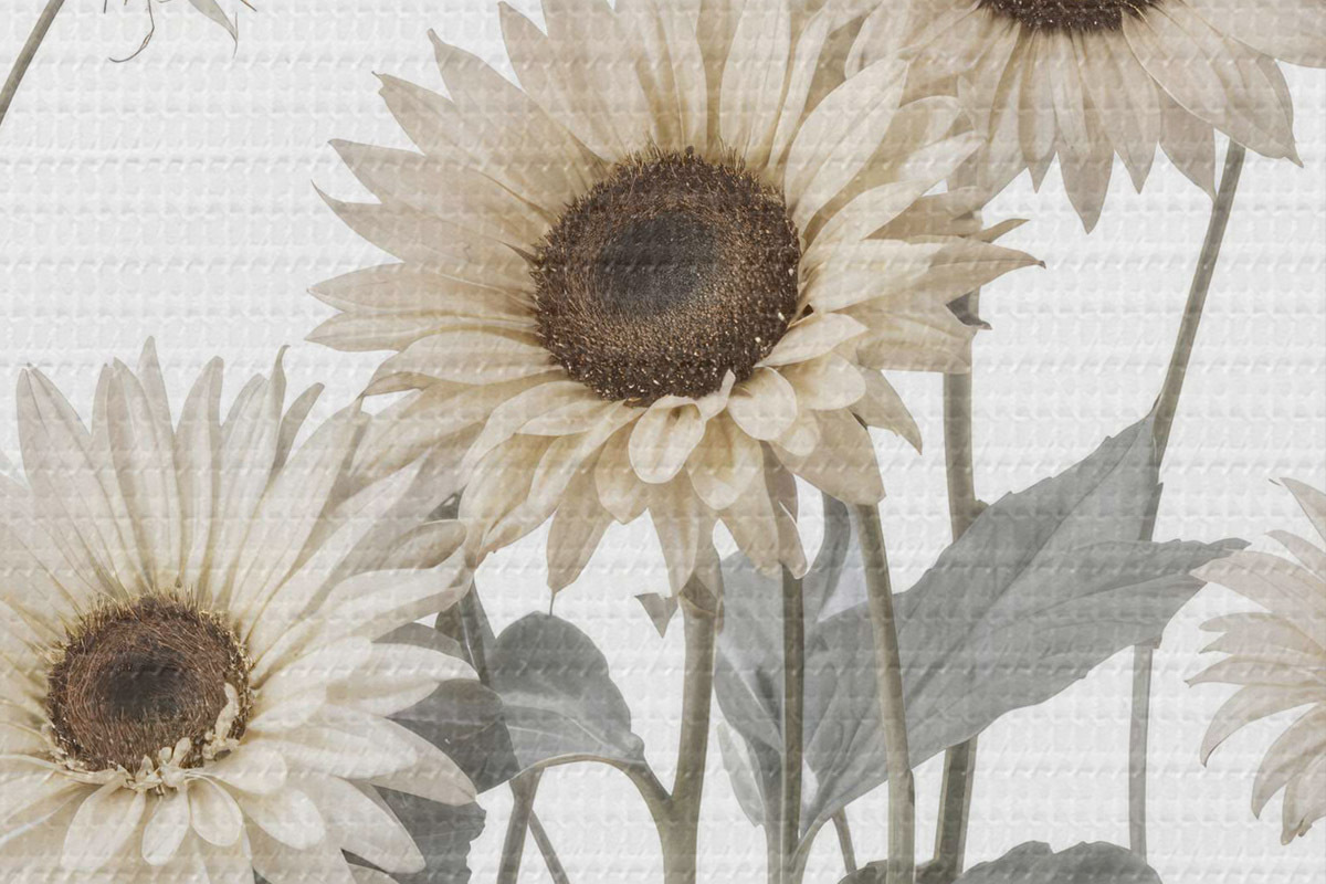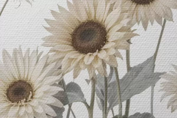 Image Champ de marguerites blanches sur fond blanc, avec des tournesols visibles à l'arrière-plan Nr r40602