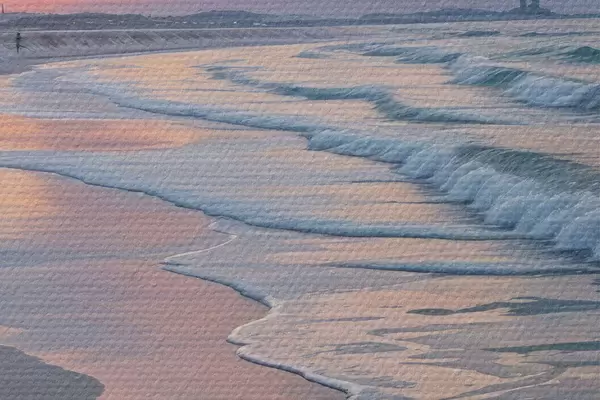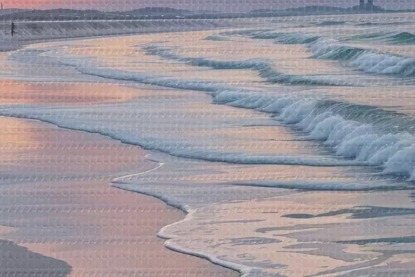 Image Scène paisible sur la plage au coucher du soleil, avec de douces vagues s'échouant sur le rivage sablonneux Nr r40606