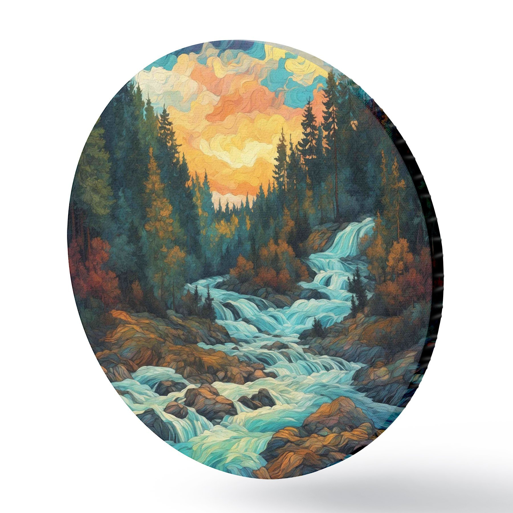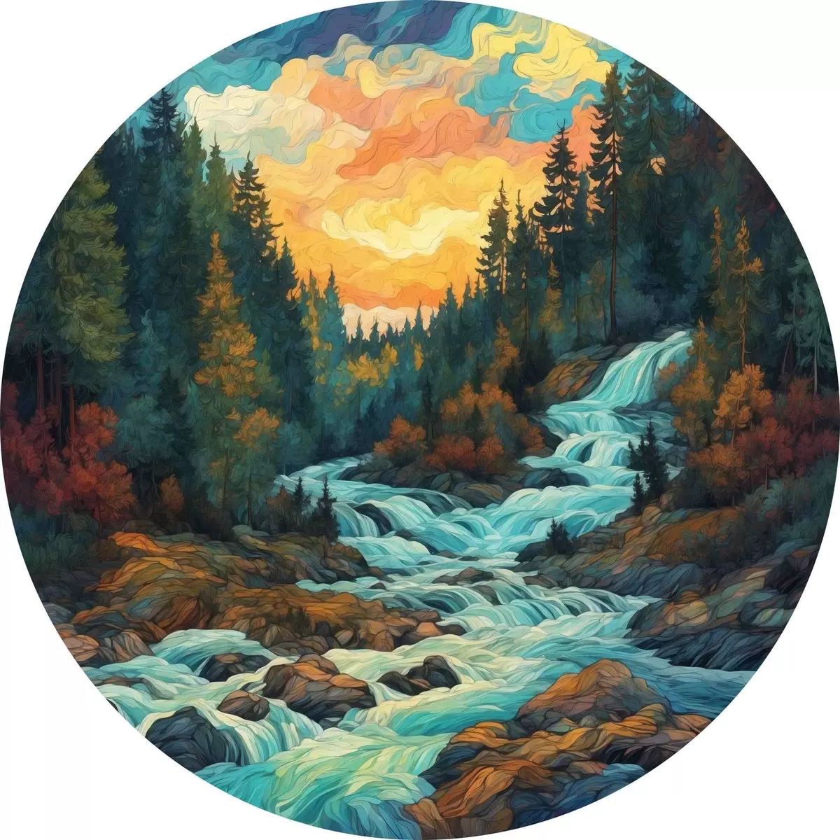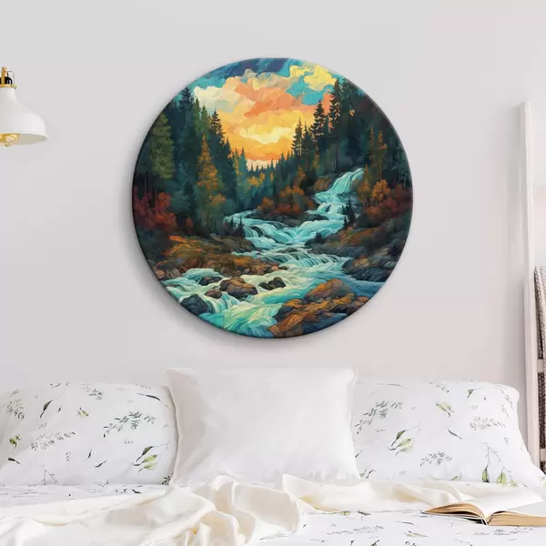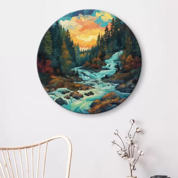 Tableaux ronds Forêt d'épicéas et ciel multicolore r40639