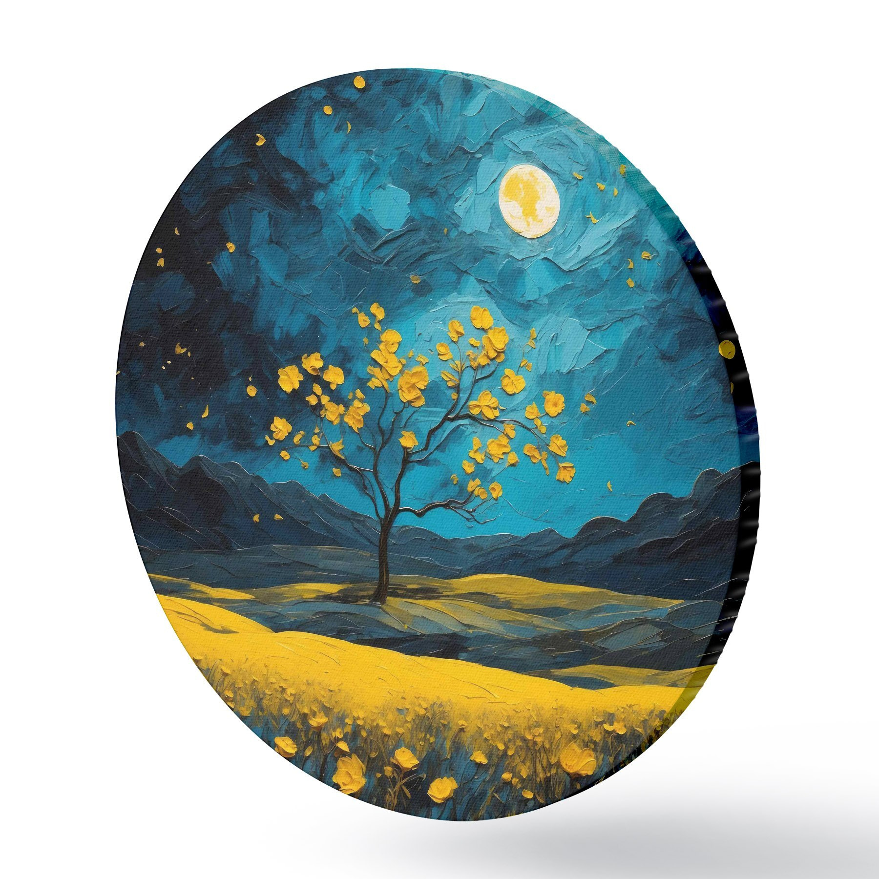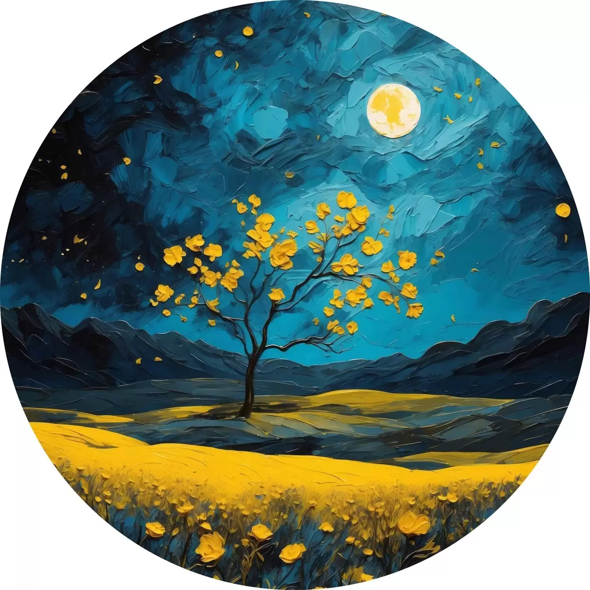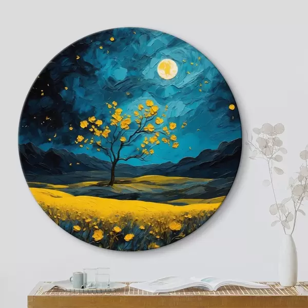 Tableaux ronds Champ de fleurs jaunes la nuit r40643