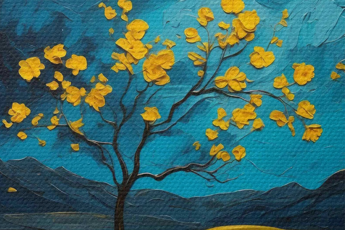 Image Champ de fleurs jaunes la nuit Nr r40643