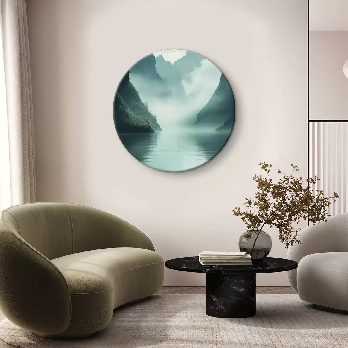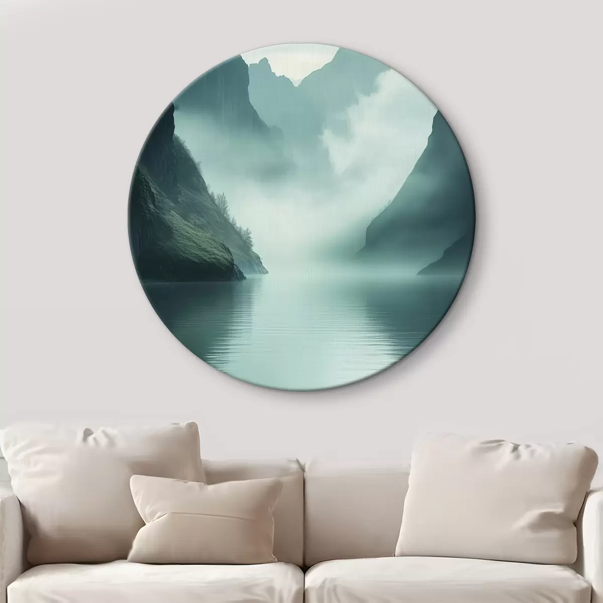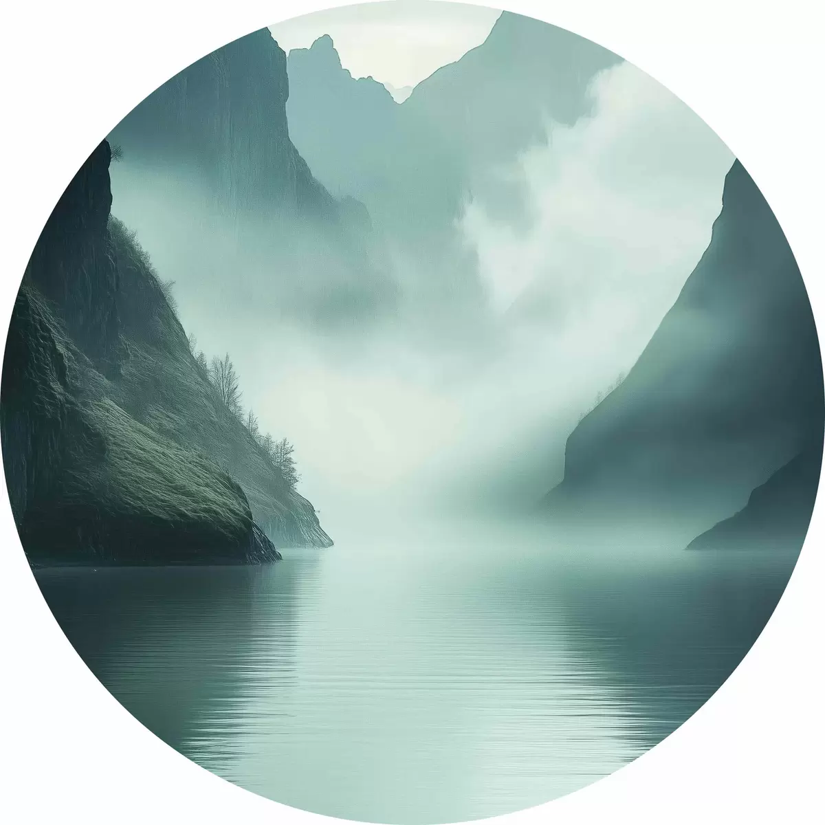Tableaux ronds Montagnes mystérieuses dans le brouillard r40653