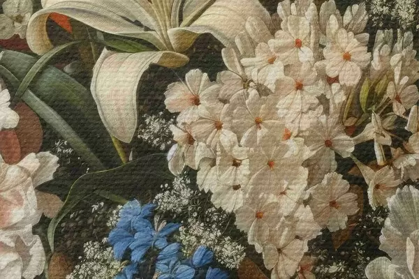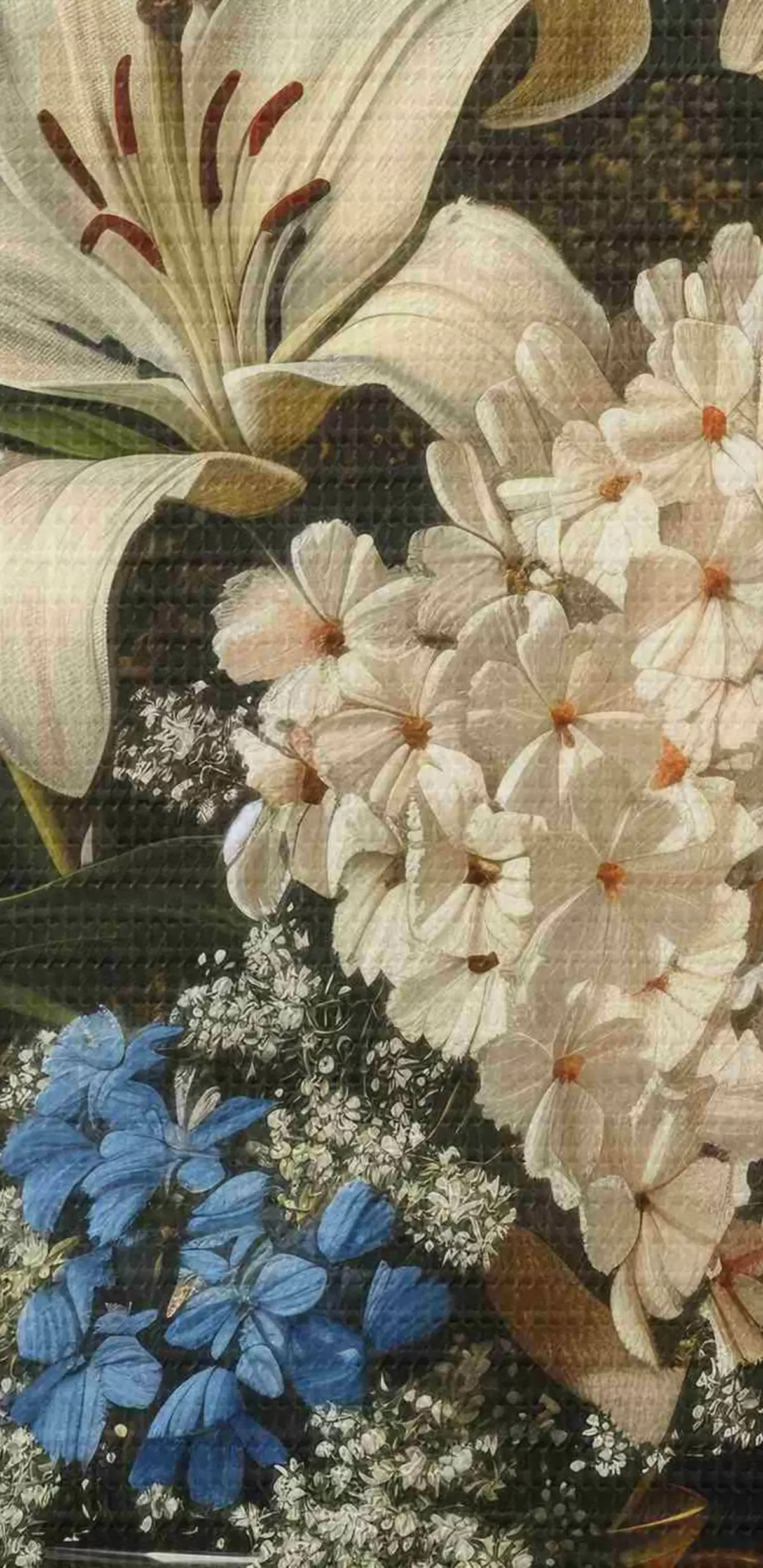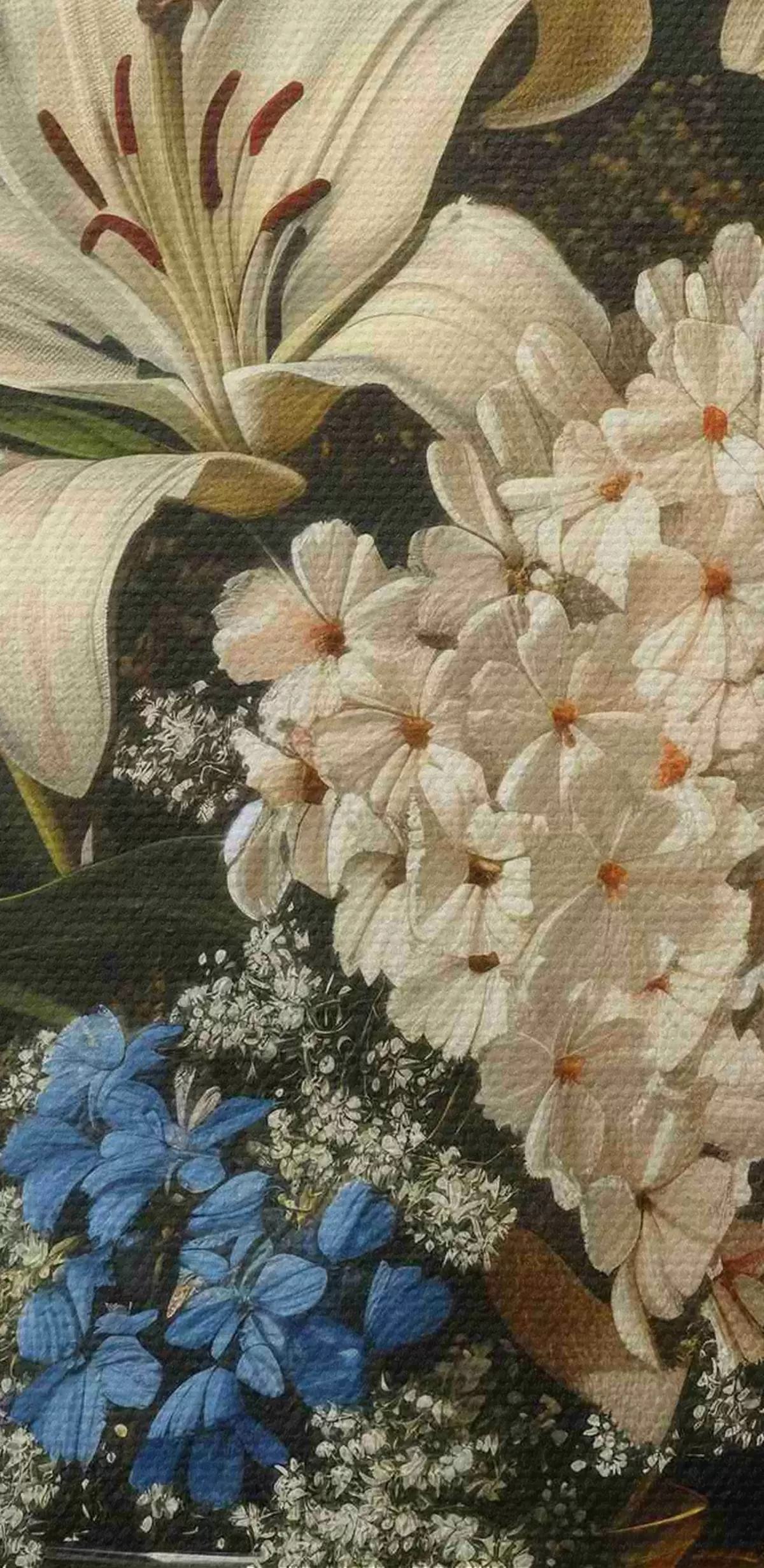 Image Nature morte baroque avec un vase rempli de tulipes, d'œillets et de jacinthes, imitation d'une peinture à l'huile Nr r40659
