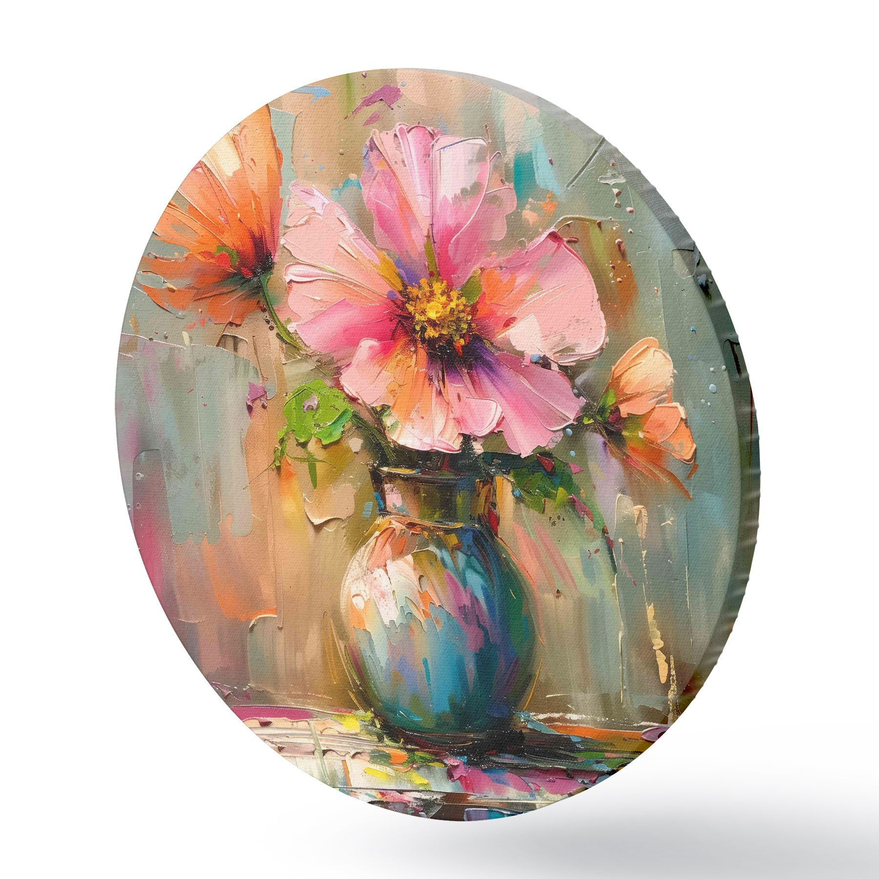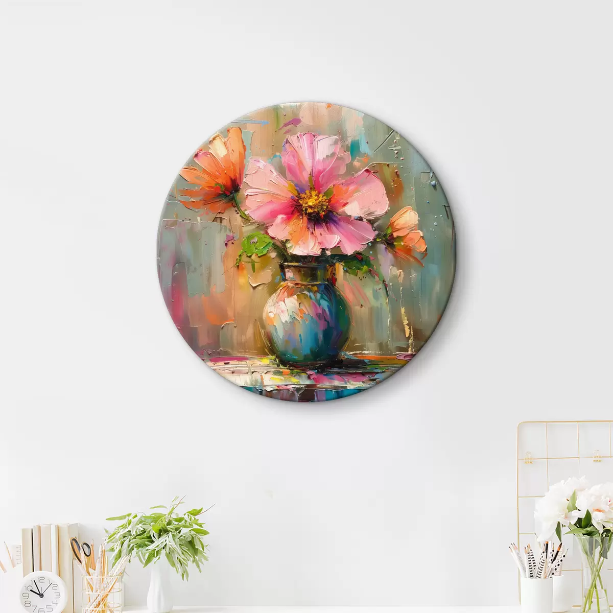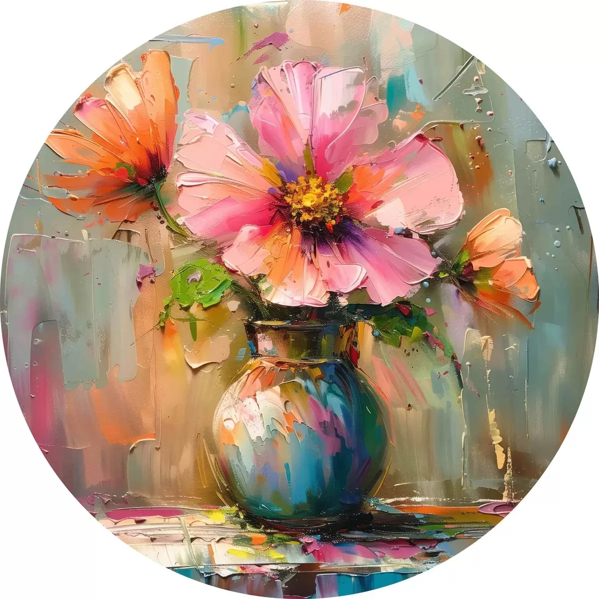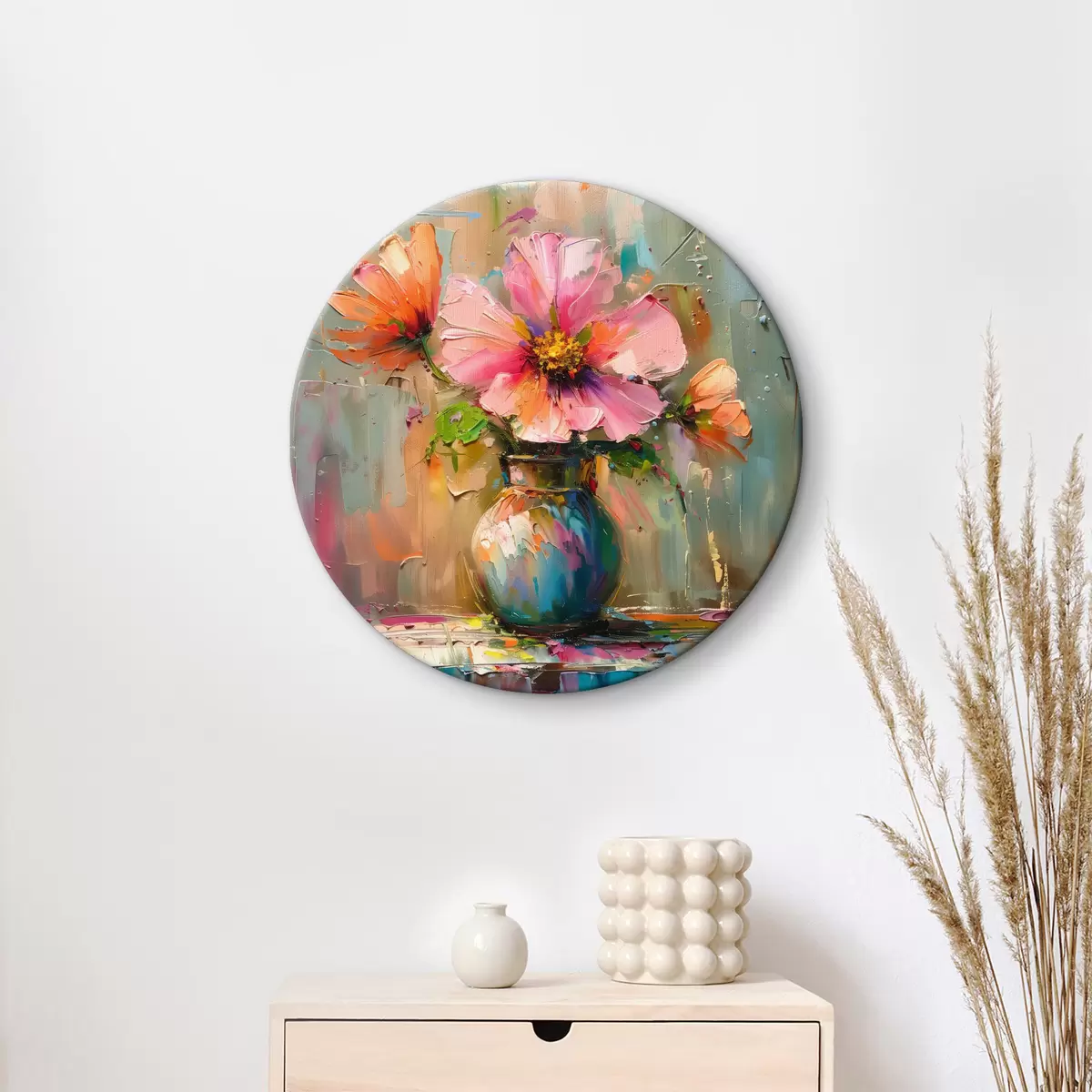 Tableaux ronds Fleur colorée dans un vase avec de grands coups de peinture à l'huile r40664