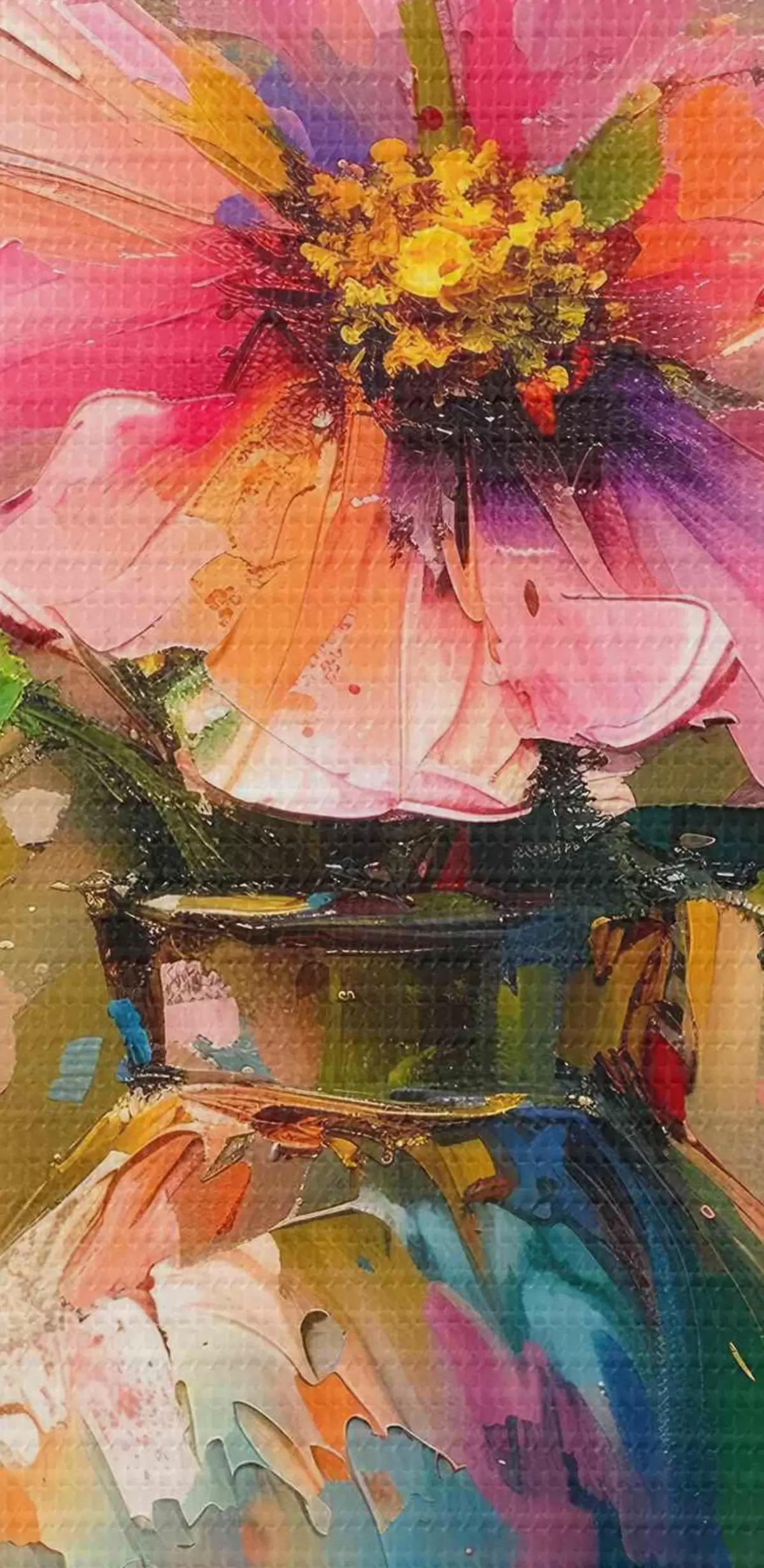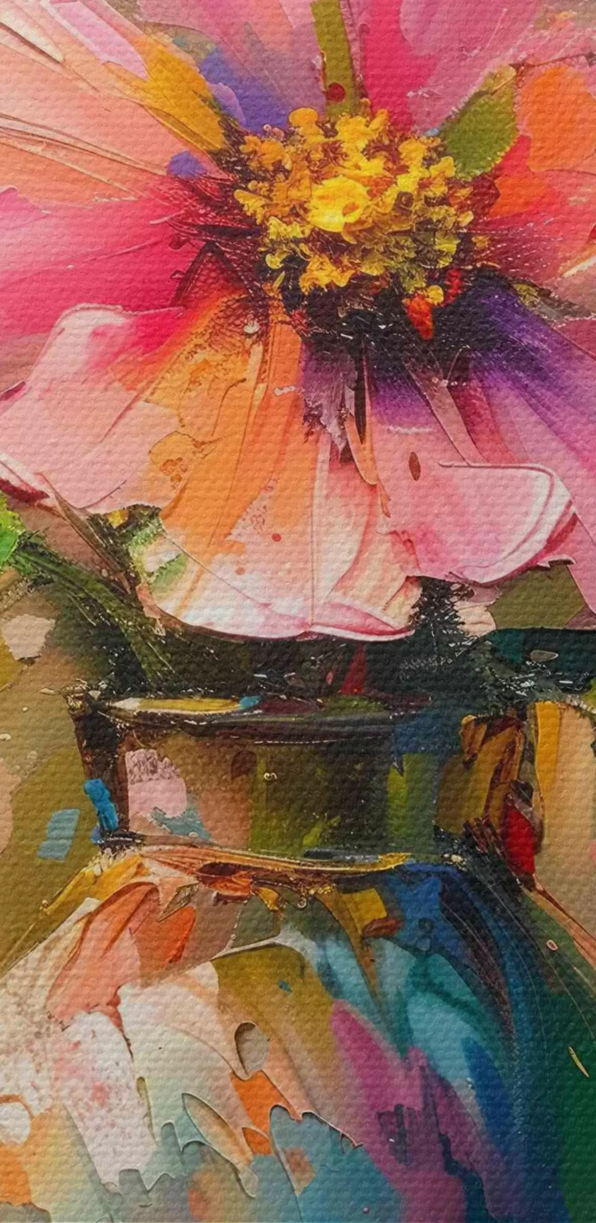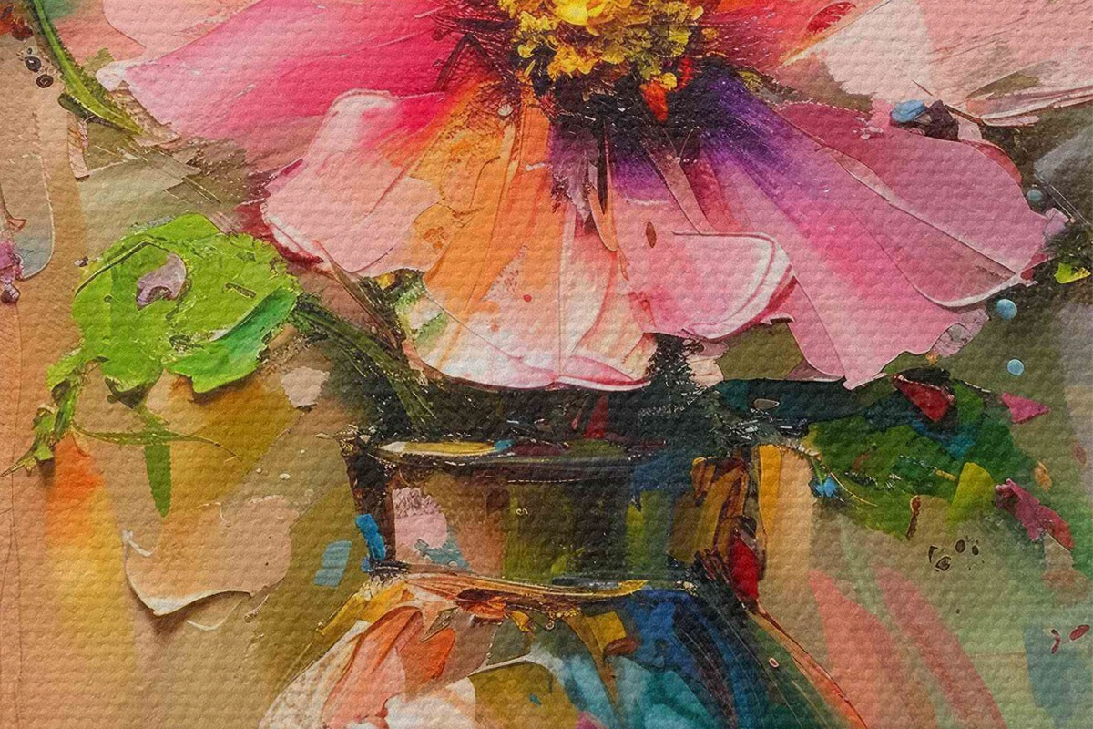 Image Fleur colorée dans un vase avec de grands coups de peinture à l'huile Nr r40664