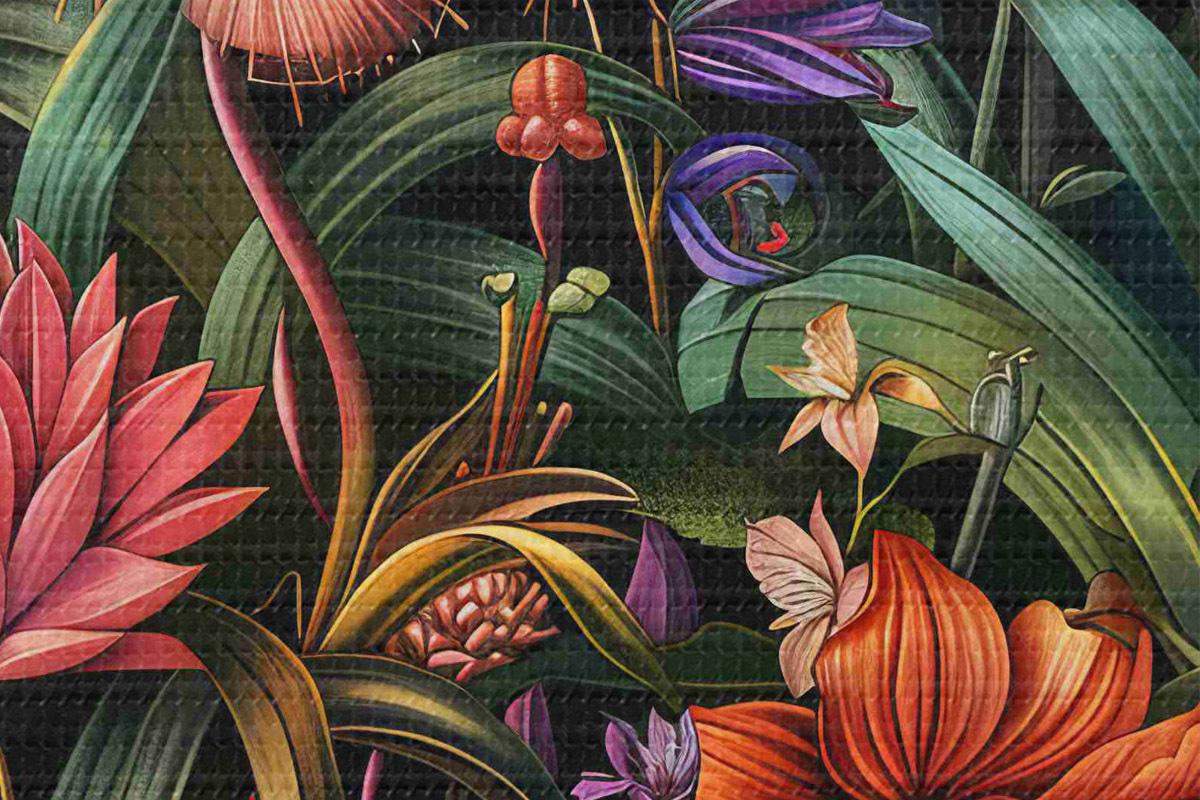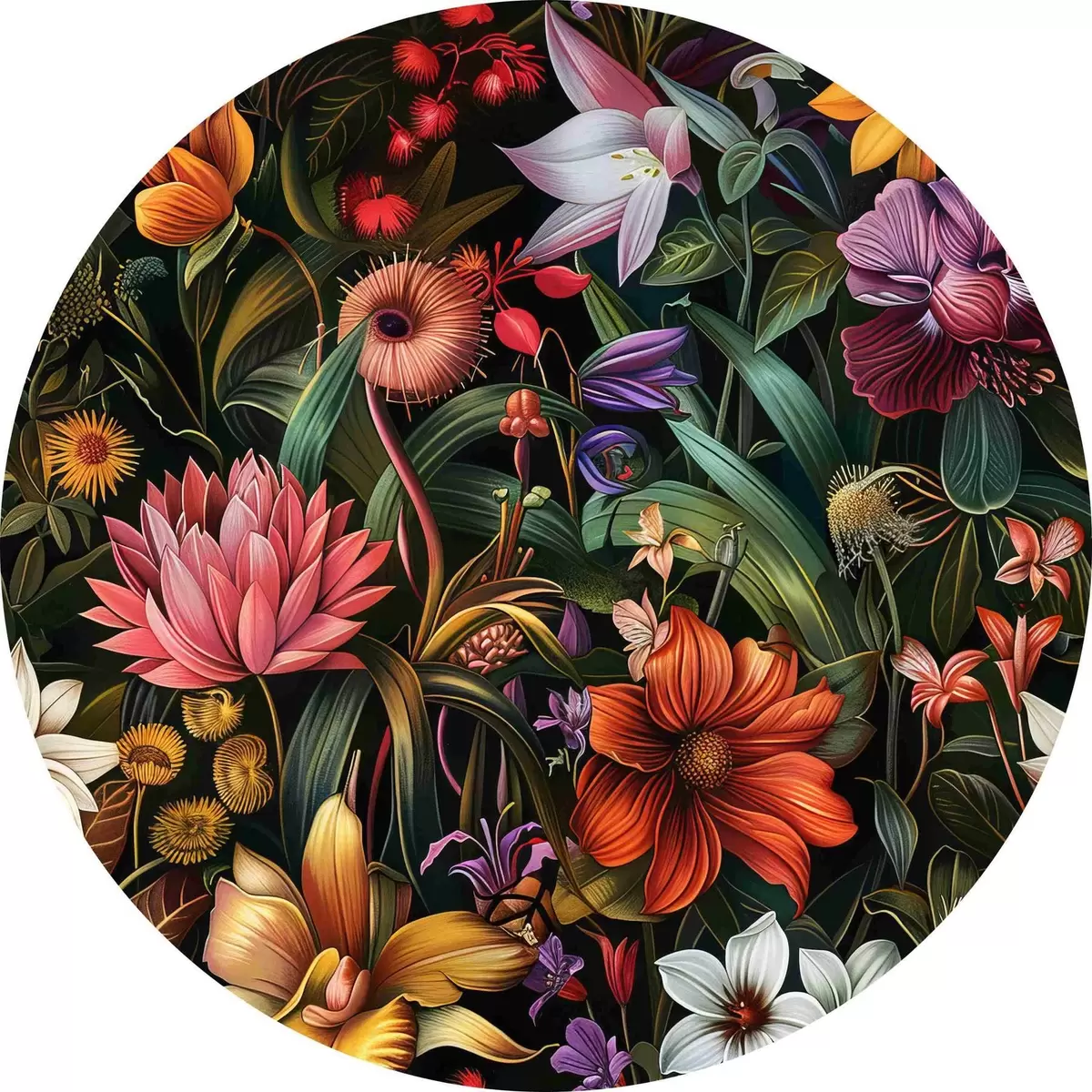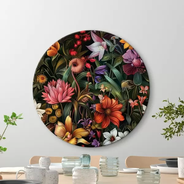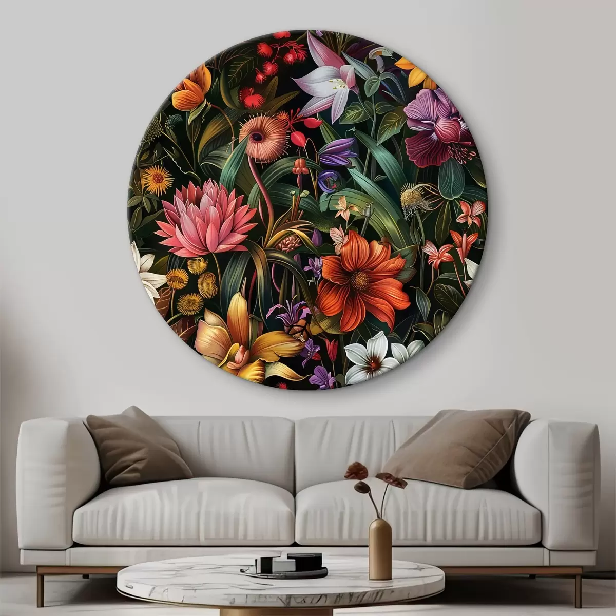 Tableaux ronds Composition tropicale avec de la verdure et des fleurs tropicales r40667