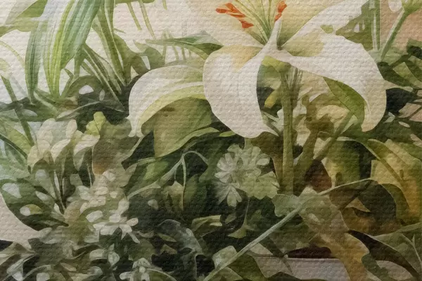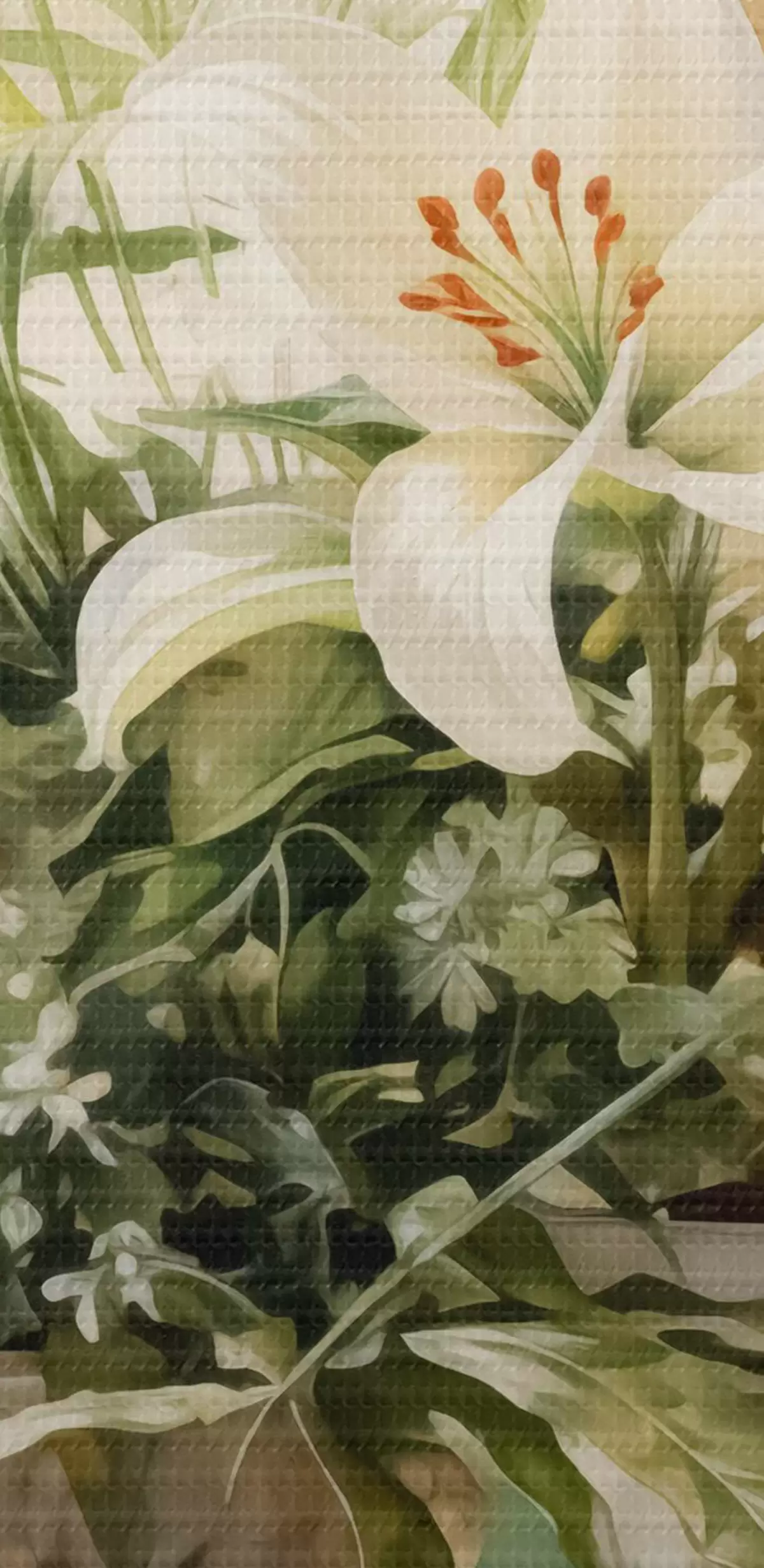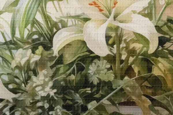 Image Lys blancs dans un vase sur le balcon avec vue sur la mer et les montagnes aquarelle Nr r40682