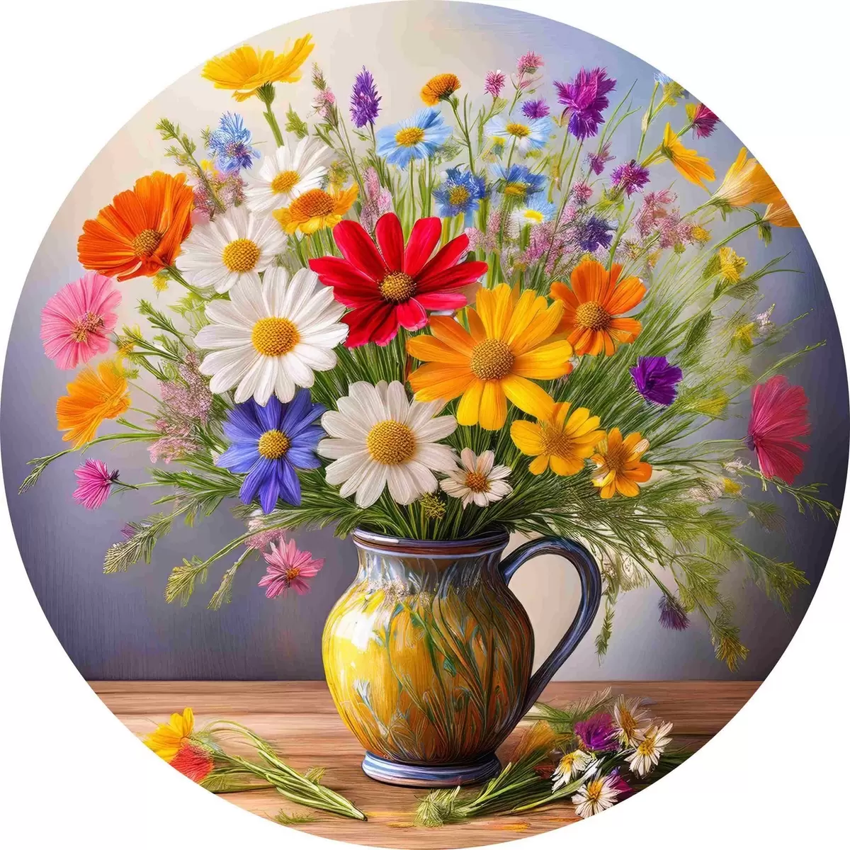 Tableaux ronds bouquet lumineux de fleurs sauvages r40707
