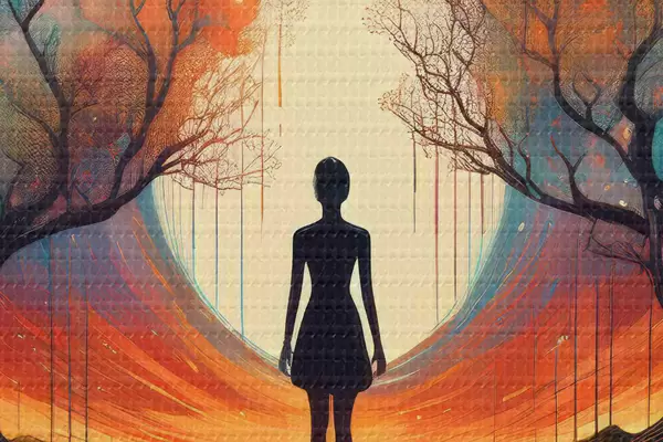 Tableaux ronds silhouette entre les arbres, conscience de soi, réflexion sur soi r40713