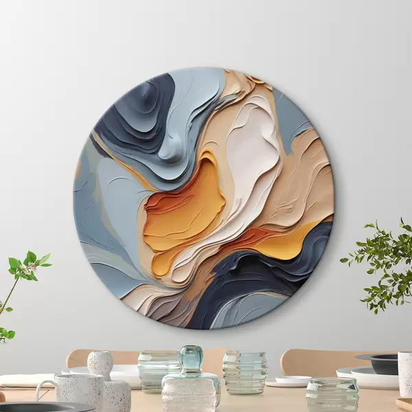 Tableaux ronds Abstraction dans les tons de bleu et d'orange avec imitation de texture r40743
