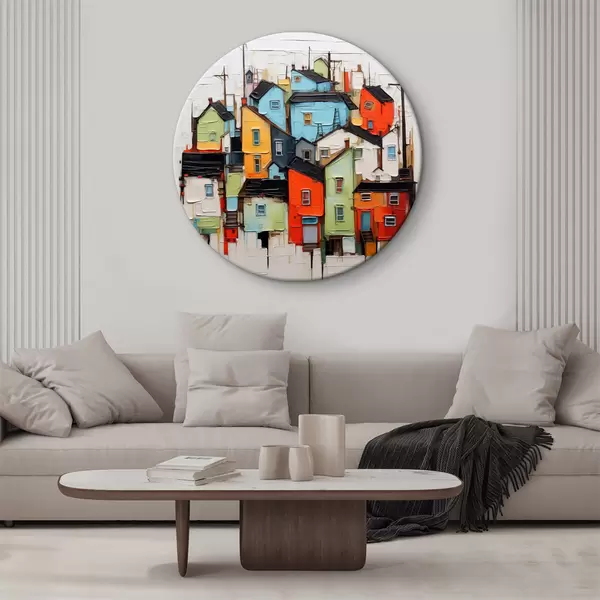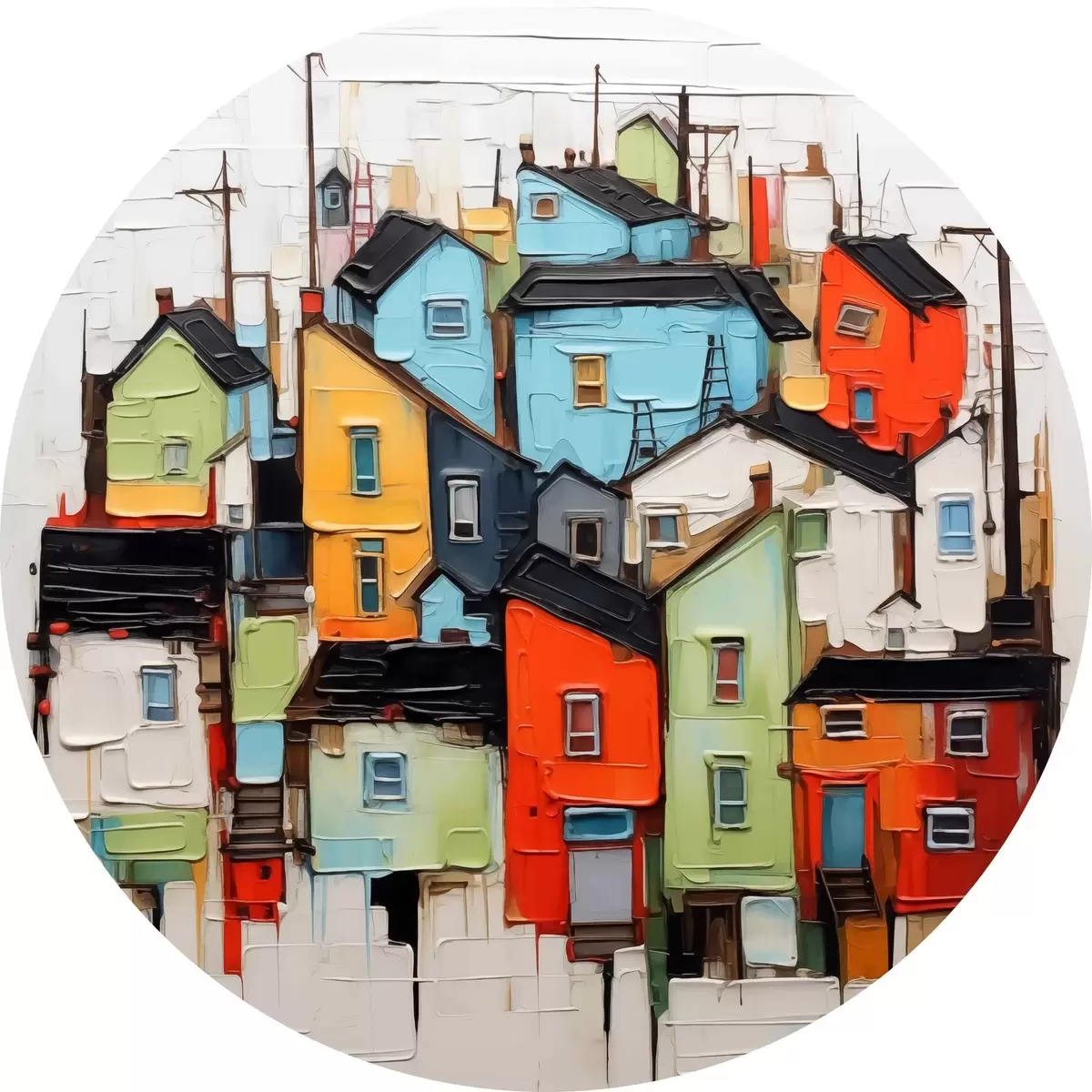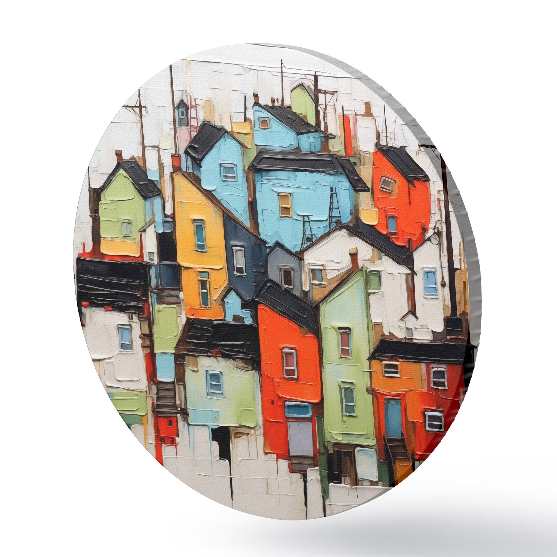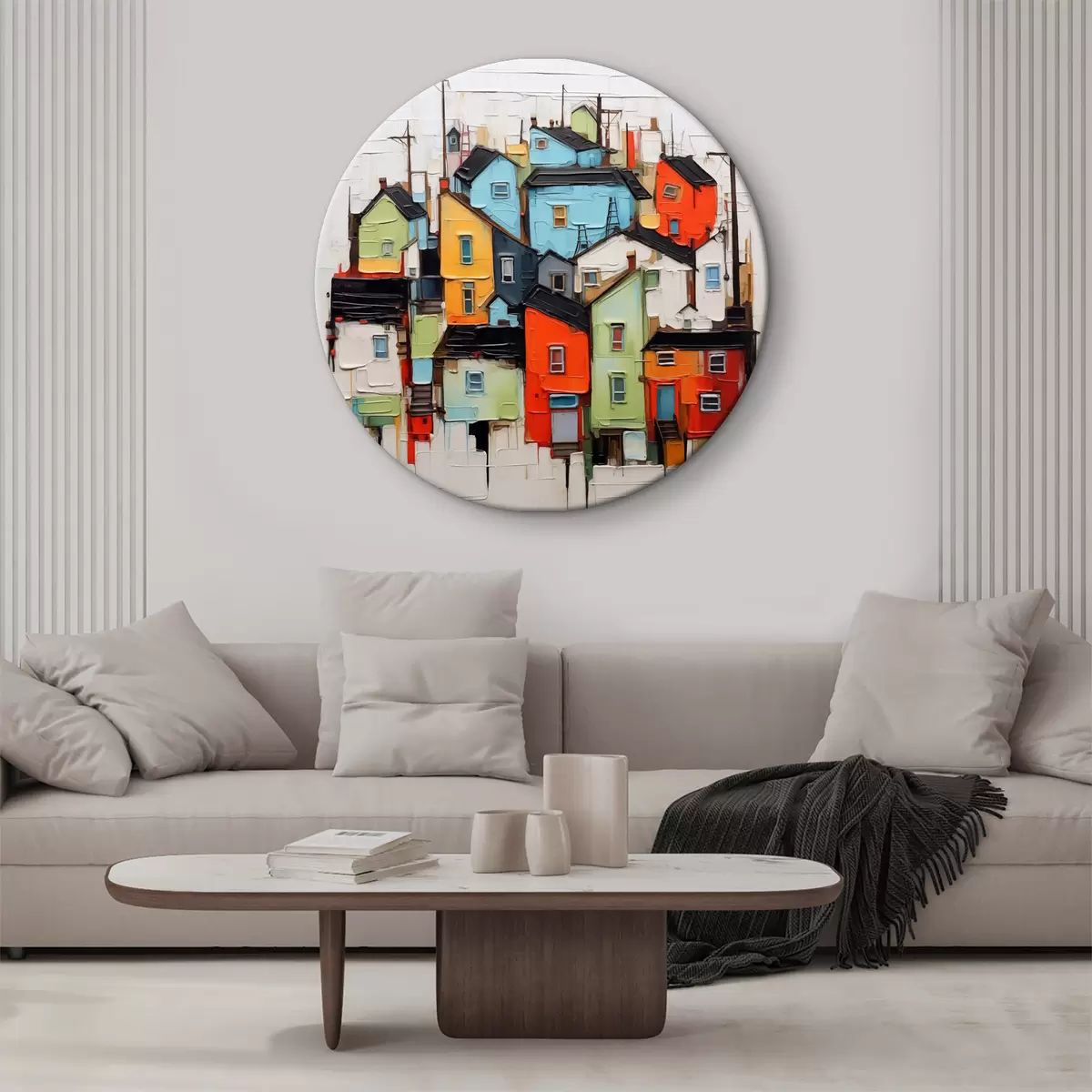 Tableaux ronds Maisons abstraites imitant des coups de pinceau r40760