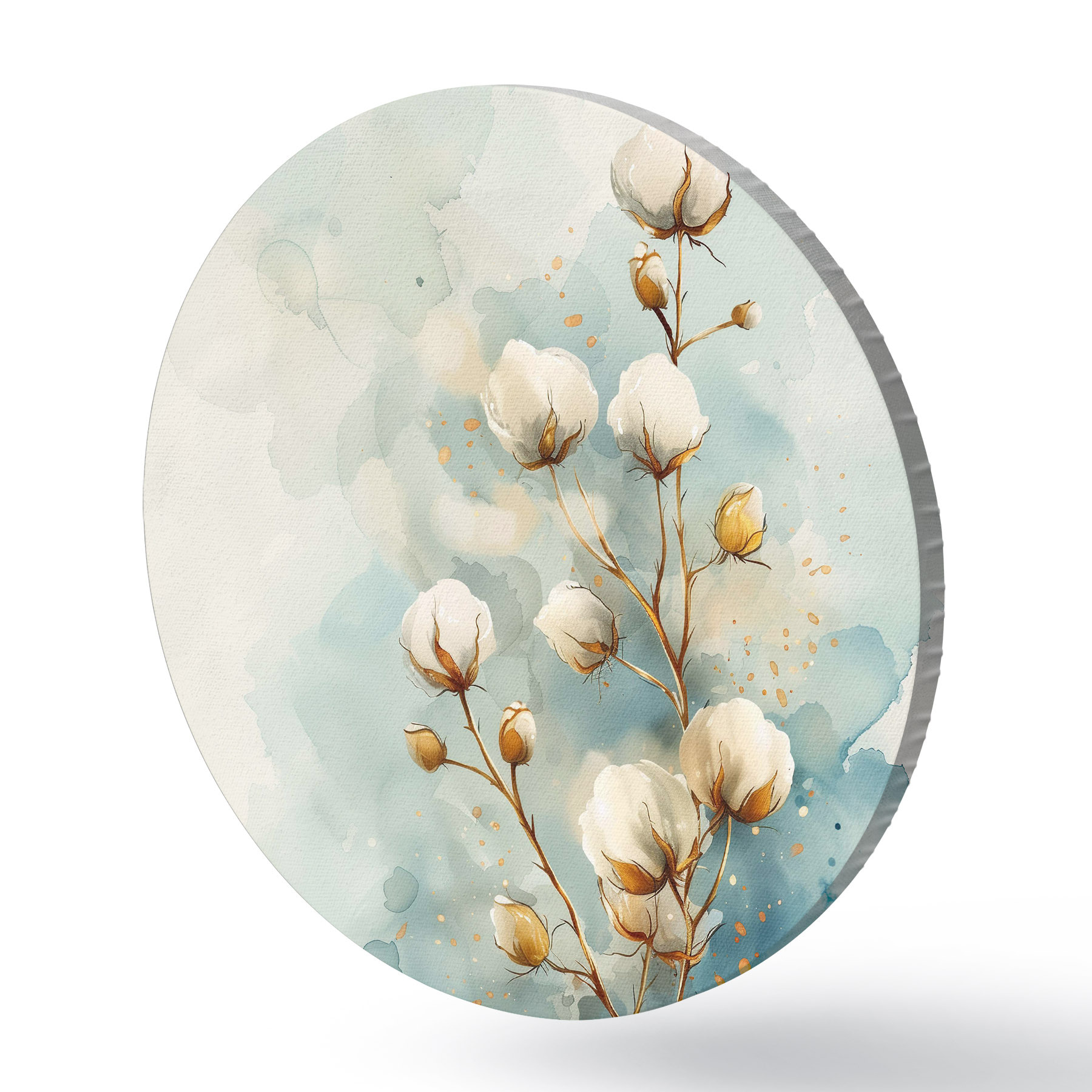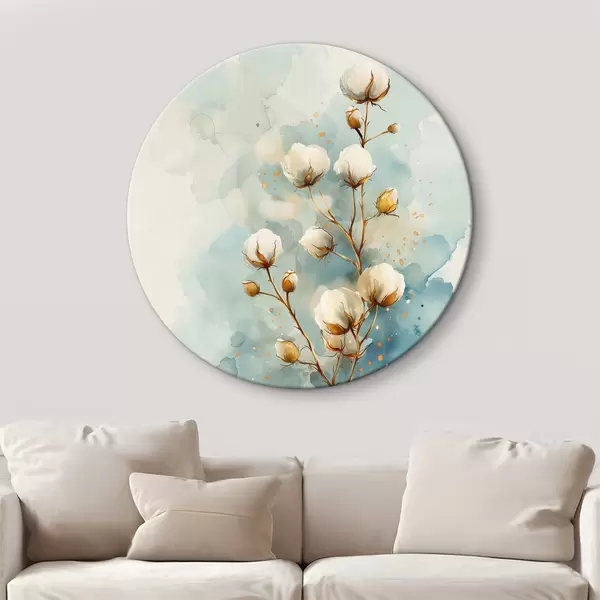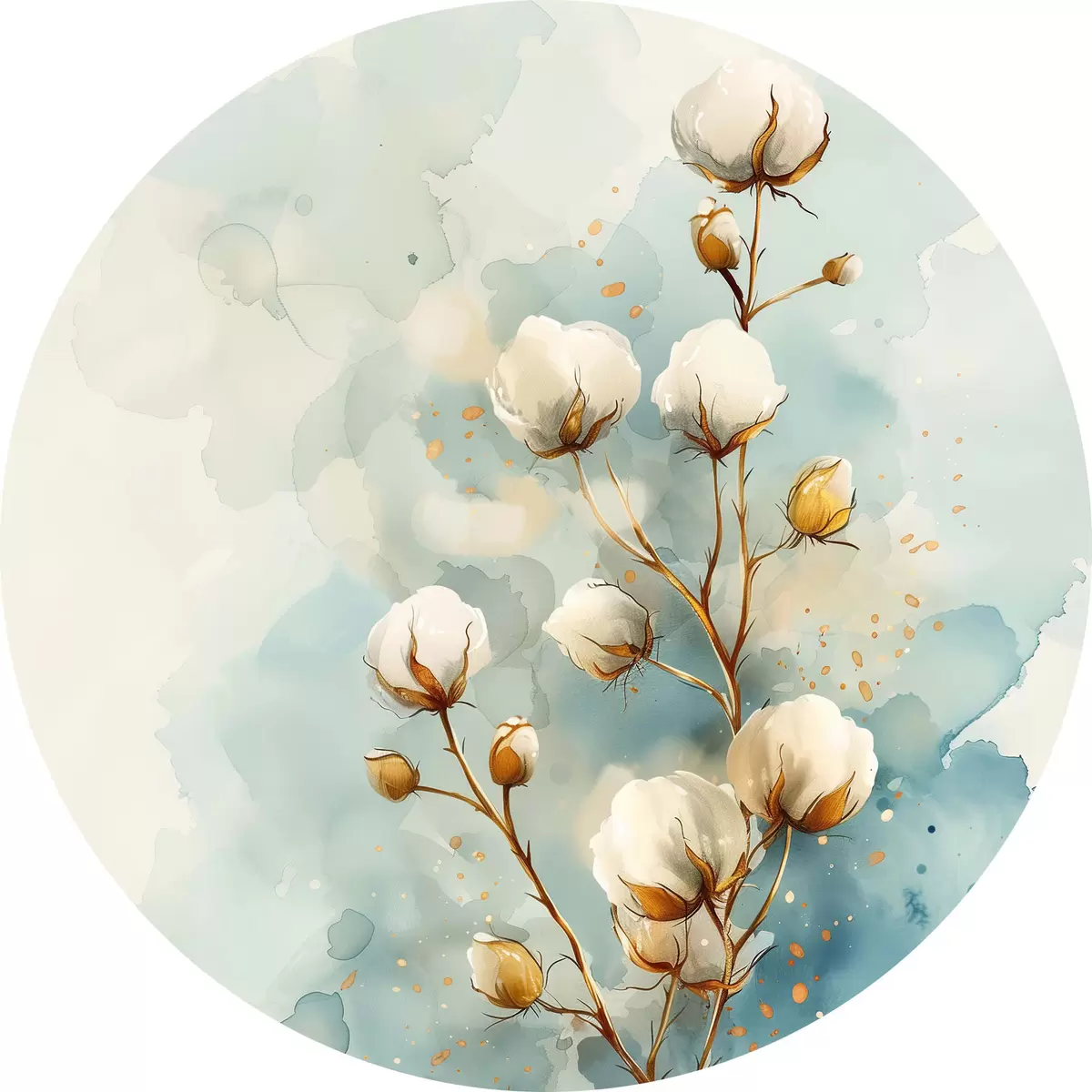 Tableaux ronds Un brin de coton sur fond d'aquarelle r40780