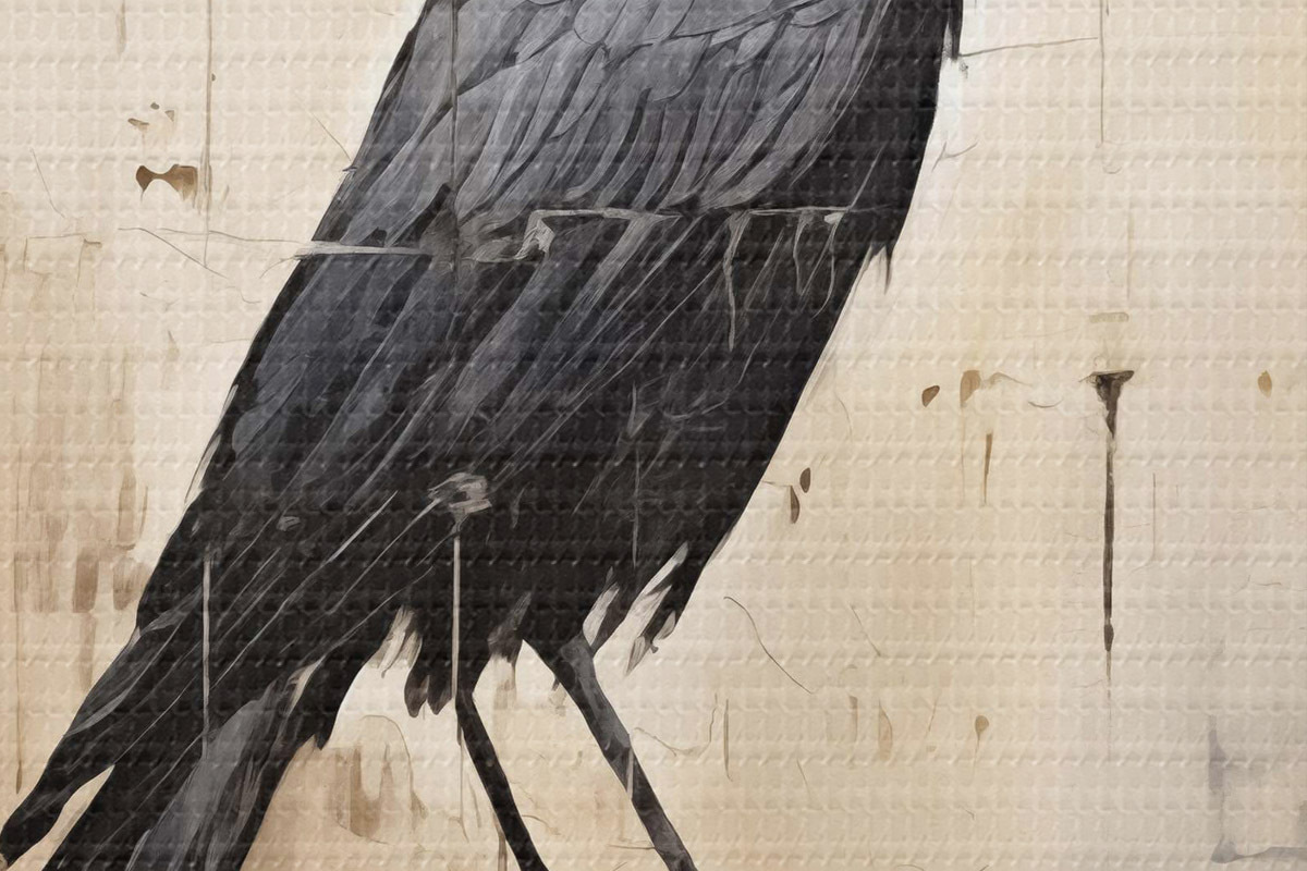 Image Corbeau noir assis sur un tronc d'arbre sur un fond abstrait Nr r40808