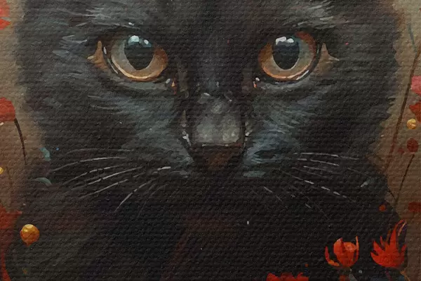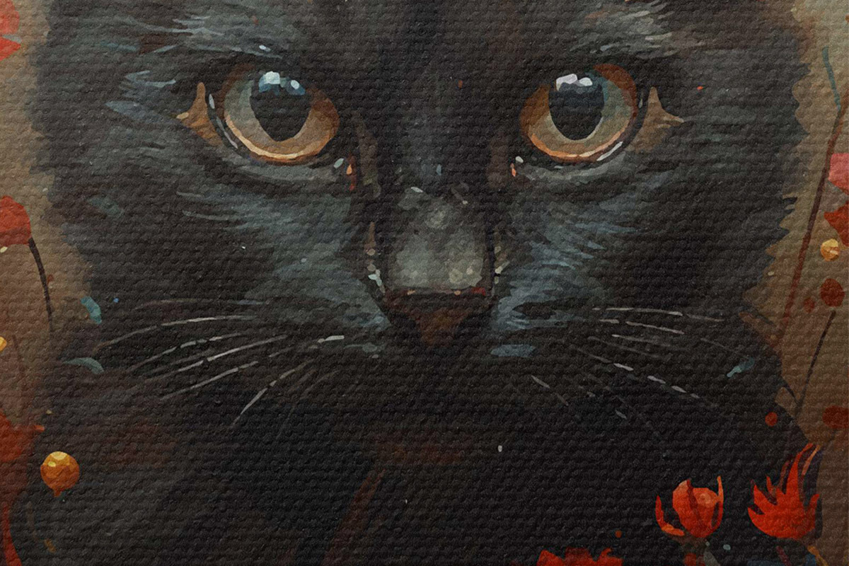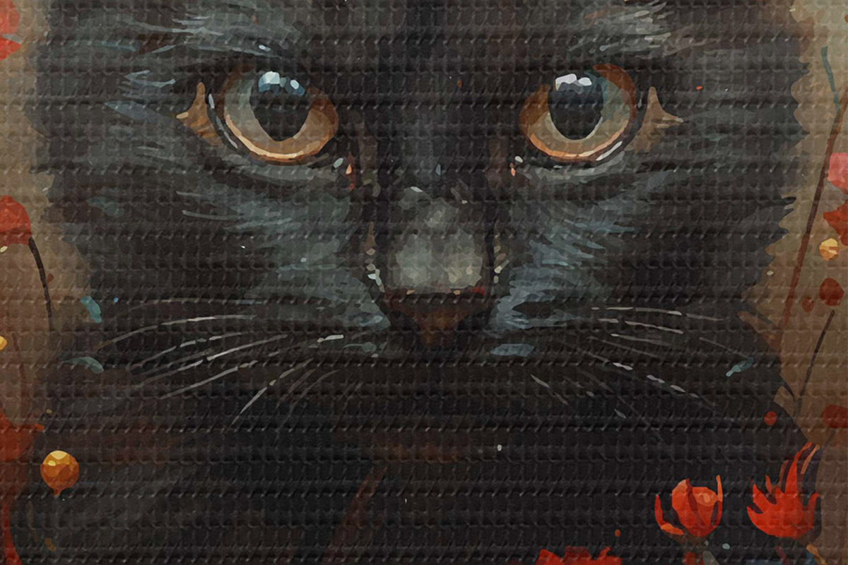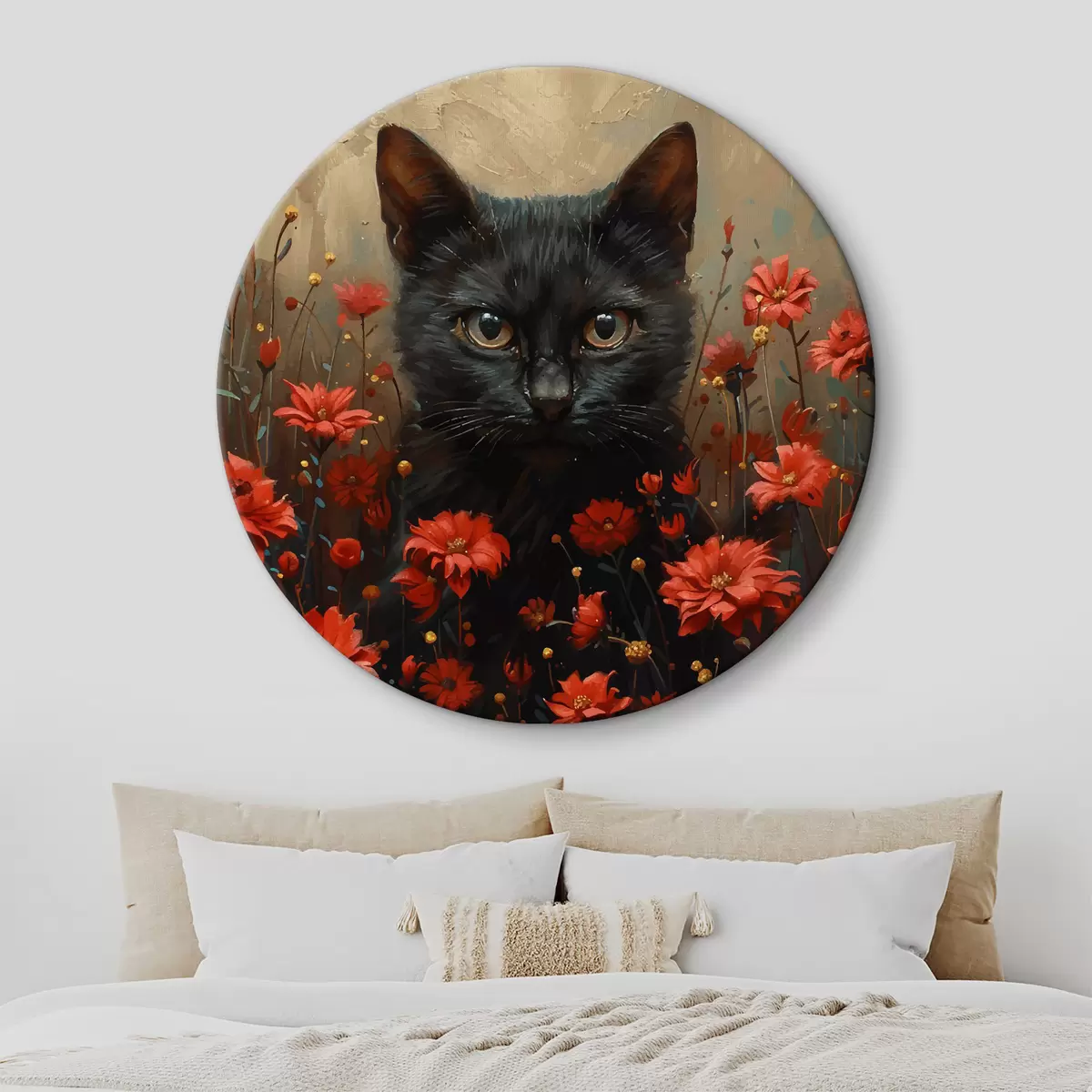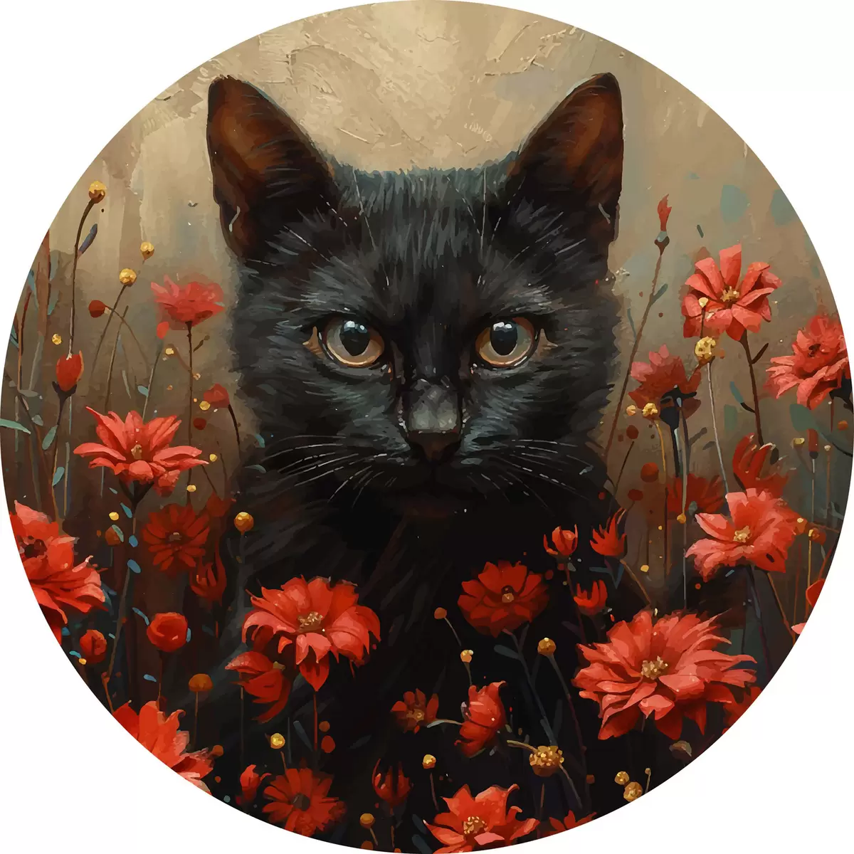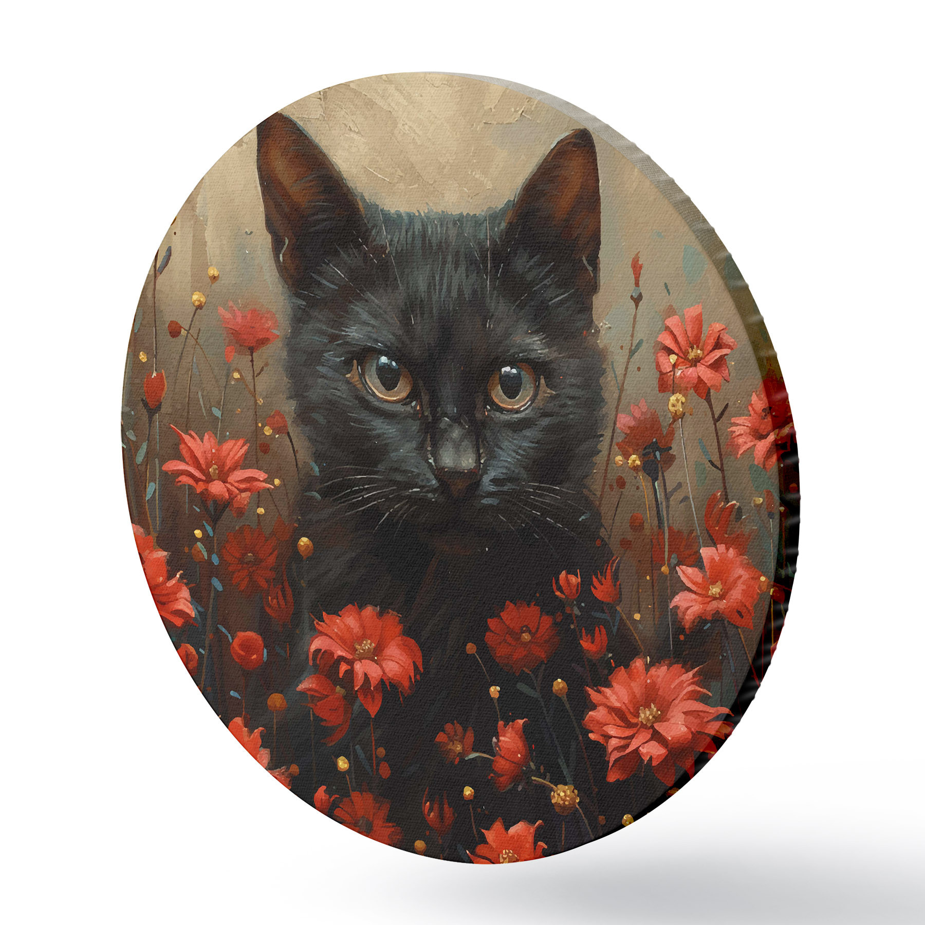 Tableaux ronds Chat, fleurs, chat noir r40839