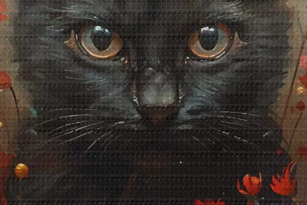 Tableaux ronds Chat, fleurs, chat noir r40839