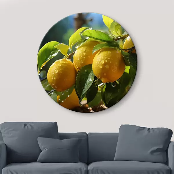 Tableaux ronds Citrons, citrons sur l'arbre, rosée r40840