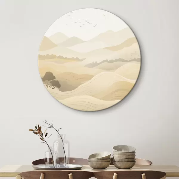 Tableaux ronds Collines, couleurs douces, arbres r40845
