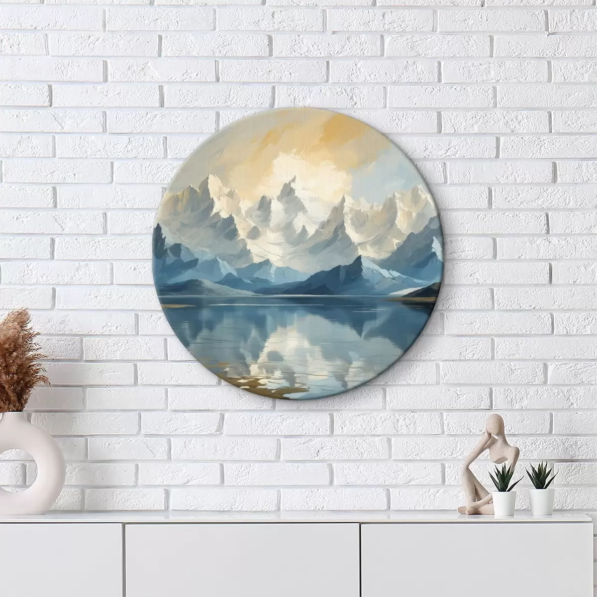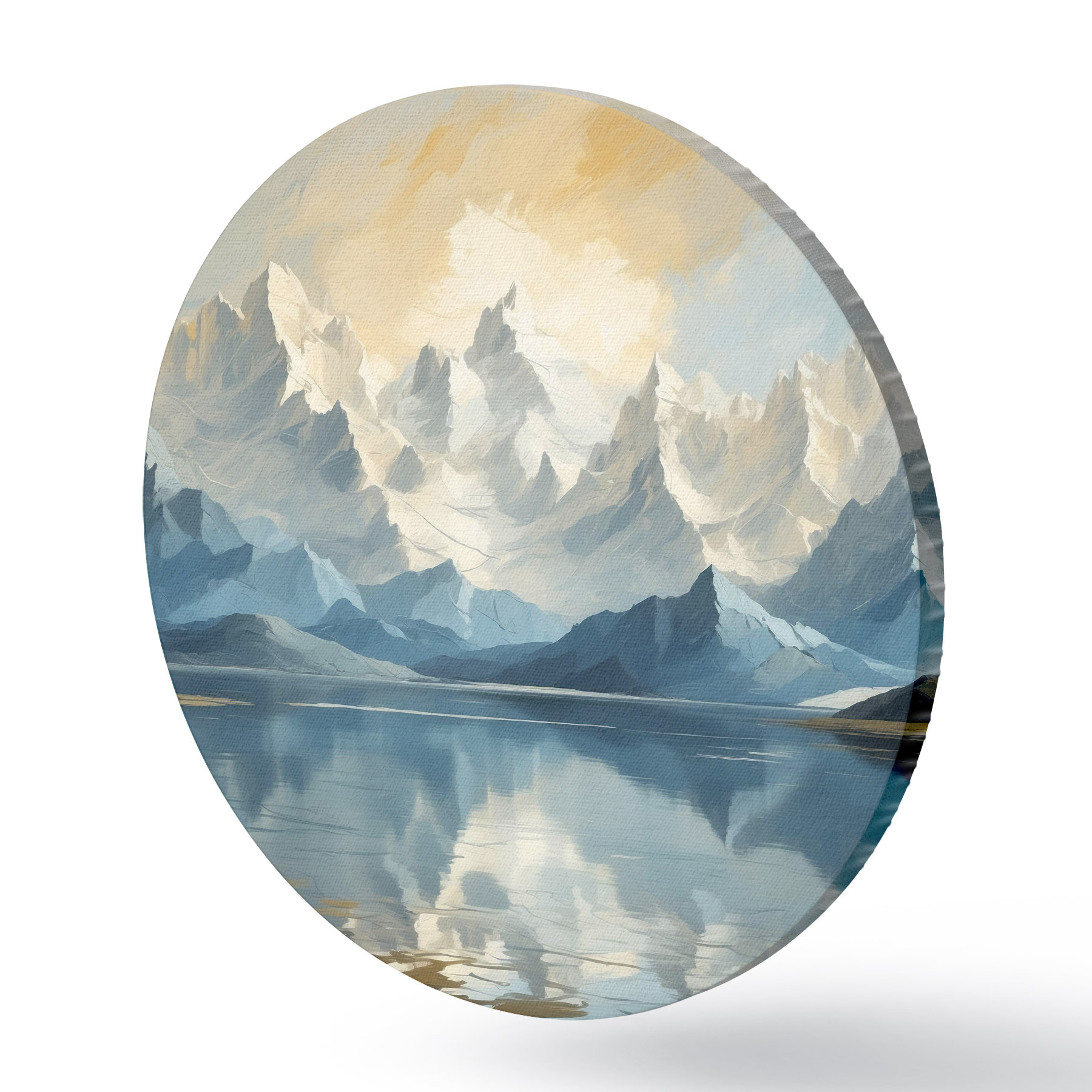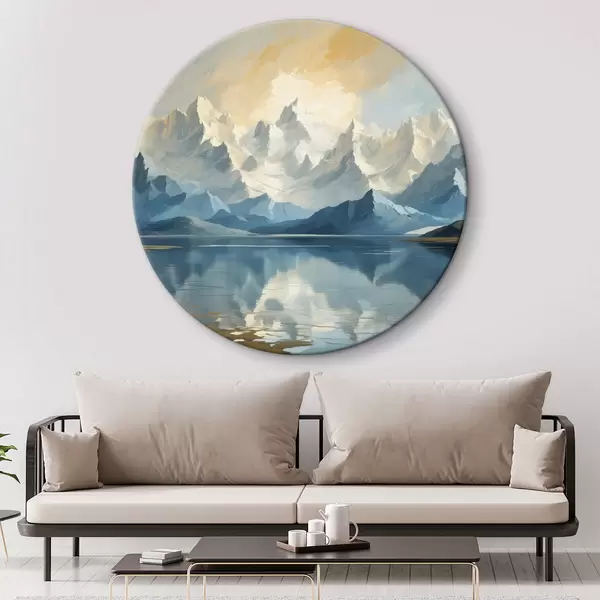Tableaux ronds Lac et montagnes enneigées r40861