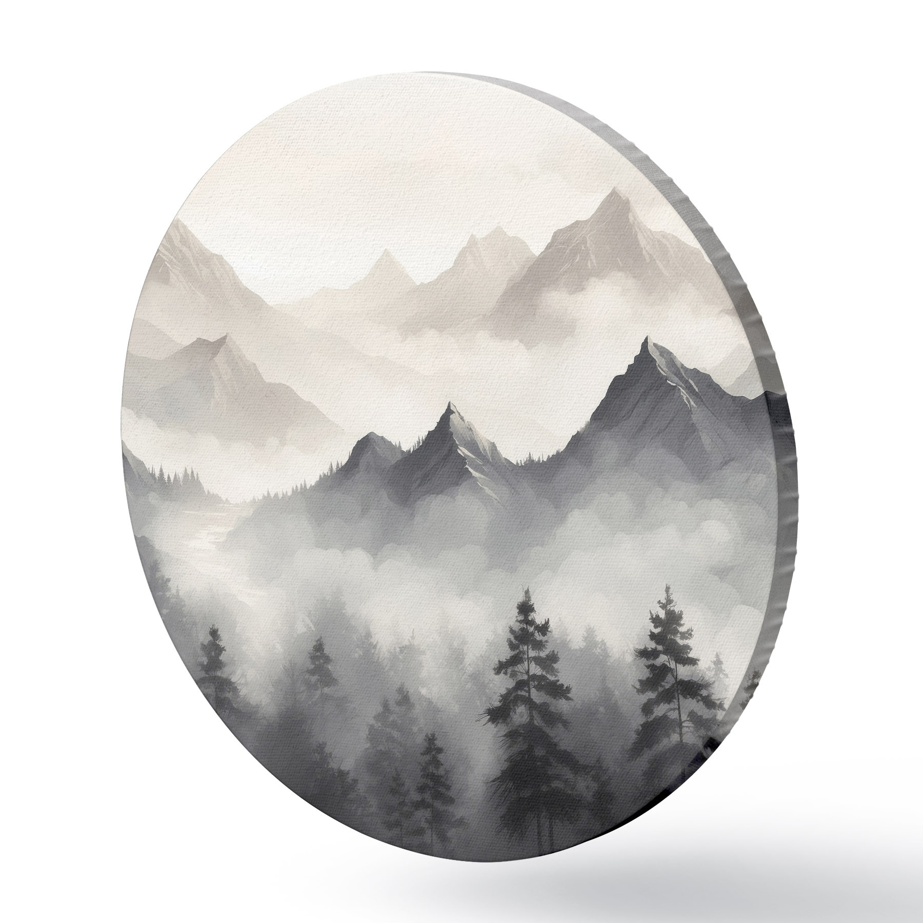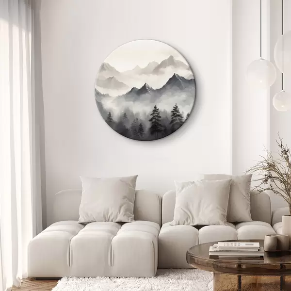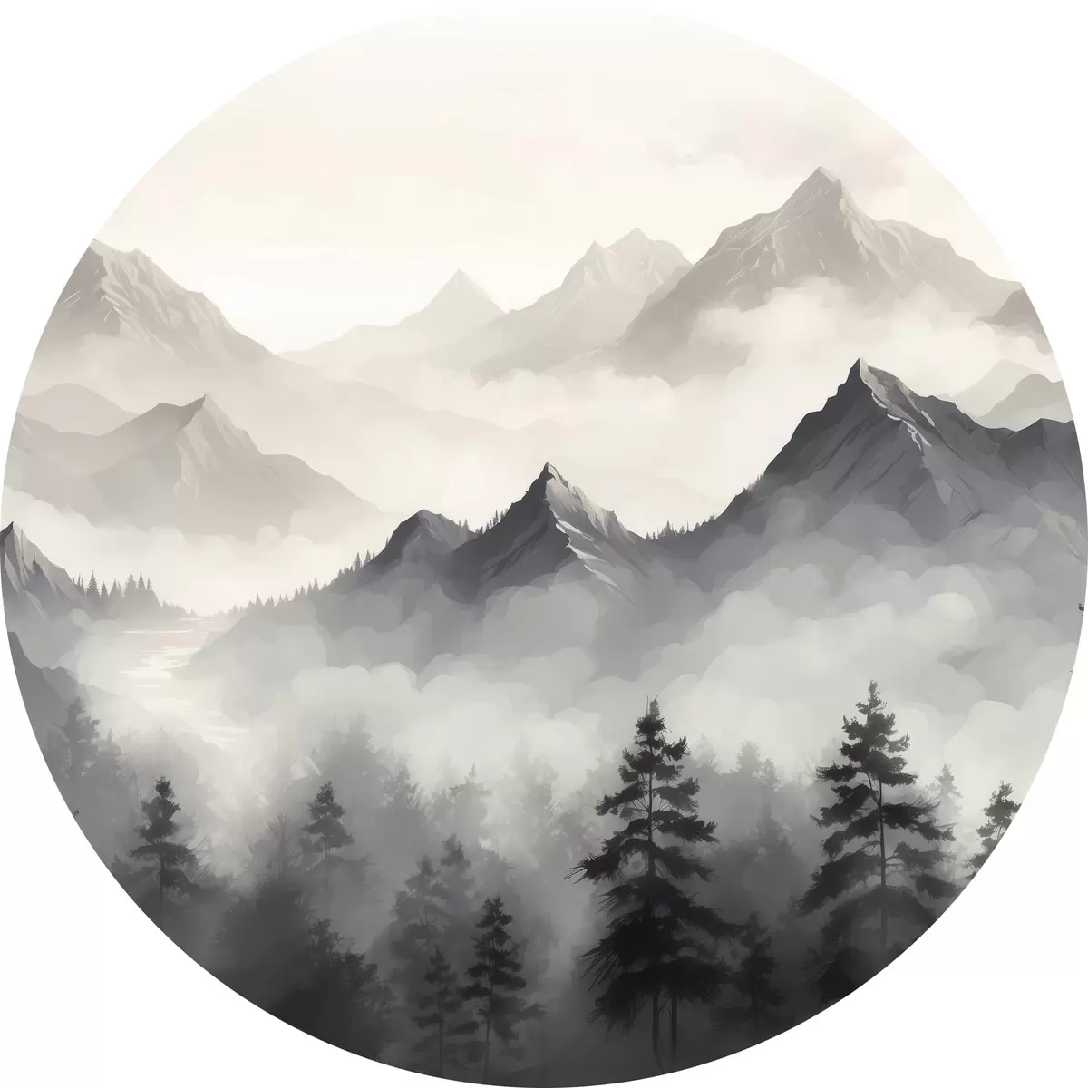 Tableaux ronds Forêt et montagnes dans le brouillard r40866