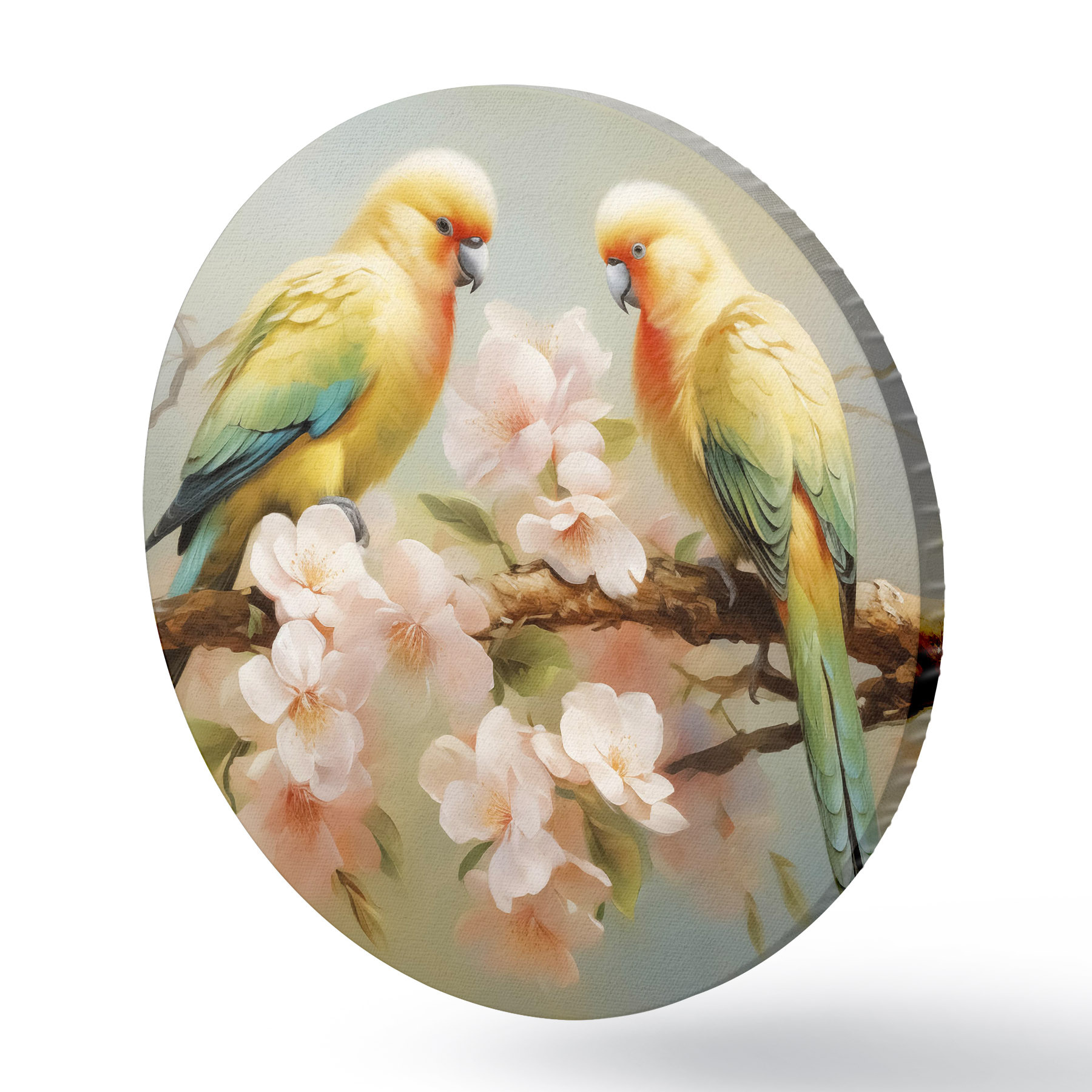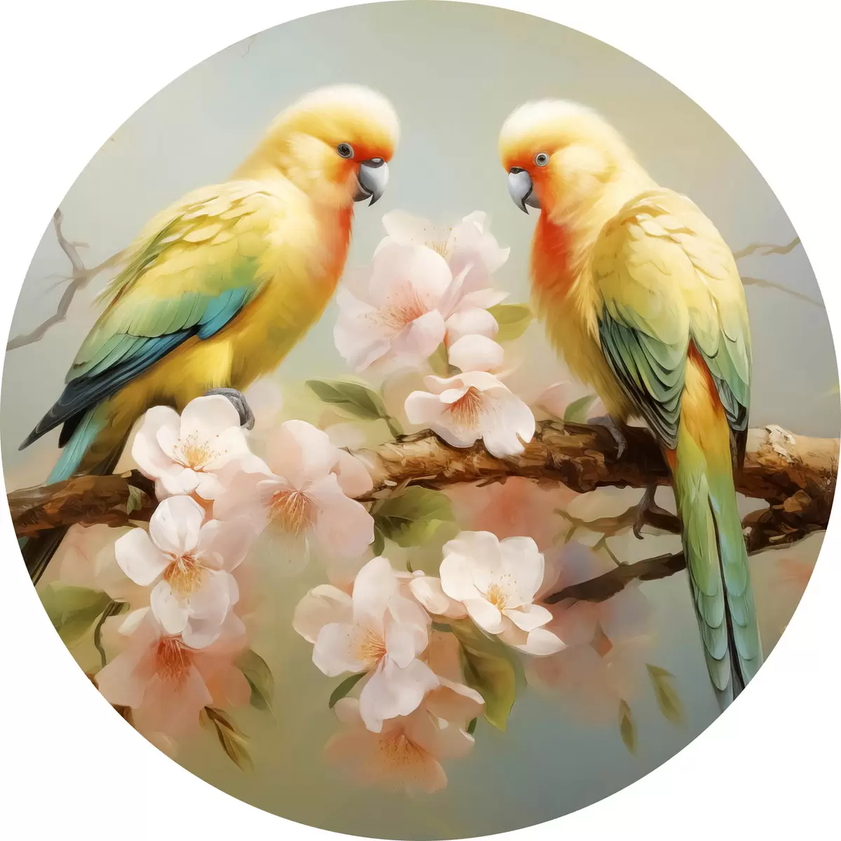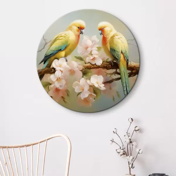 Tableaux ronds Perroquets assis sur une branche fleurie aquarelle r40892