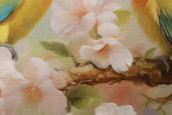 Image Perroquets assis sur une branche fleurie aquarelle Nr r40892
