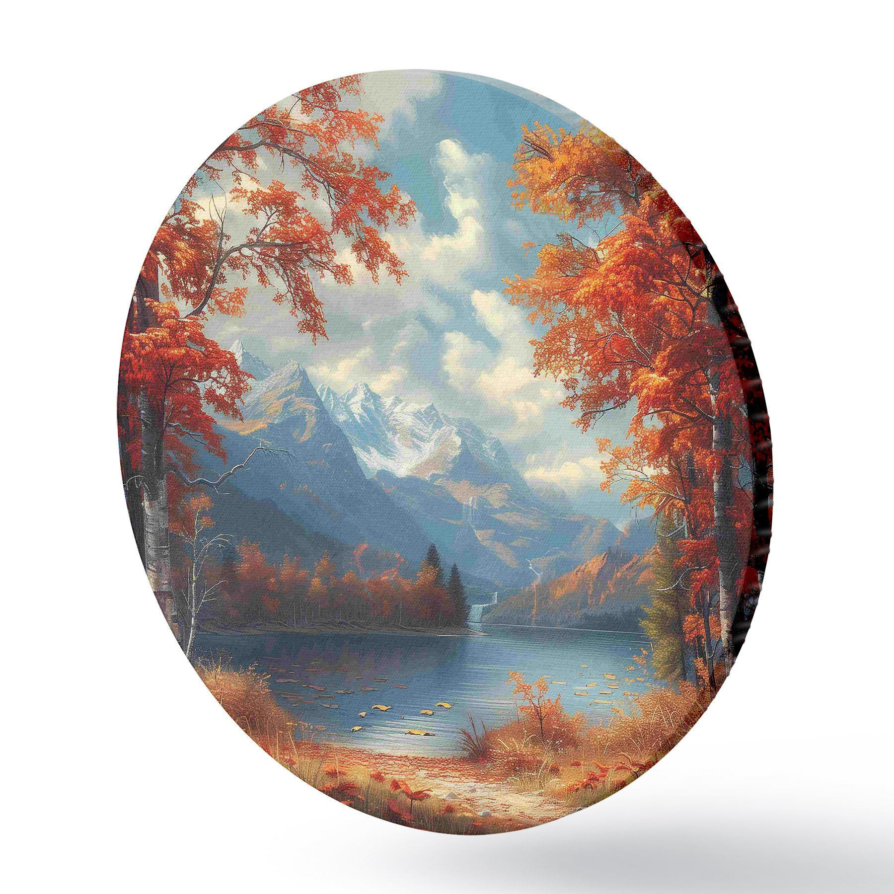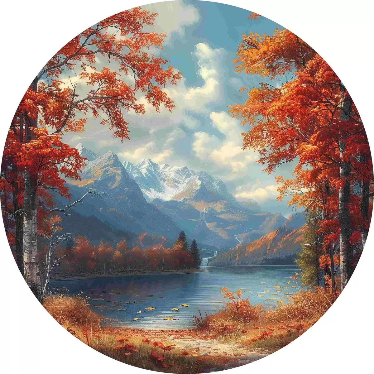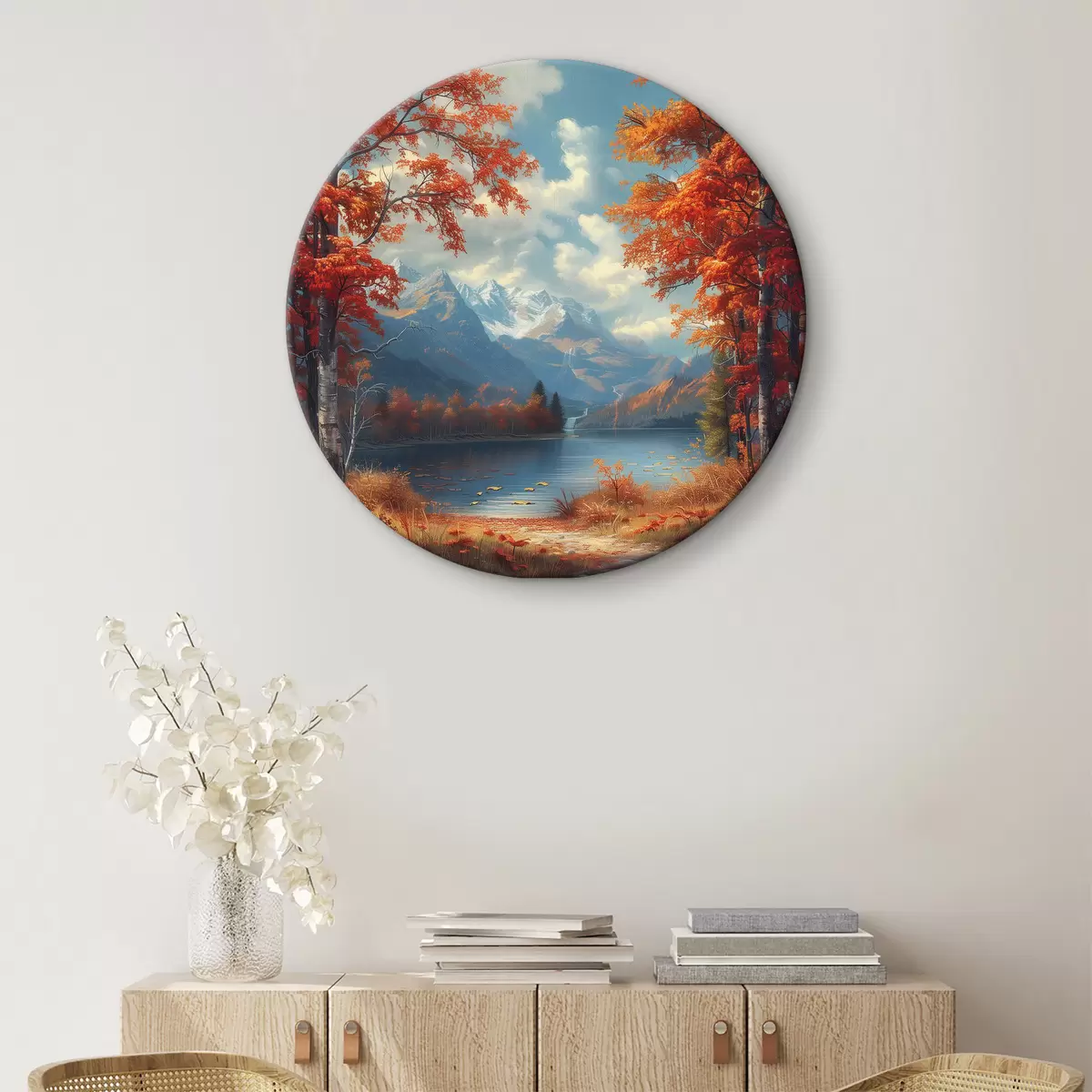 Tableaux ronds Paysage d'automne sur fond de montagnes près de l'étang r40903
