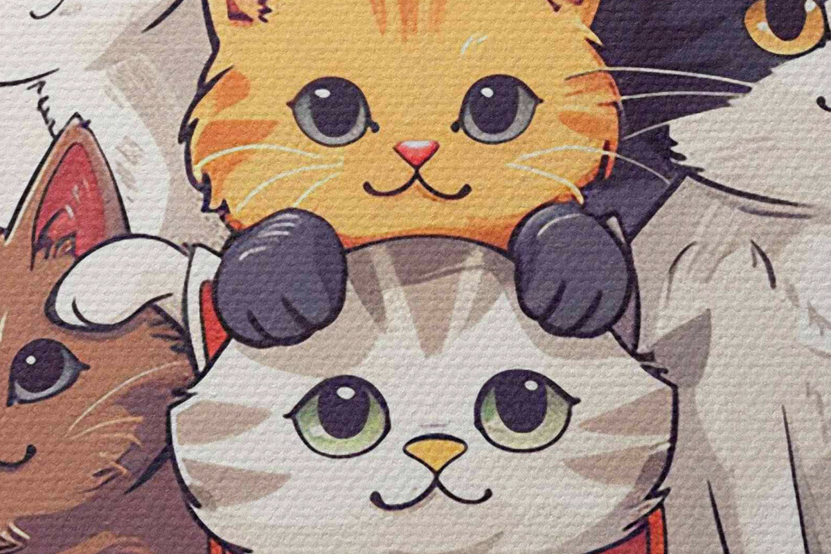 Trois types de matériaux peuvent être commandés : Economic Canvas - matériau dense et durable pour l'impression numérique, identique à la toile de peintre, surface imperméable, reproduction réaliste des détails, matériau à grain moyen. Premium Canvas - la texture ressemble à celle d'une toile de peintre (petits fils entrelacés). Reproduction douce et détaillée de l'image sur une surface mate. Eco-Premium - tissu 100 % coton de haute qualité. Grâce aux fibres naturelles de coton, le matériau est durable et résistant à l'usure. Excellente reproduction des couleurs et des détails.