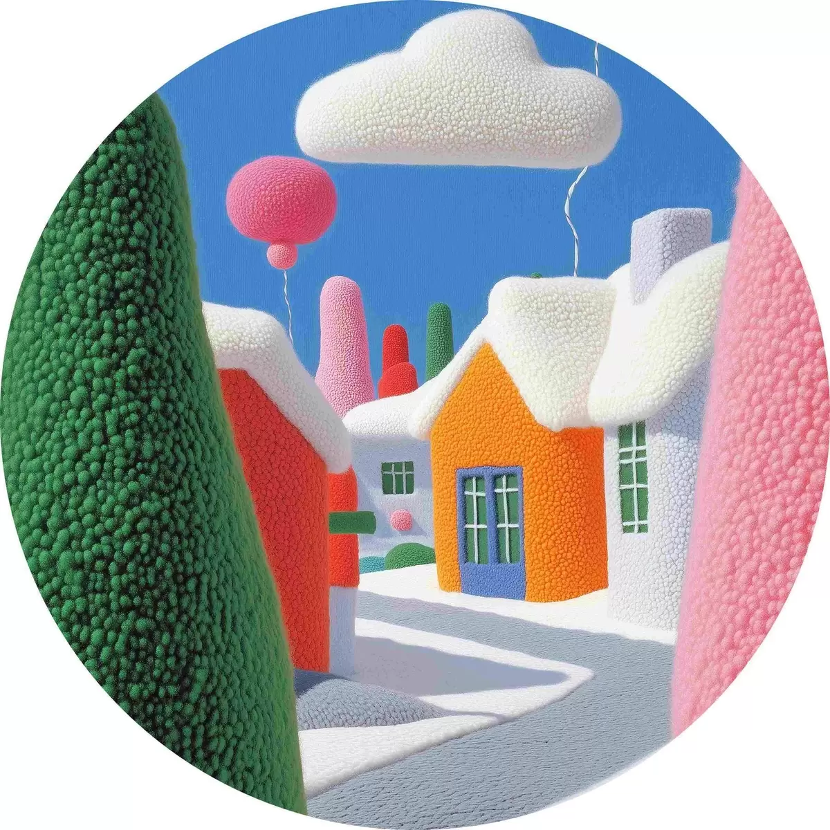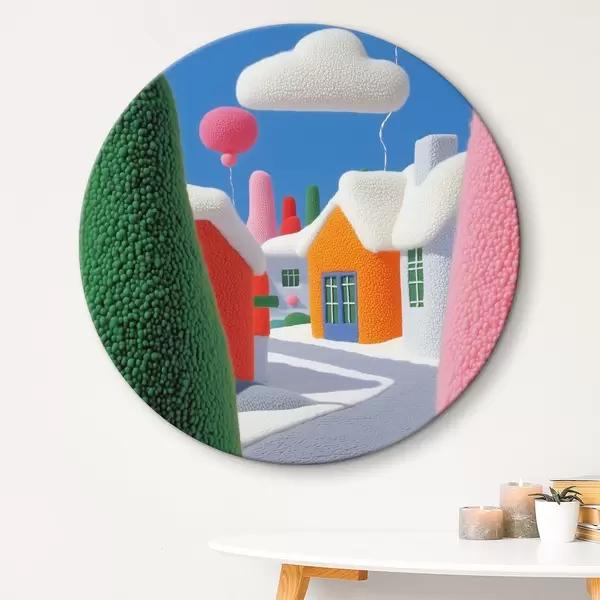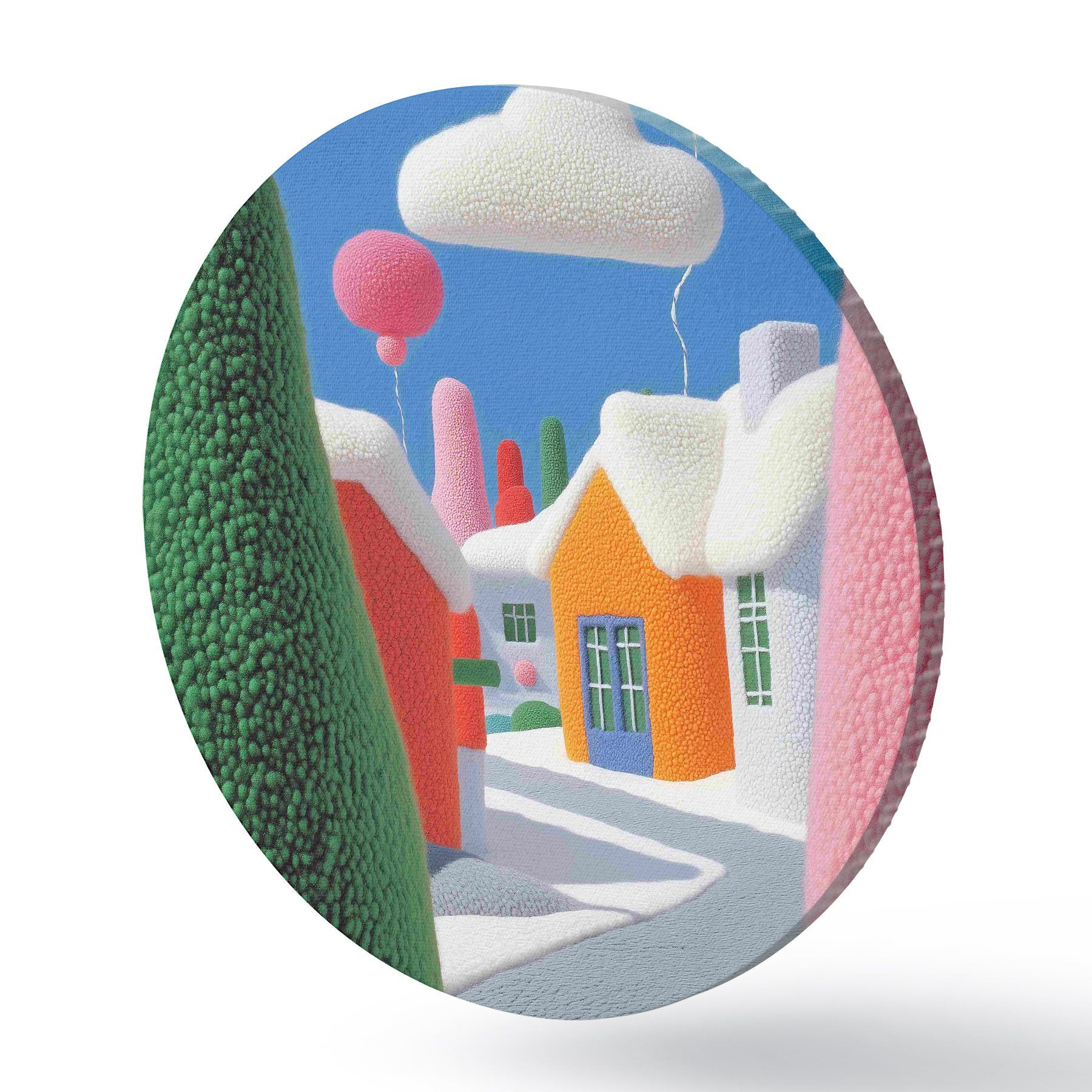 Tableaux ronds Rue avec nuages et ballons en feutre r40970