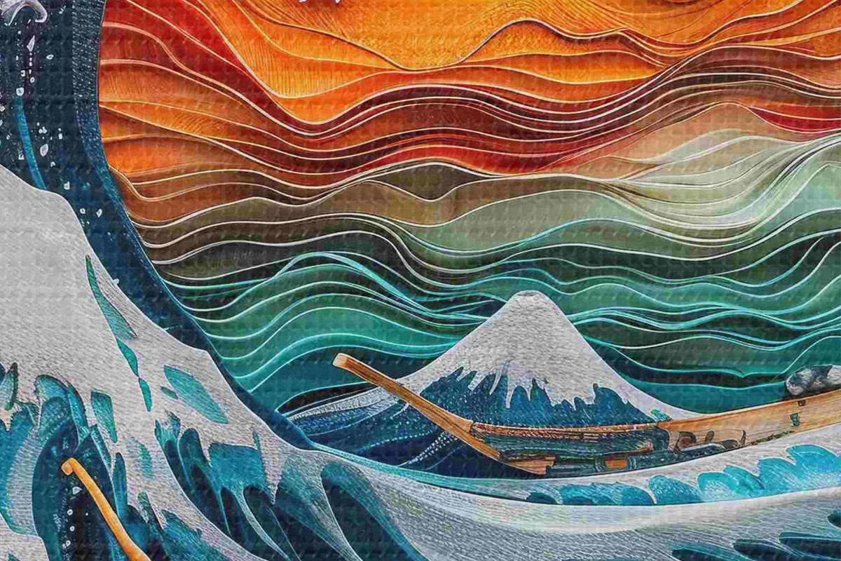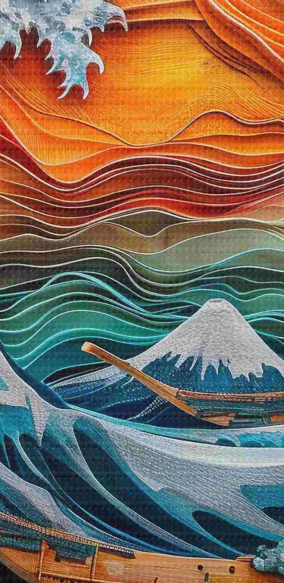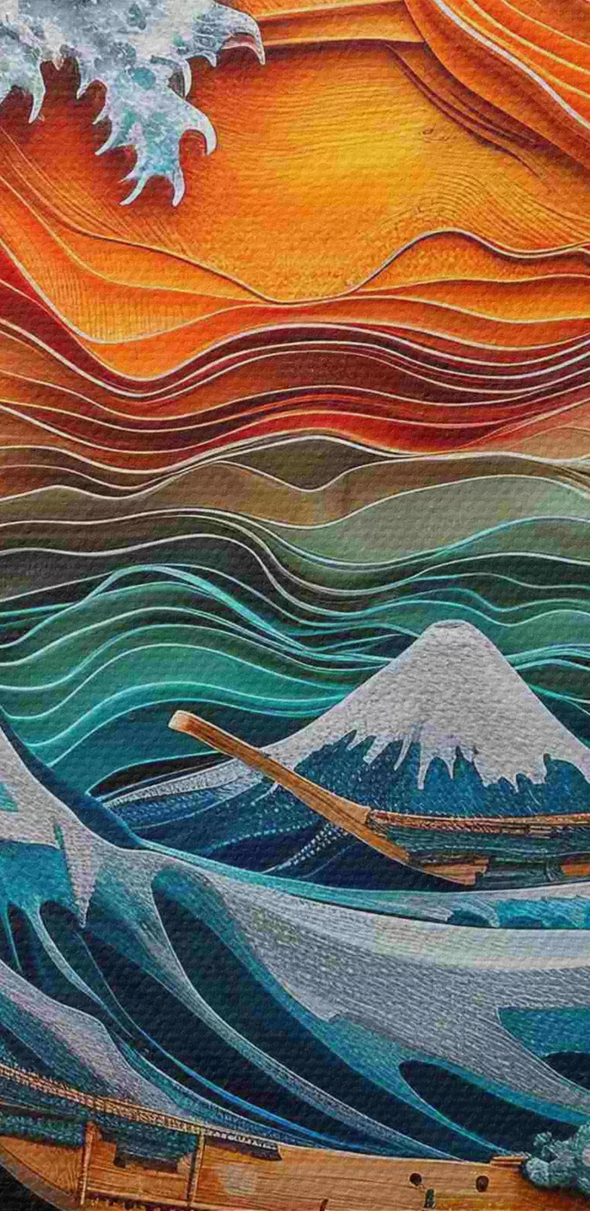 Image Imitation d'un bas-relief : un océan déchaîné avec des bateaux et le soleil Nr r40976