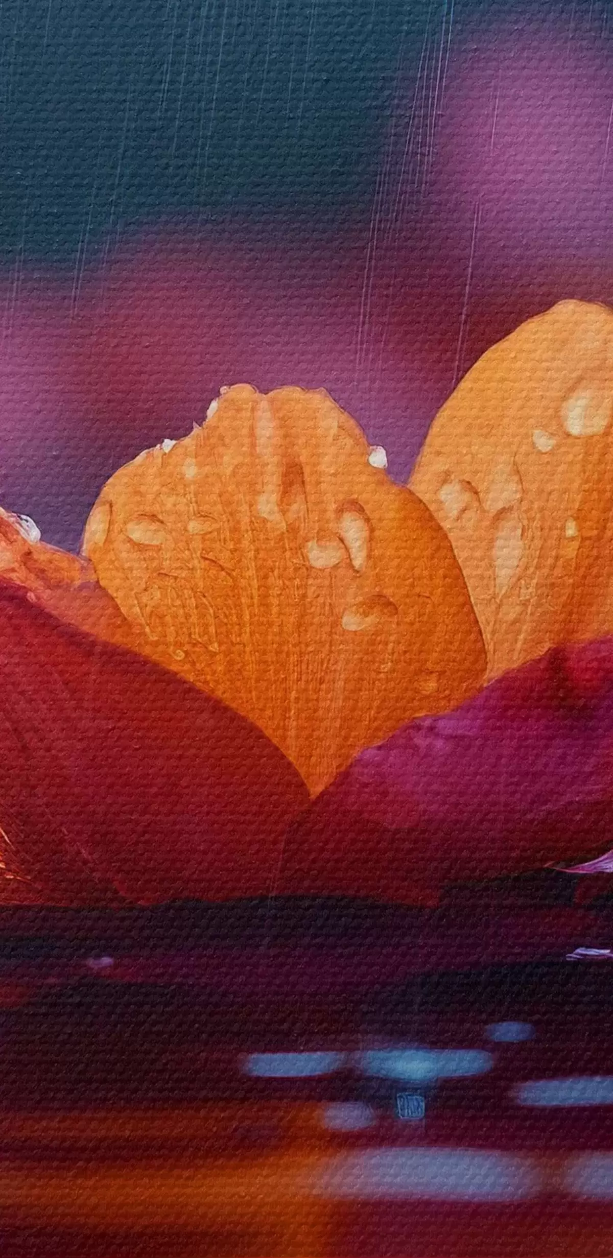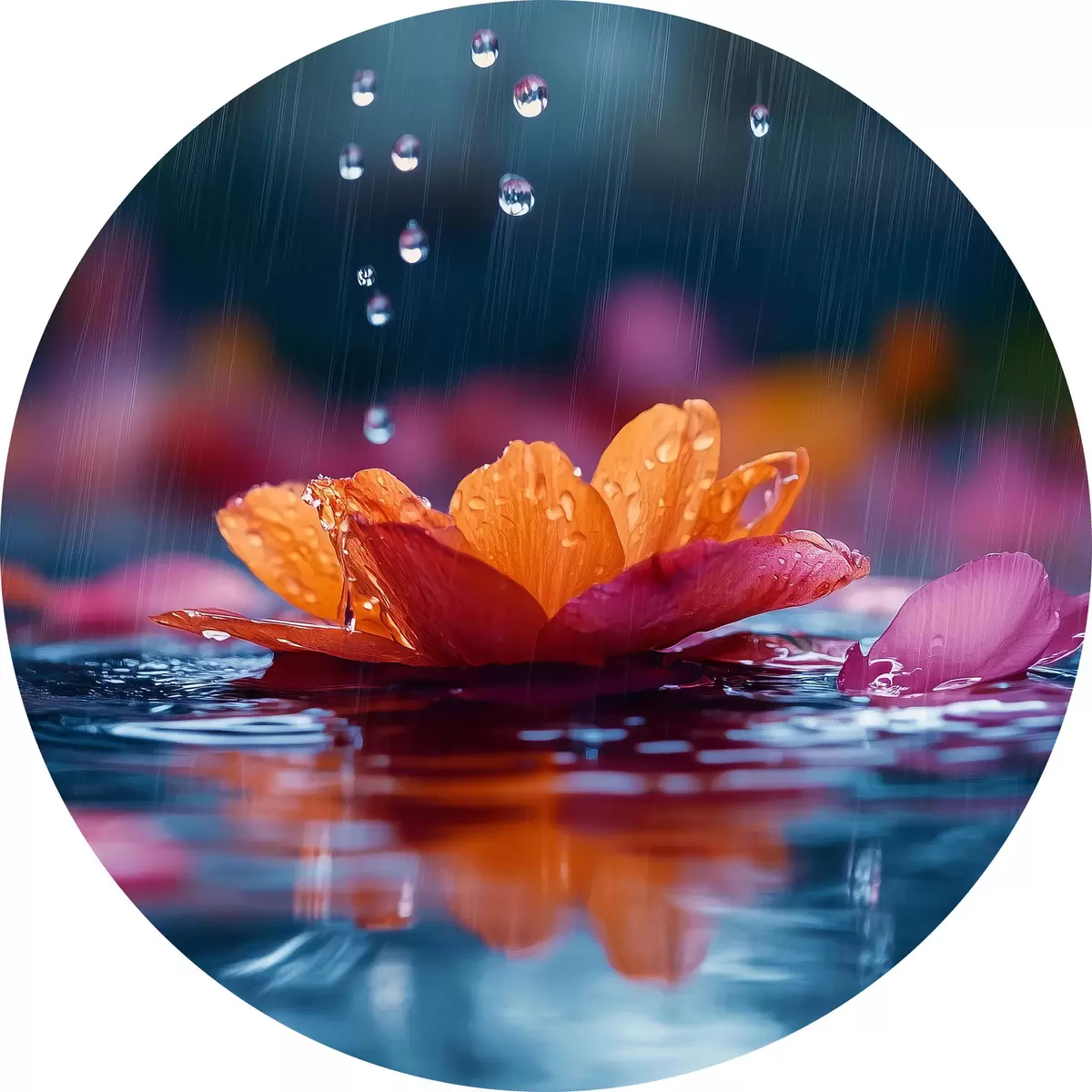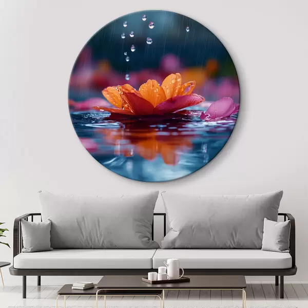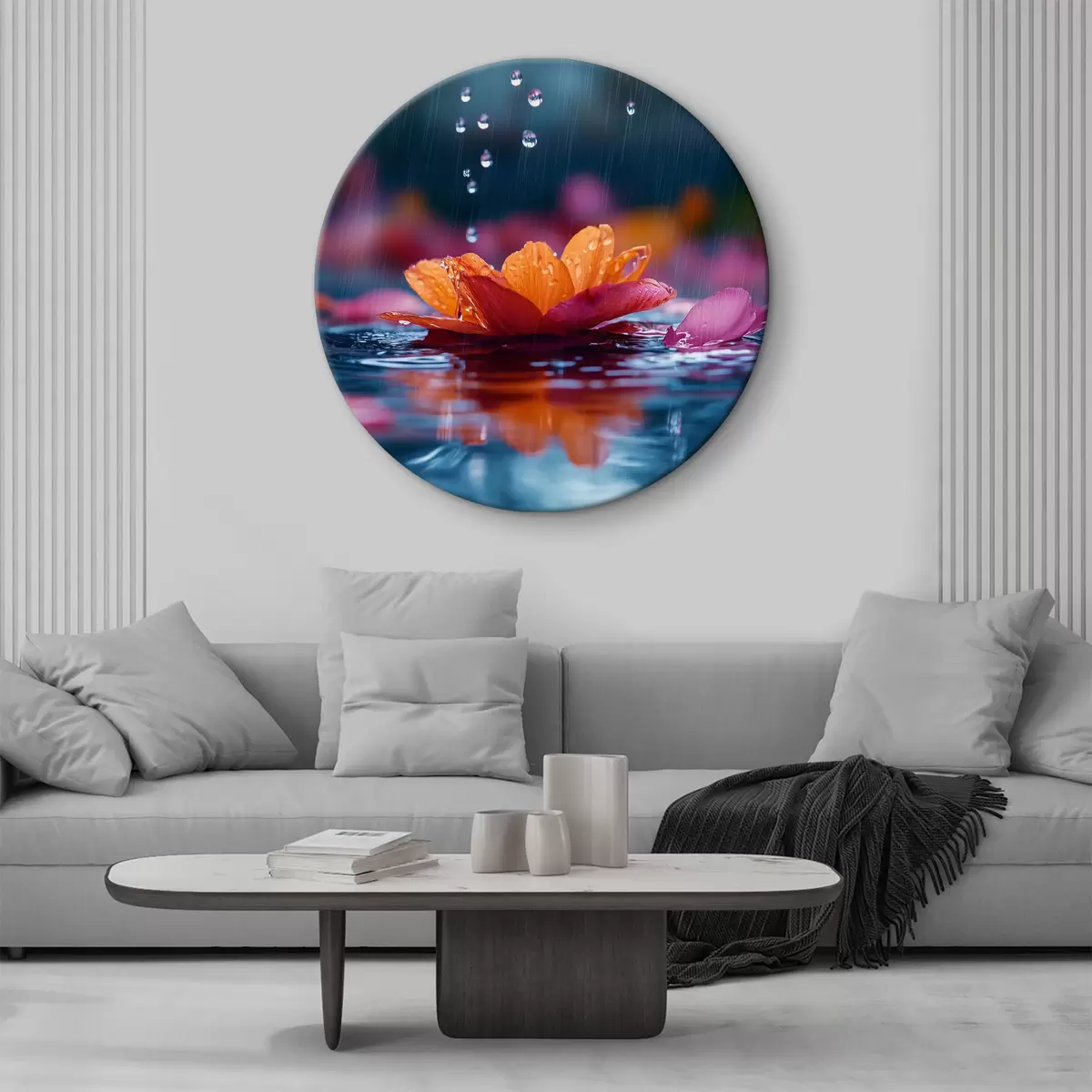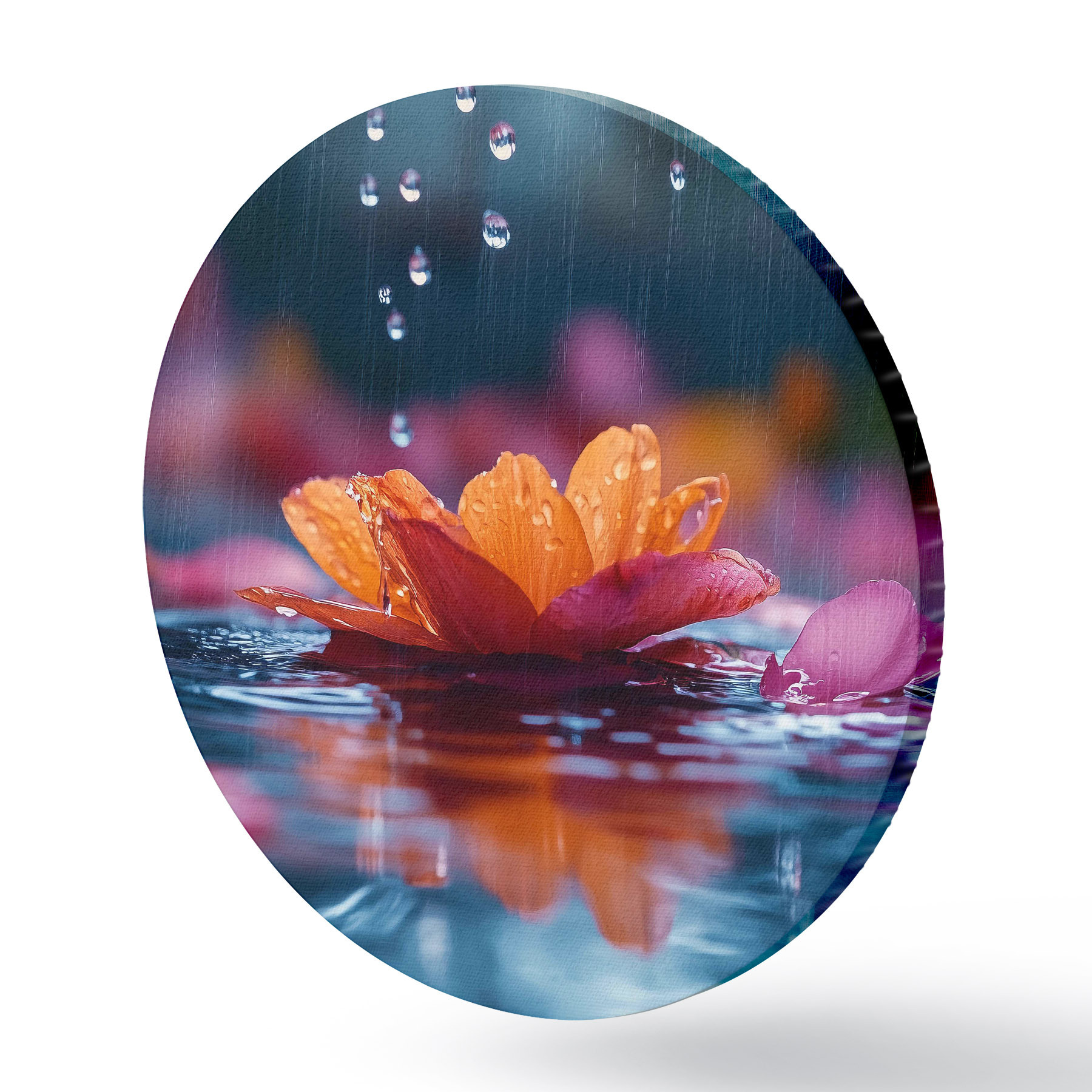Tableaux ronds Nénuphar avec gouttes de pluie r40977