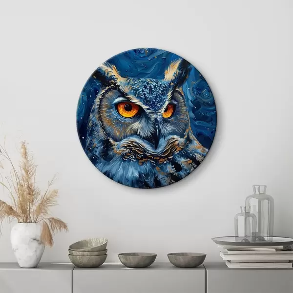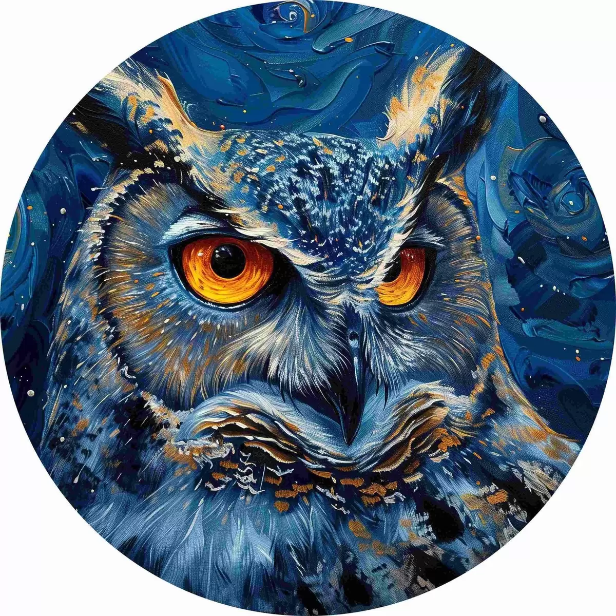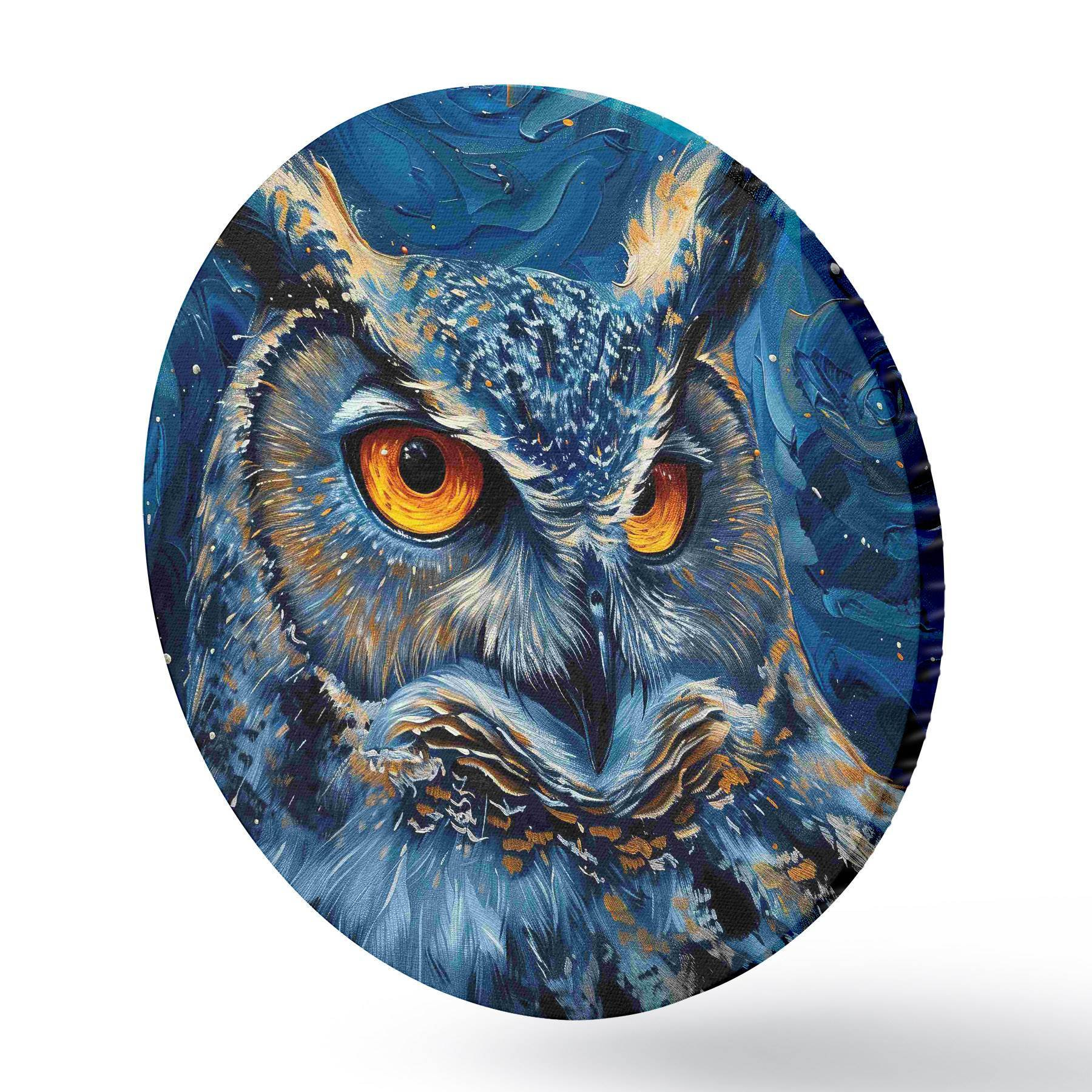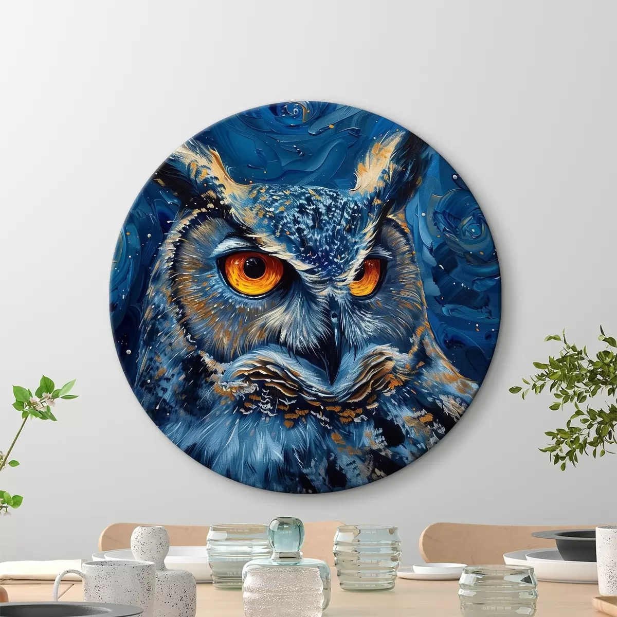 Tableaux ronds Le regard nocturne d'un hibou sur le ciel à la manière de Van Gogh r40982