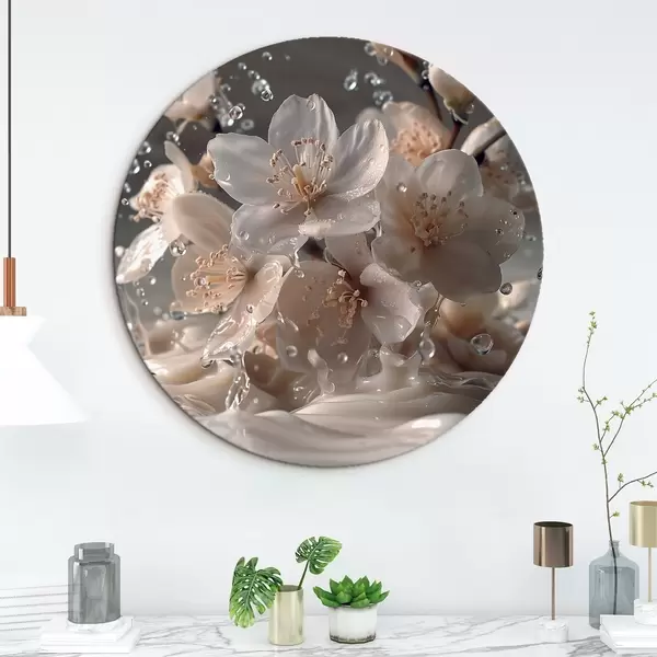 Tableaux ronds Fleurs de jasmin dans un tourbillon de gouttes r41003