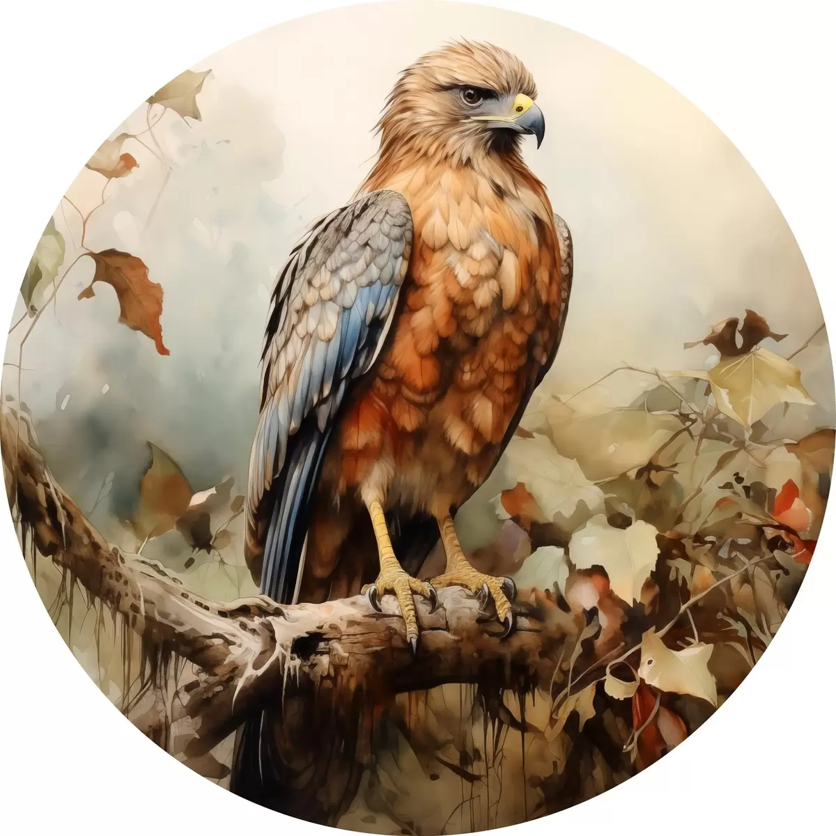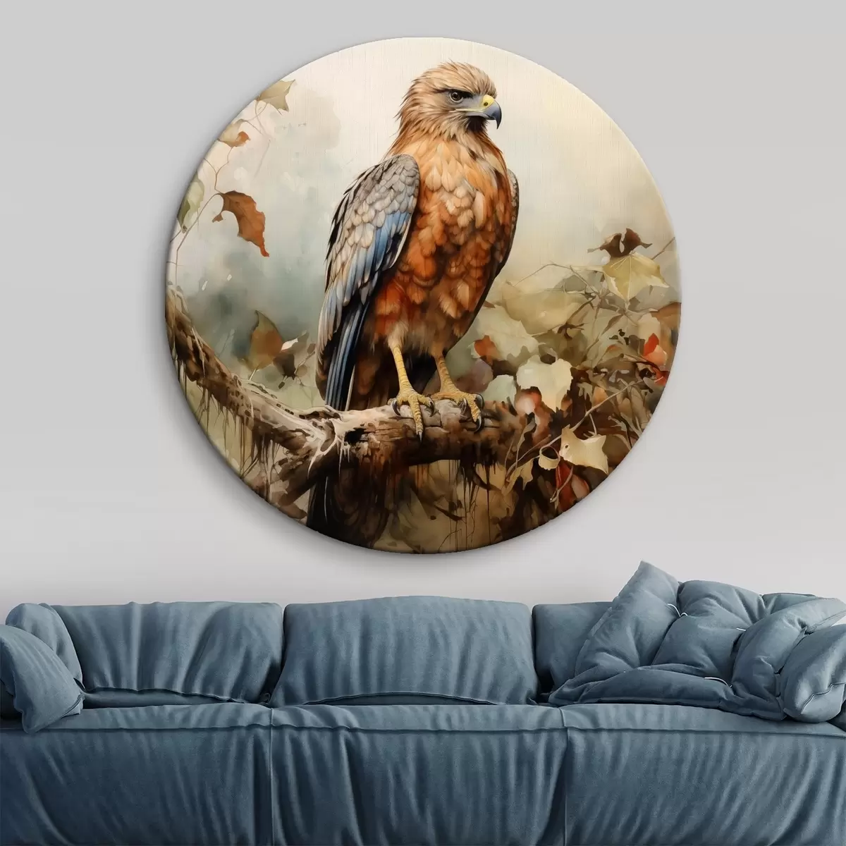 Tableaux ronds Faucon assis sur une branche aquarelle r41021