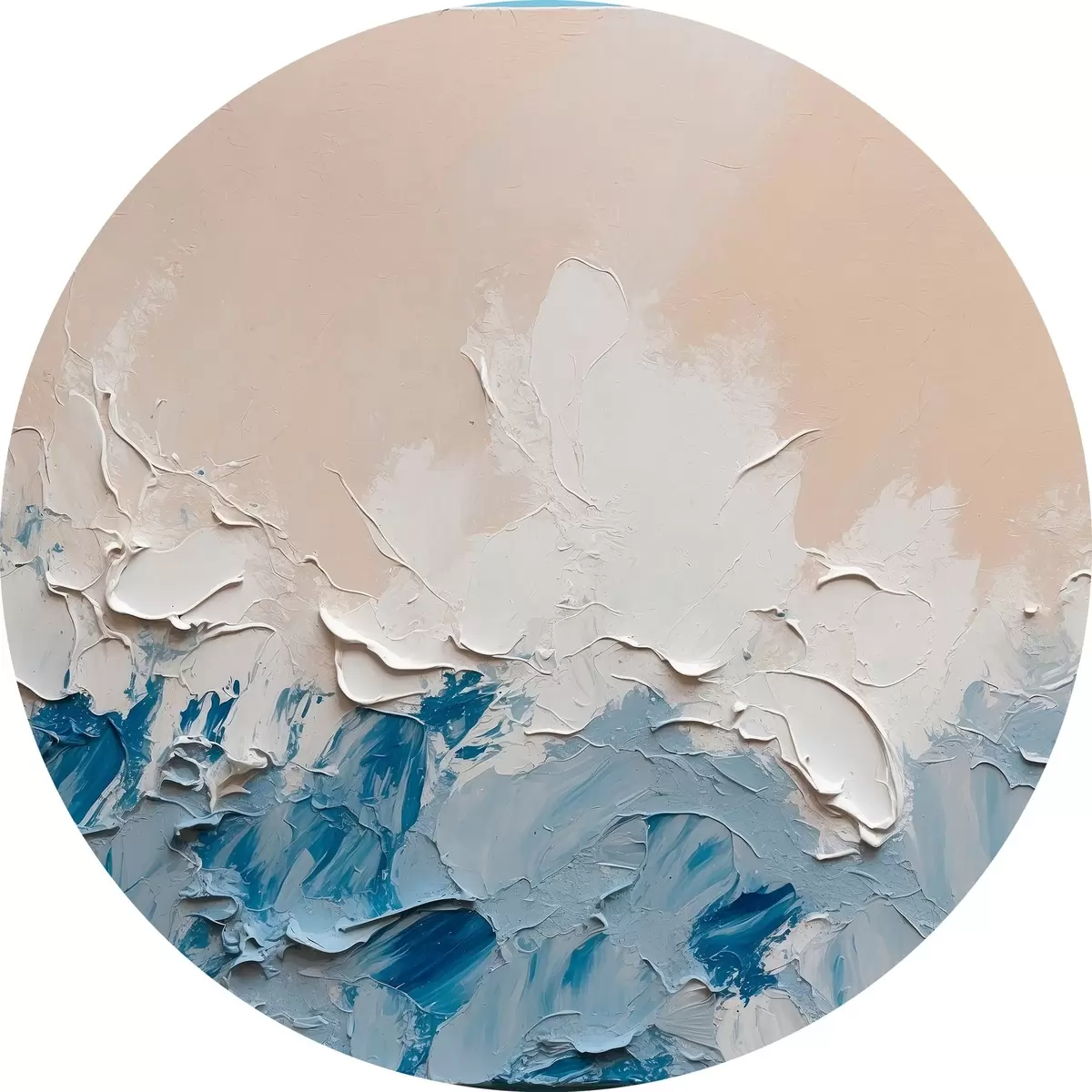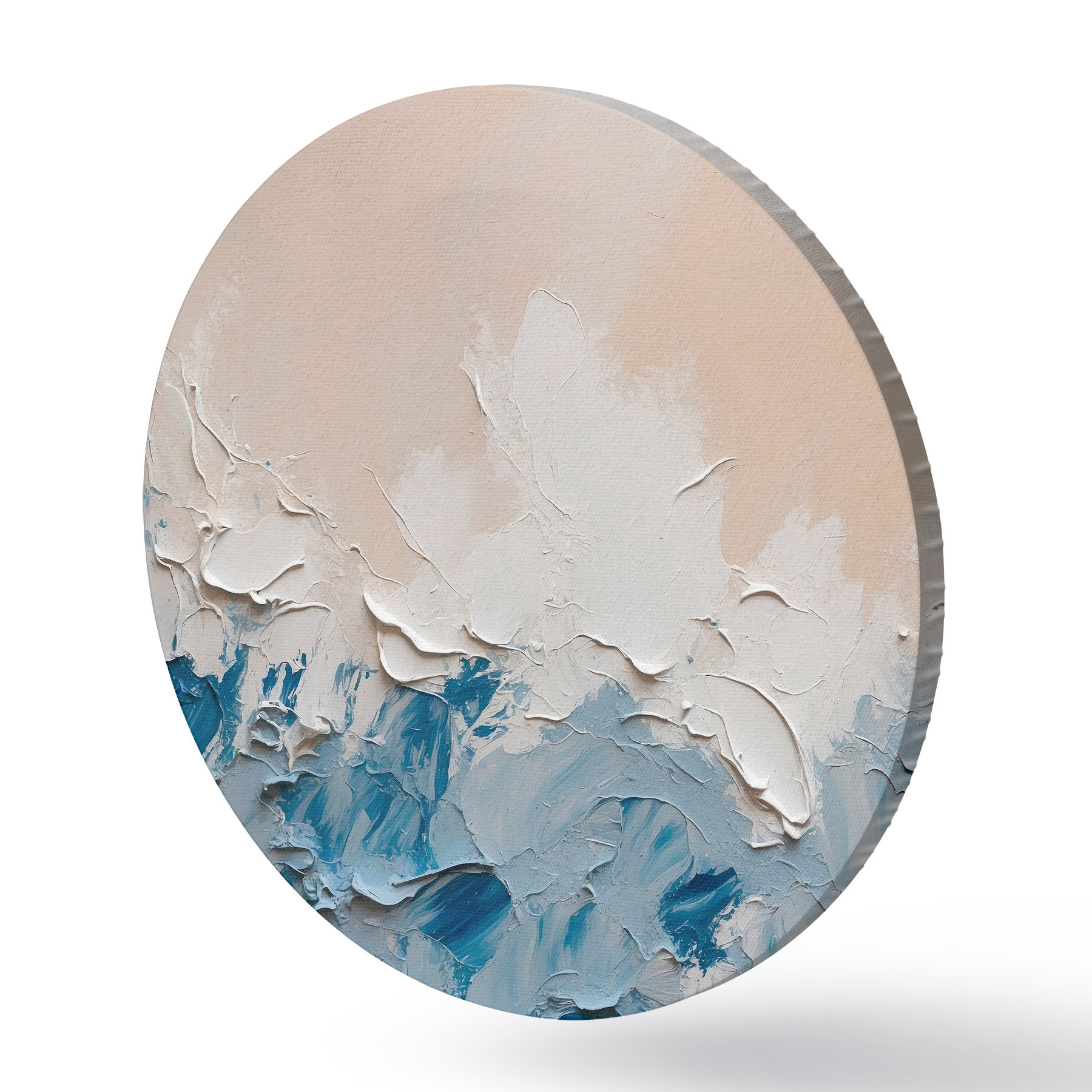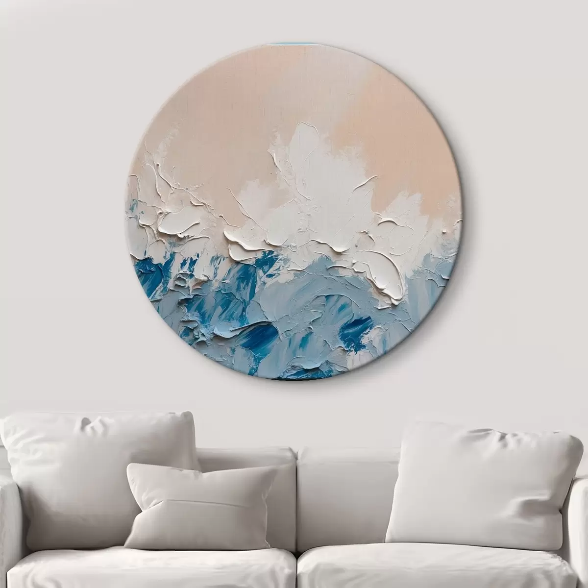 Tableaux ronds Abstraction avec des couleurs à l'huile blanches, bleues et bleues r41027