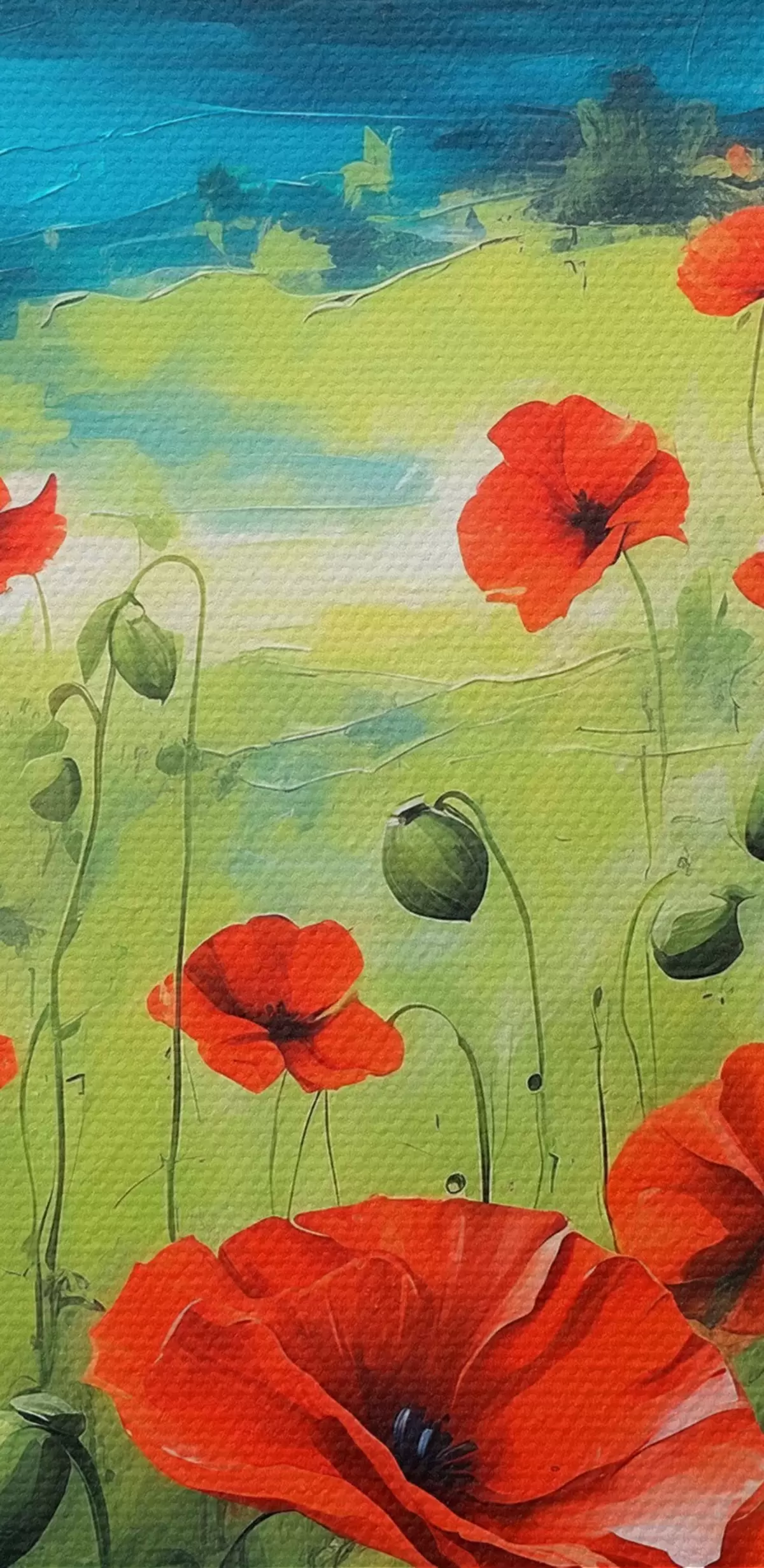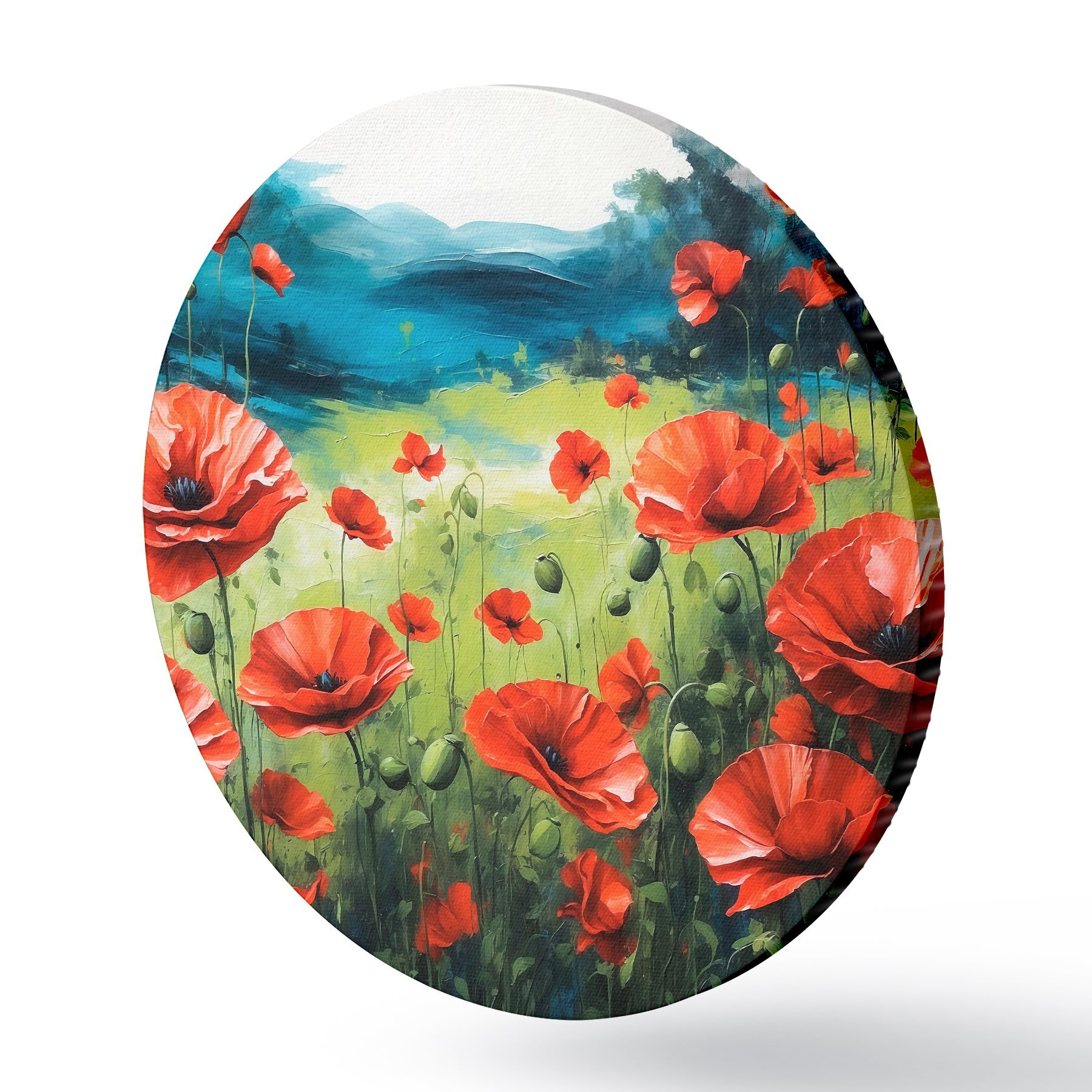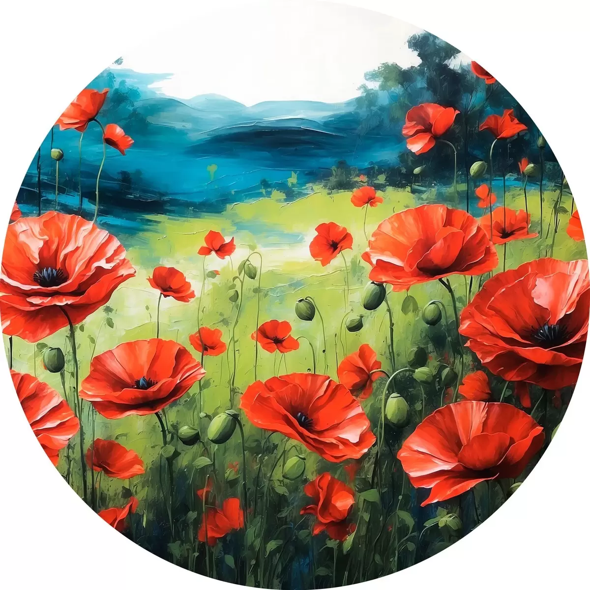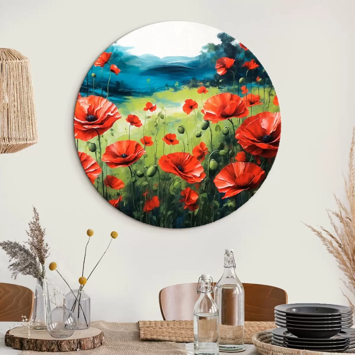 Tableaux ronds Coquelicots sur fond acrylique r41035