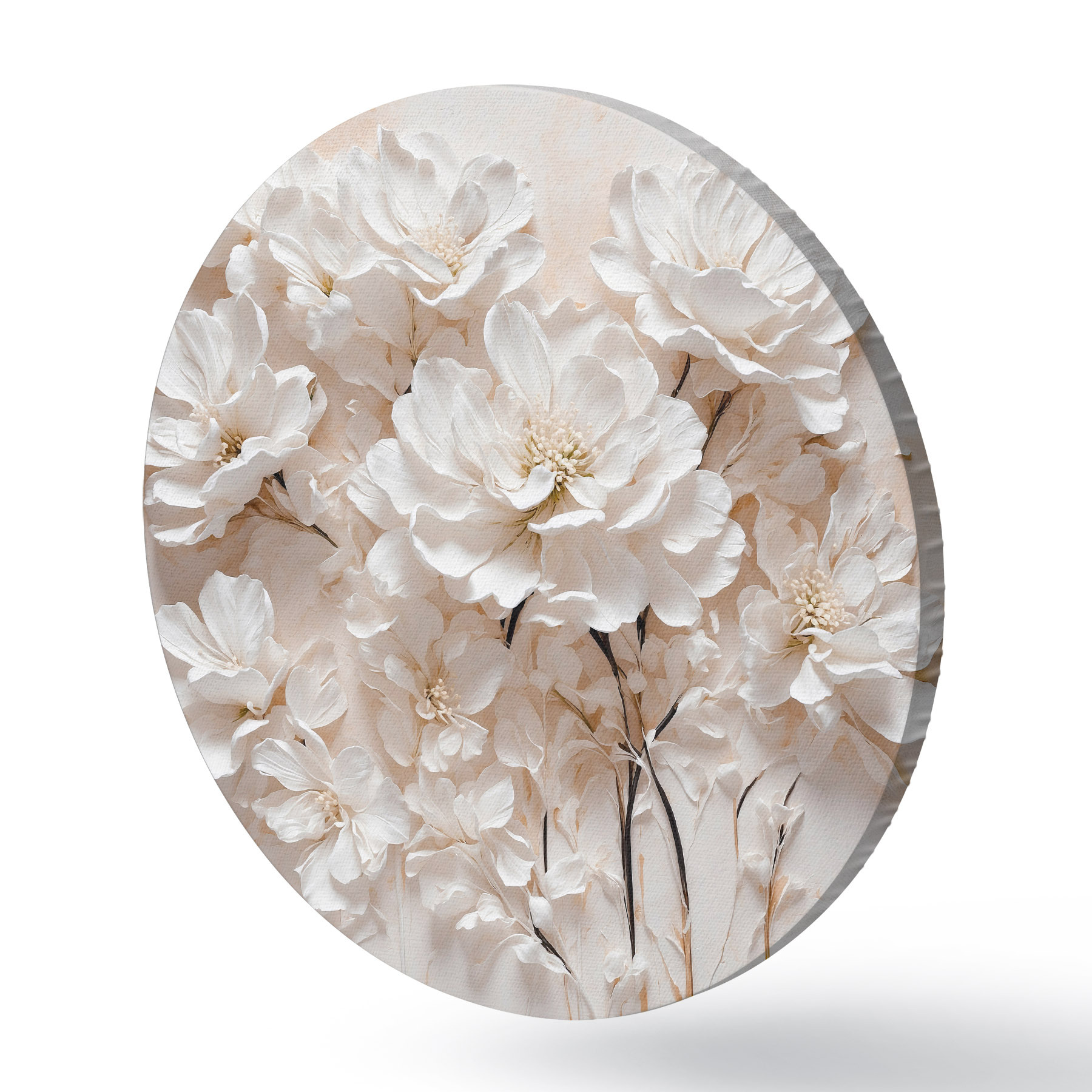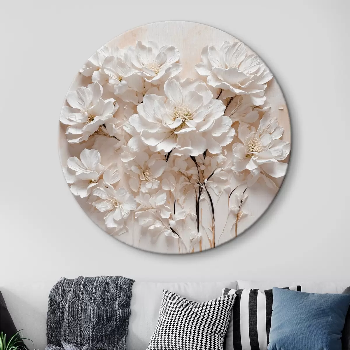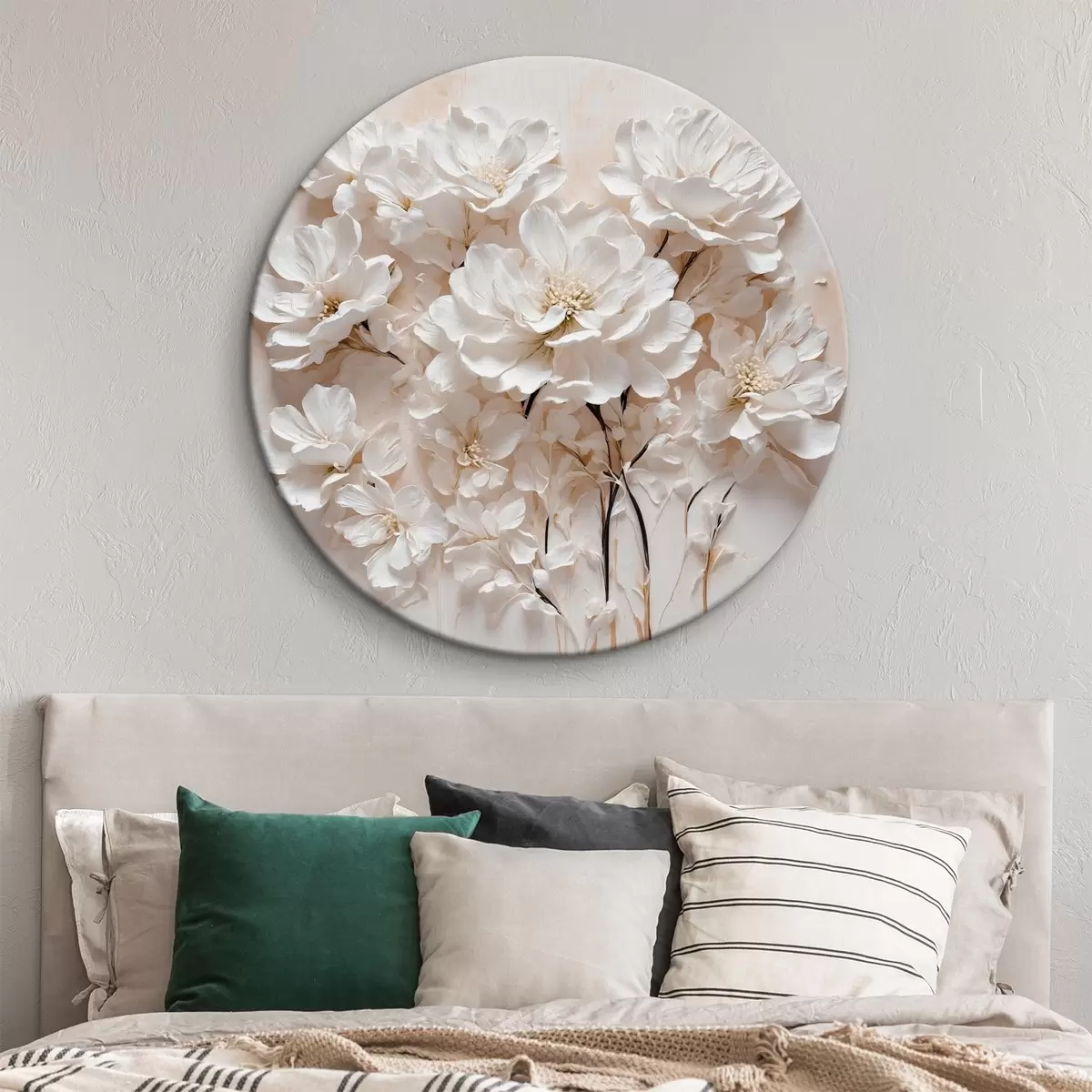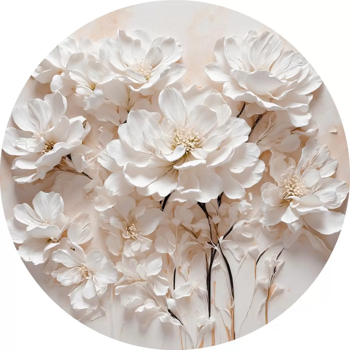 Tableaux ronds Fleurs blanches sur fond blanc et orange r41042