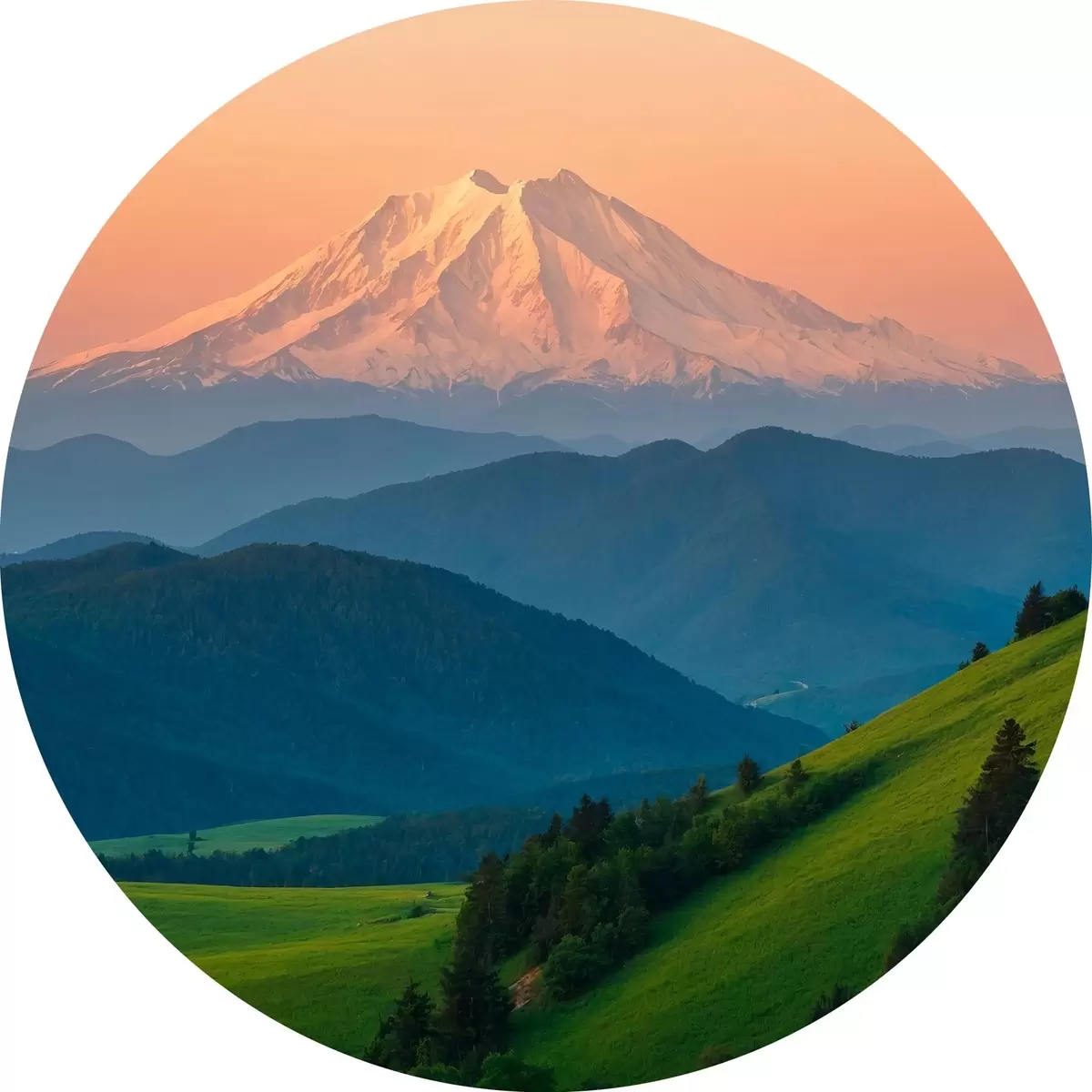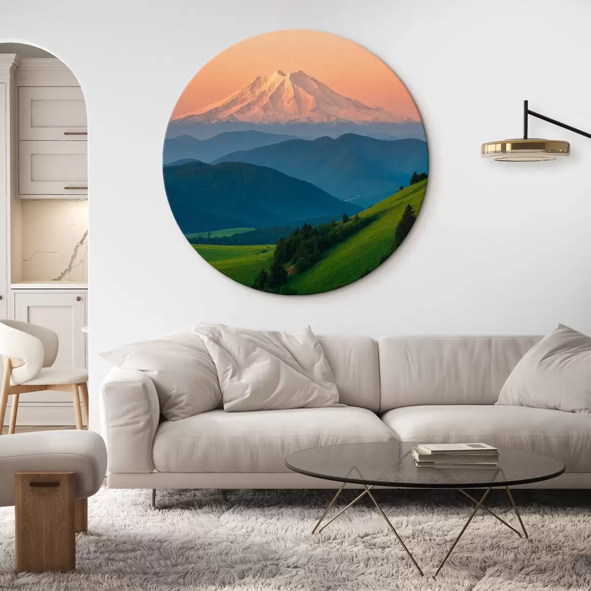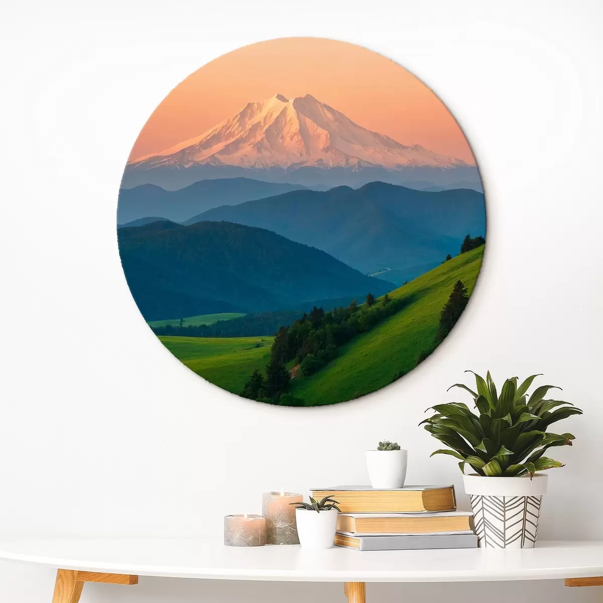 Tableaux ronds Vue d'un volcan calme et enneigé r41046