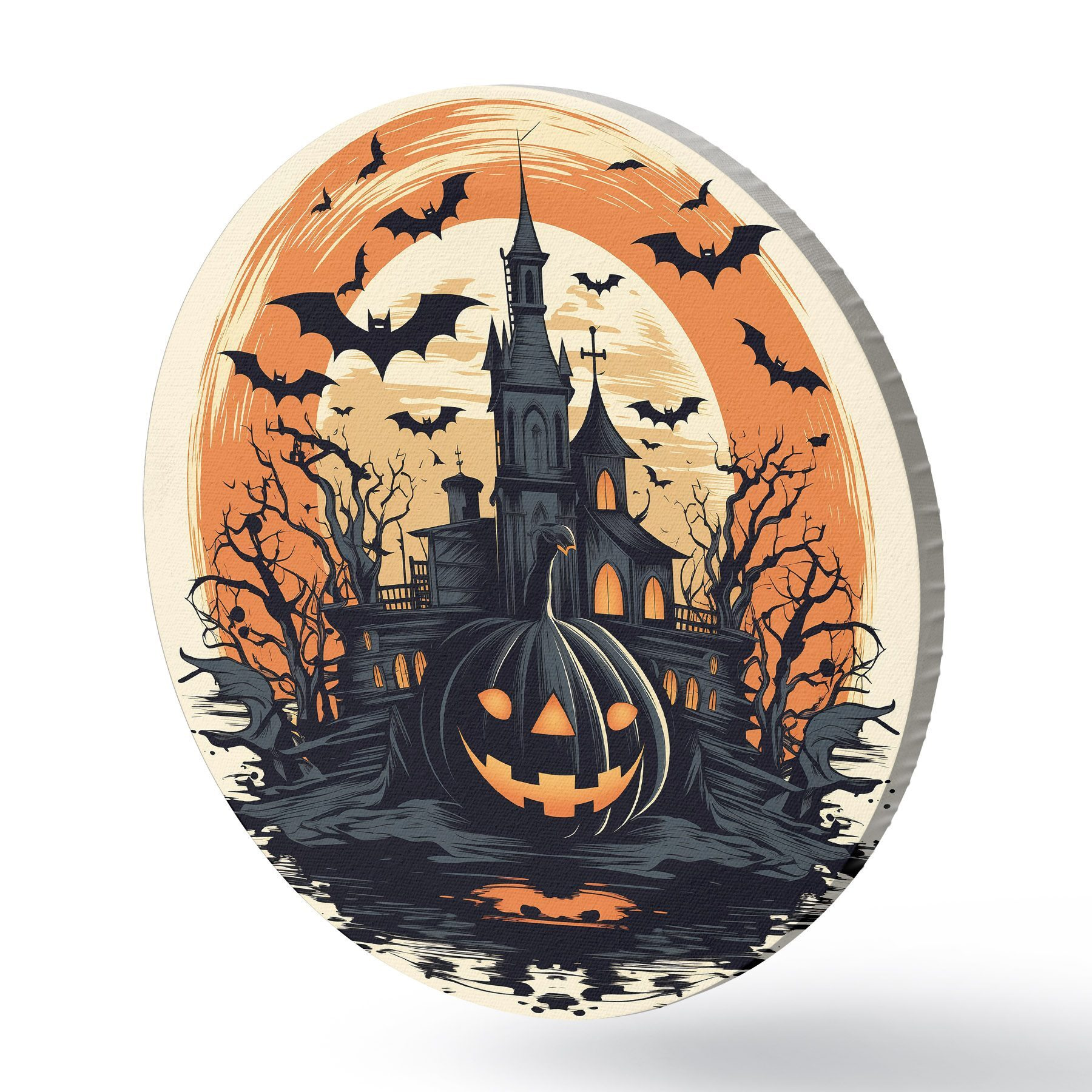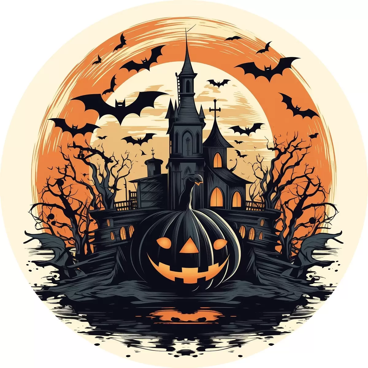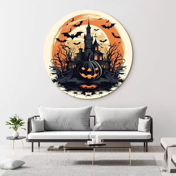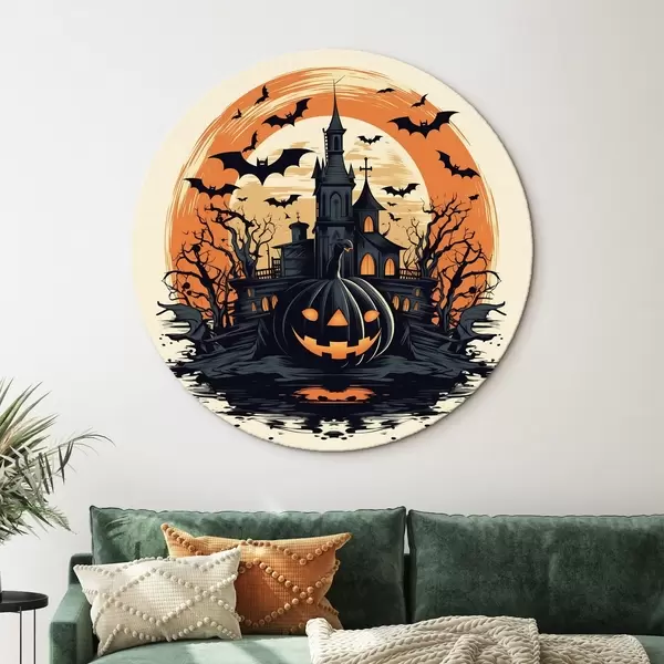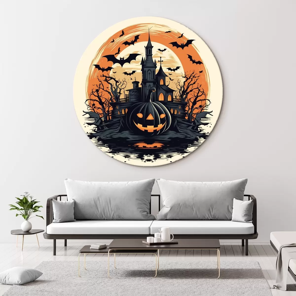 Tableaux ronds Château, chauves-souris et citrouilles r41137
