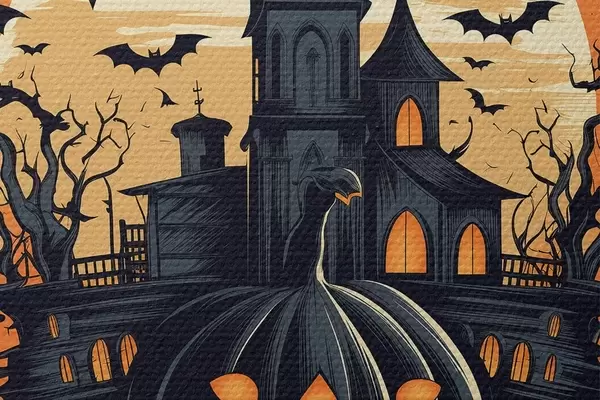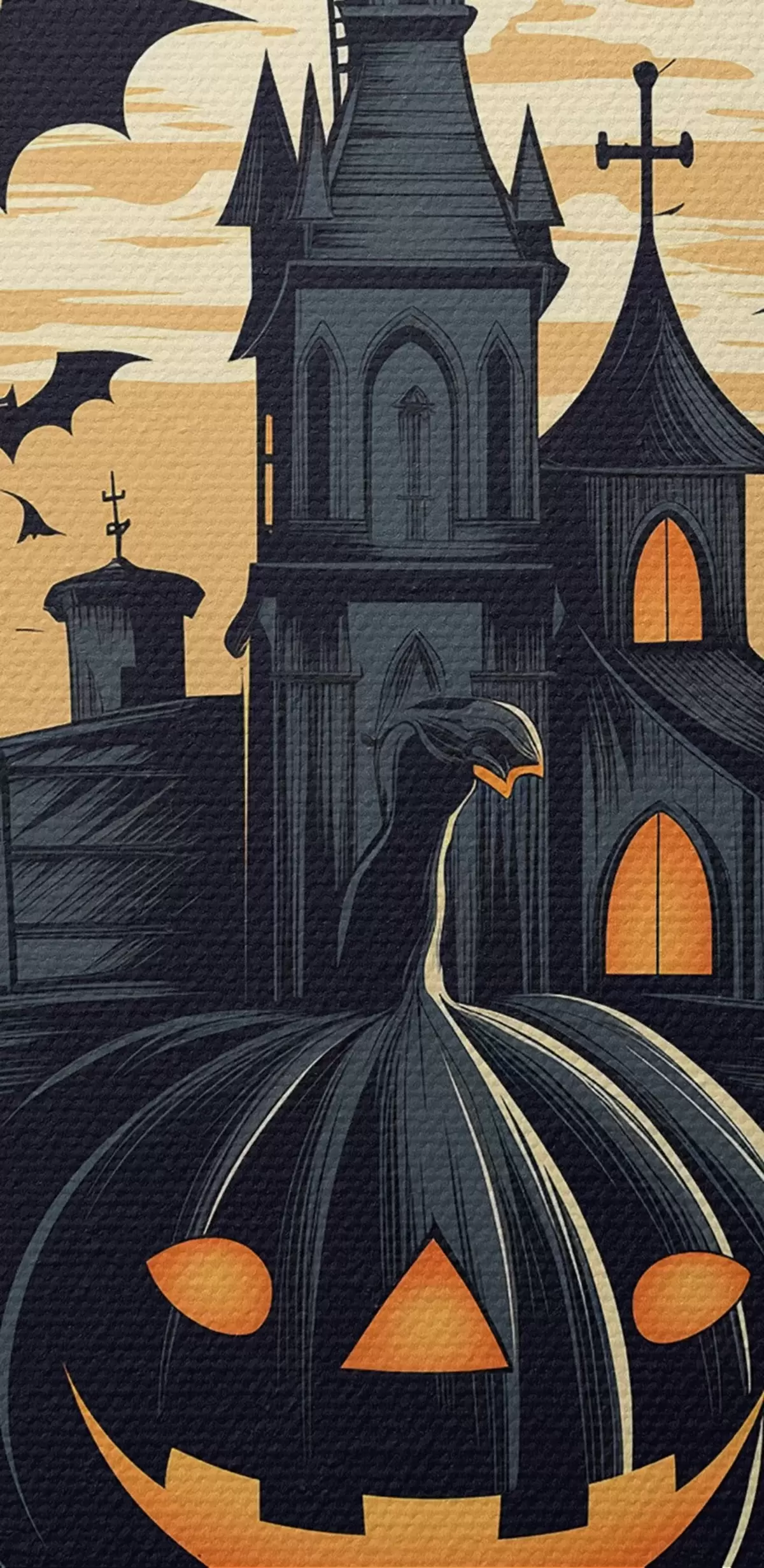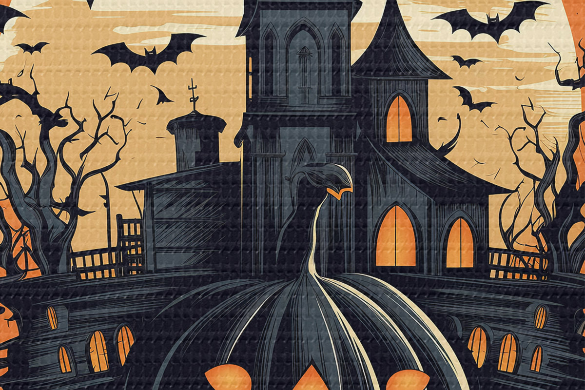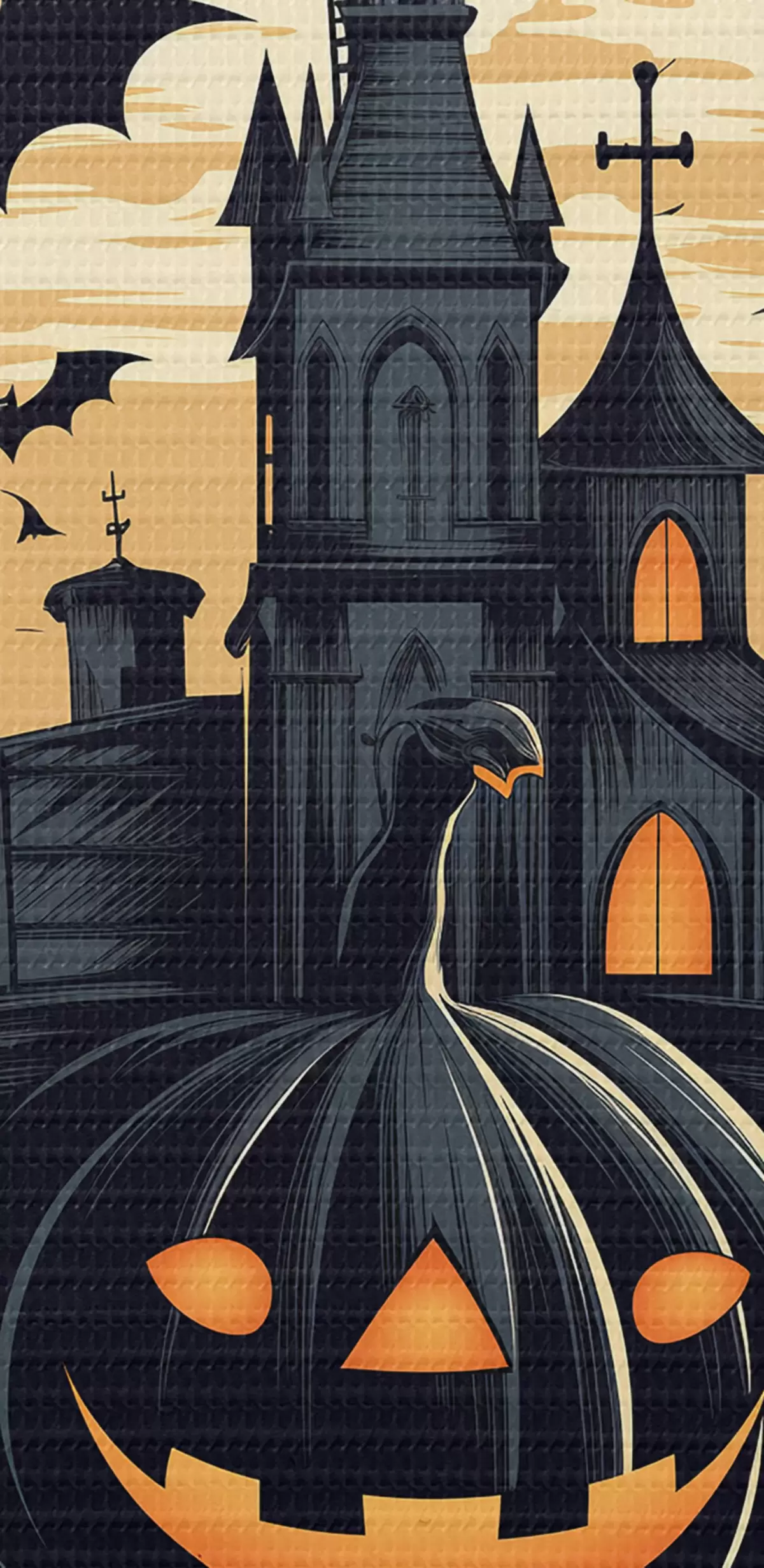 Tableaux ronds Château, chauves-souris et citrouilles r41137