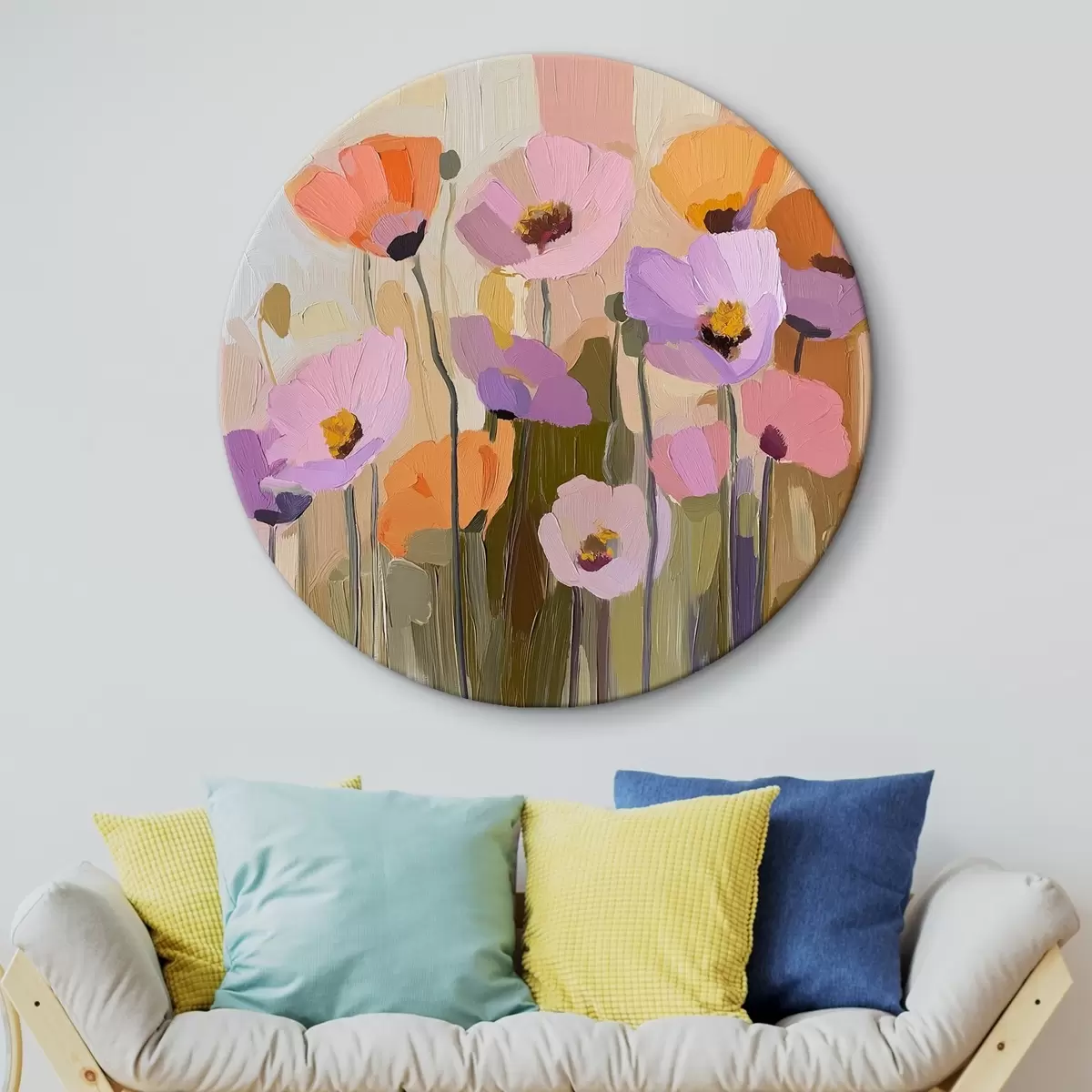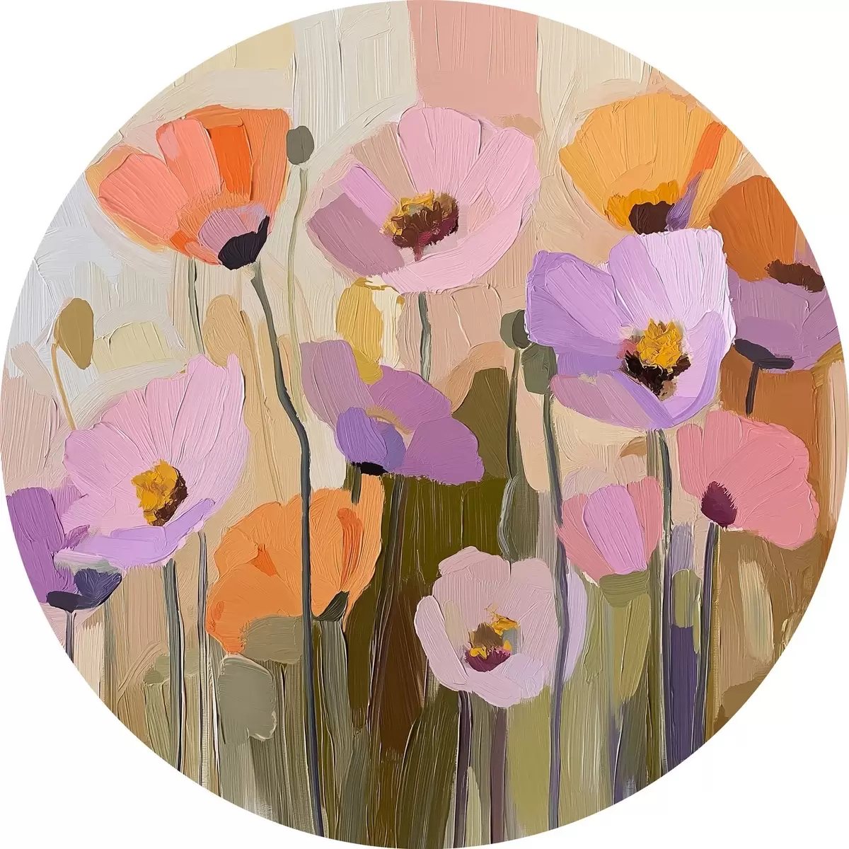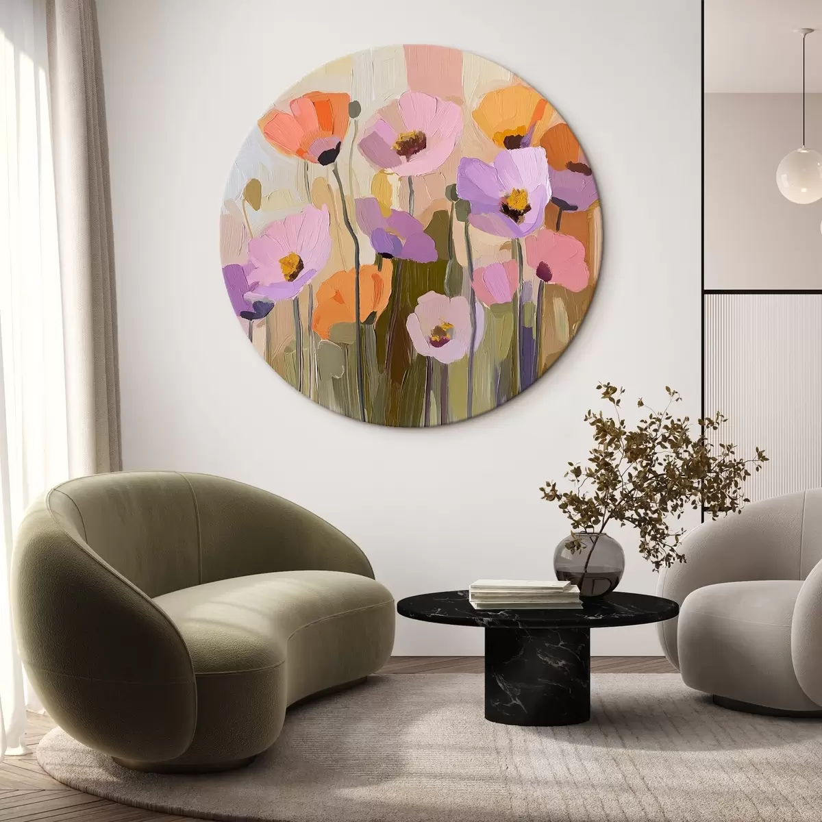 Tableaux ronds Peinture acrylique représentant des coquelicots d'automne r41158
